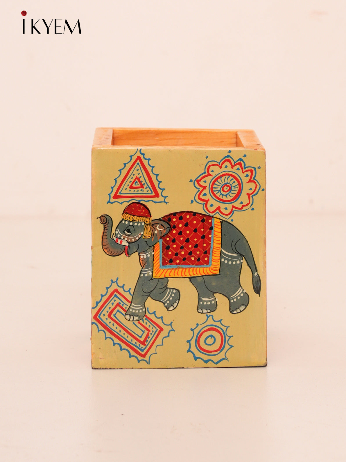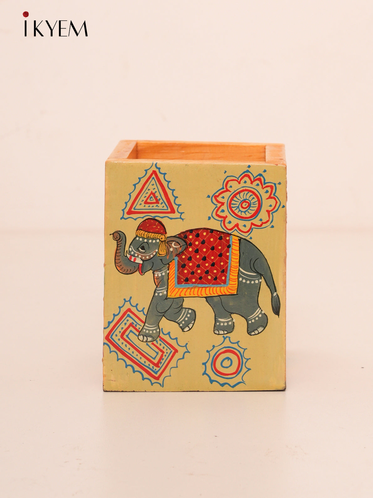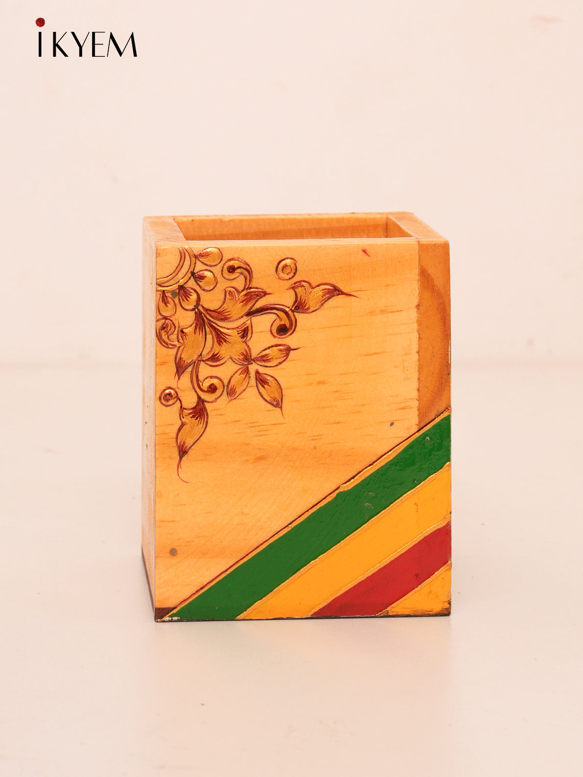 - This hand painted wooden pen stand, featuring a stylish design, is the perfect addition to your desk or office.