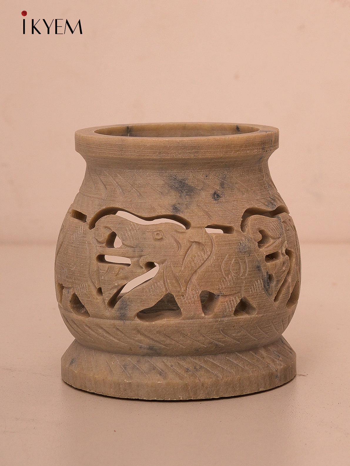 Enhance your space with our Hand Carved T-lite Holder, meticulously crafted from premium materials. Its intricate design casts enchanting shadows, creating a warm and inviting ambiance. Perfect for any décor, this piece adds a touch of elegance and charm to your home.