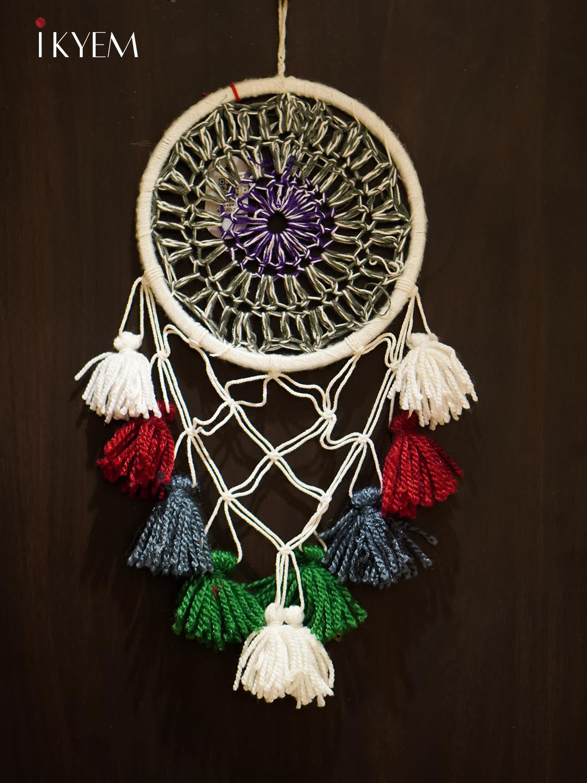 This handmade dreamcatcher wall hanging is crafted with intricate thread weaving, designed to catch dreams and add a bohemian touch to any space. Featuring delicate feathers and beads, it brings a calming, artistic vibe to your room. Perfect for bedrooms or as a unique gift!