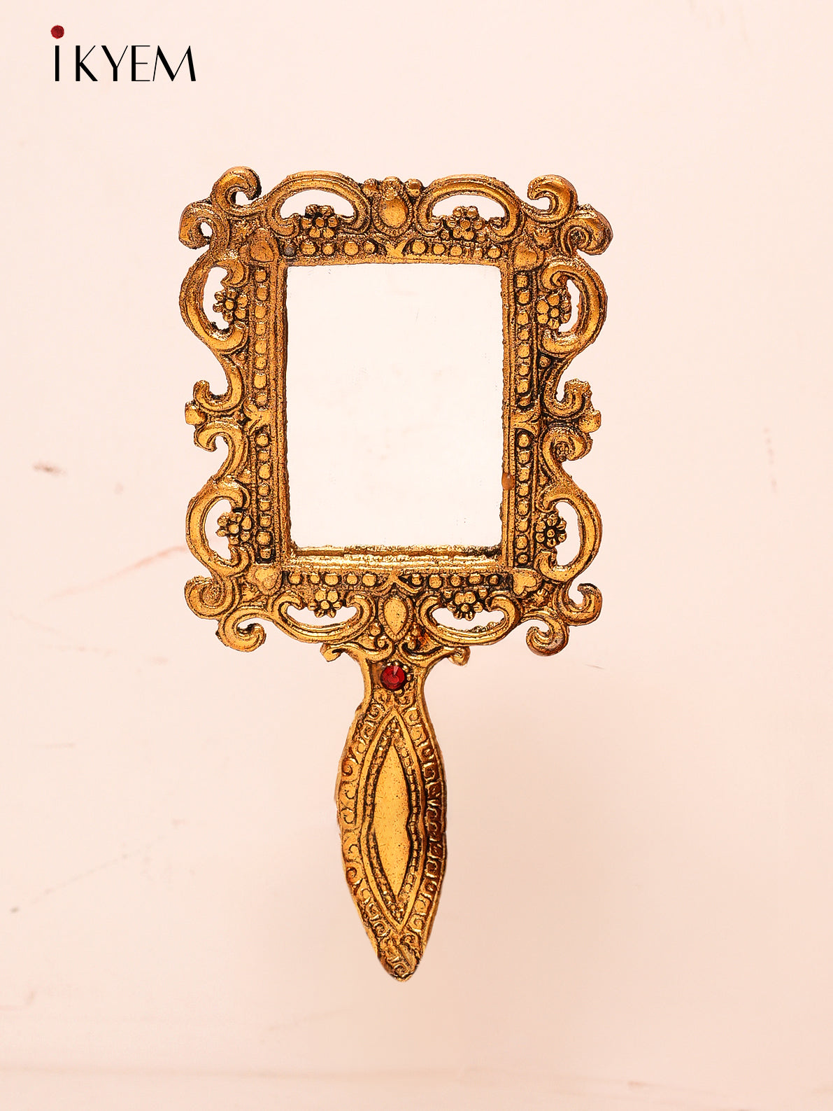 This exquisite antique finish hand mirror features intricate detailing and a classic design, adding a touch of elegance to any vanity. Crafted with care, it combines timeless charm with functional beauty. Perfect for those who appreciate vintage-inspired decor.