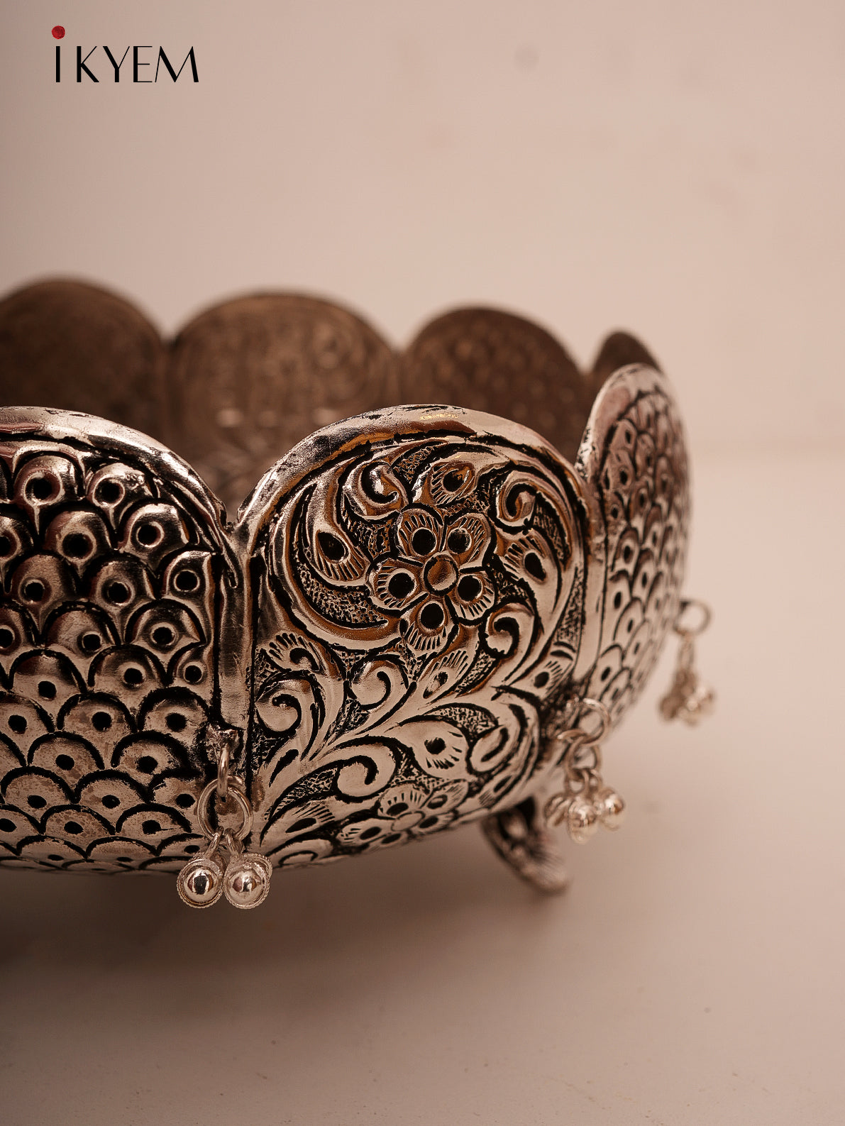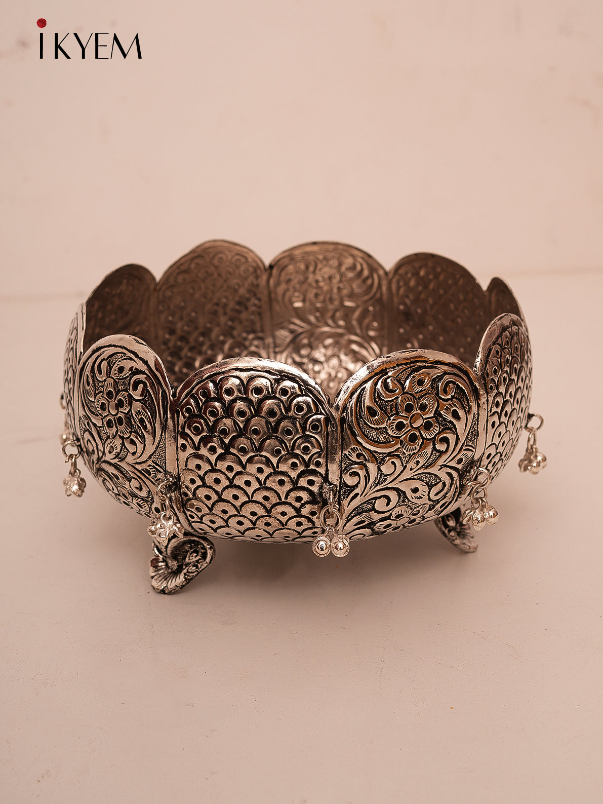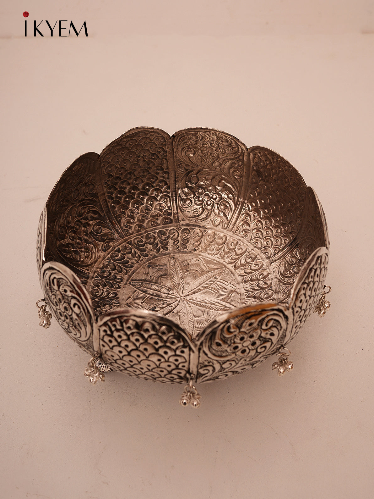 Exquisite German Silver Urli adds a touch of elegance to any home décor. Handcrafted with intricate designs, it is perfect for both traditional and contemporary settings. Ideal for decorative arrangements or as a centerpiece, it combines beauty and functionality seamlessly