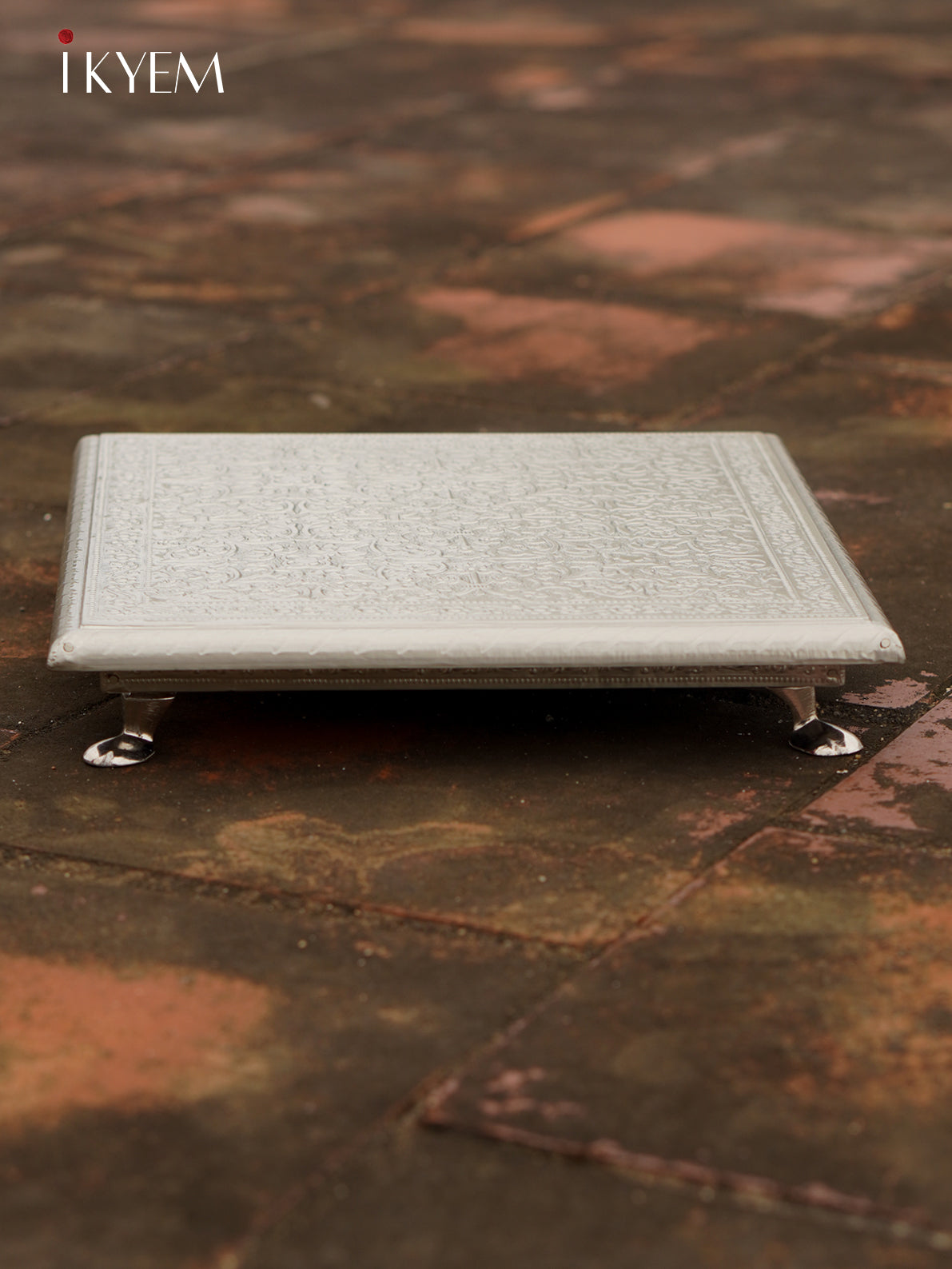 Discover elegance with our White Metal Chowki, meticulously crafted to elevate any space. Featuring intricate designs and a lustrous finish, it serves as both a decorative accent and a functional pedestal. Perfect for religious ceremonies or as a luxurious decor piece in your home.