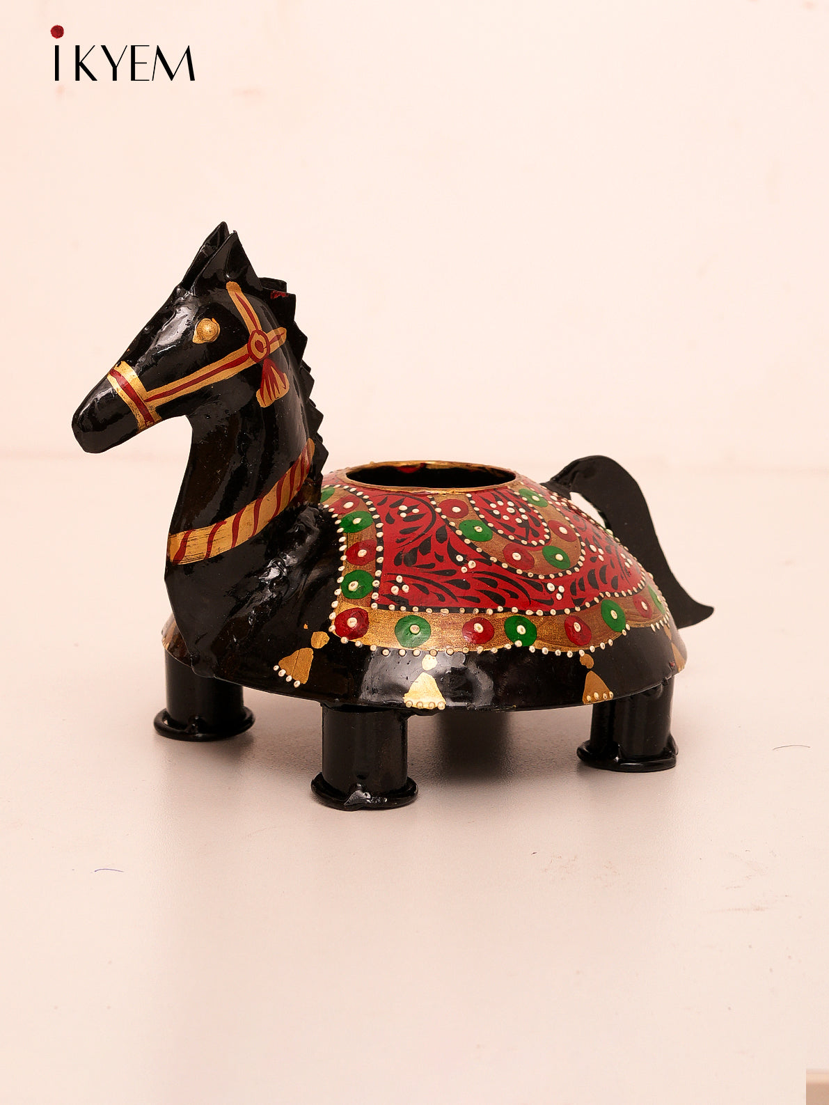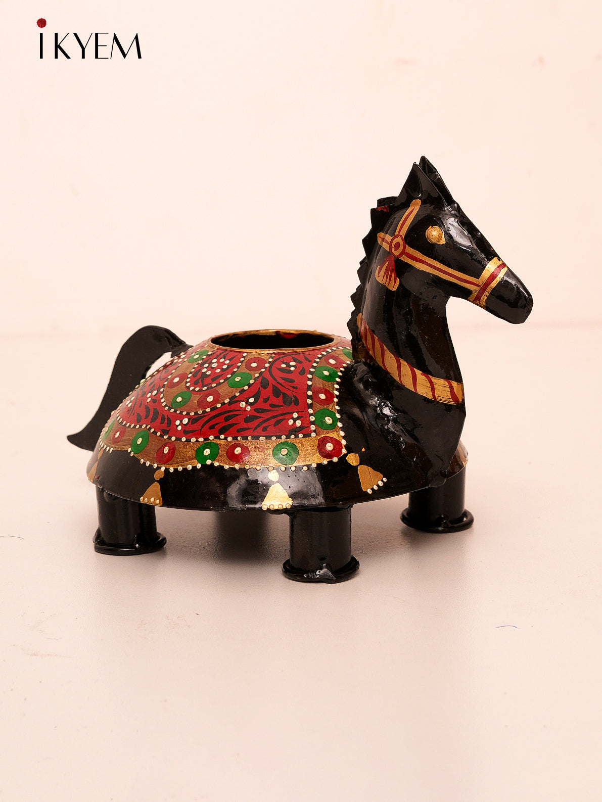 Elegant hand-painted wooden horse features intricate, detailed artwork that captures its majestic beauty. Each piece is crafted with care, showcasing vibrant colors and a unique design. Perfect as a charming decor item or a thoughtful gift for equine enthusiasts.