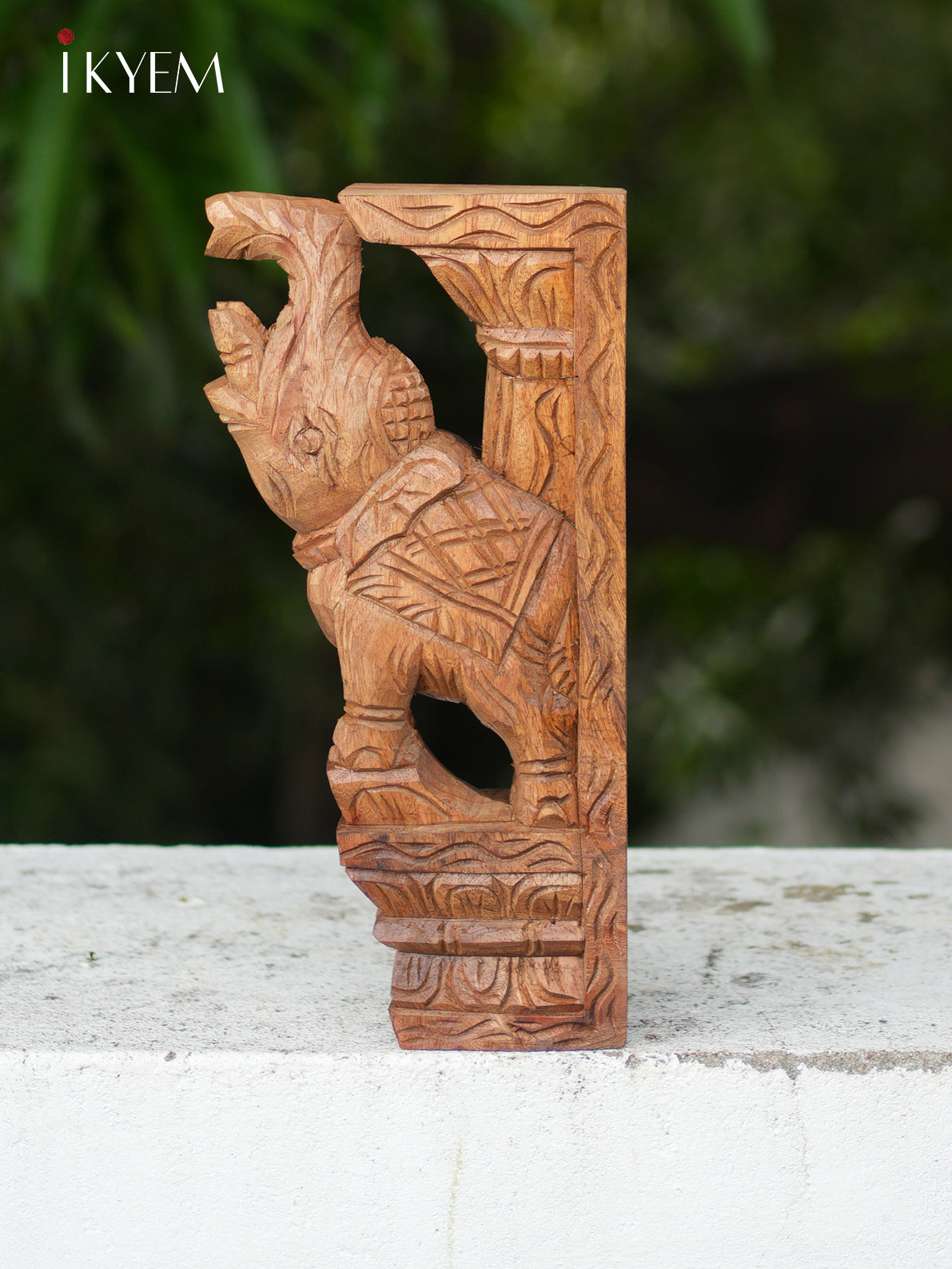 This exquisite hand-carved wooden elephant bracket features intricate detailing, showcasing the artisan's skill and dedication. Crafted from high-quality wood, it serves as a stunning decorative piece for any space. Its elegant design adds a touch of sophistication and cultural charm to your home decor.