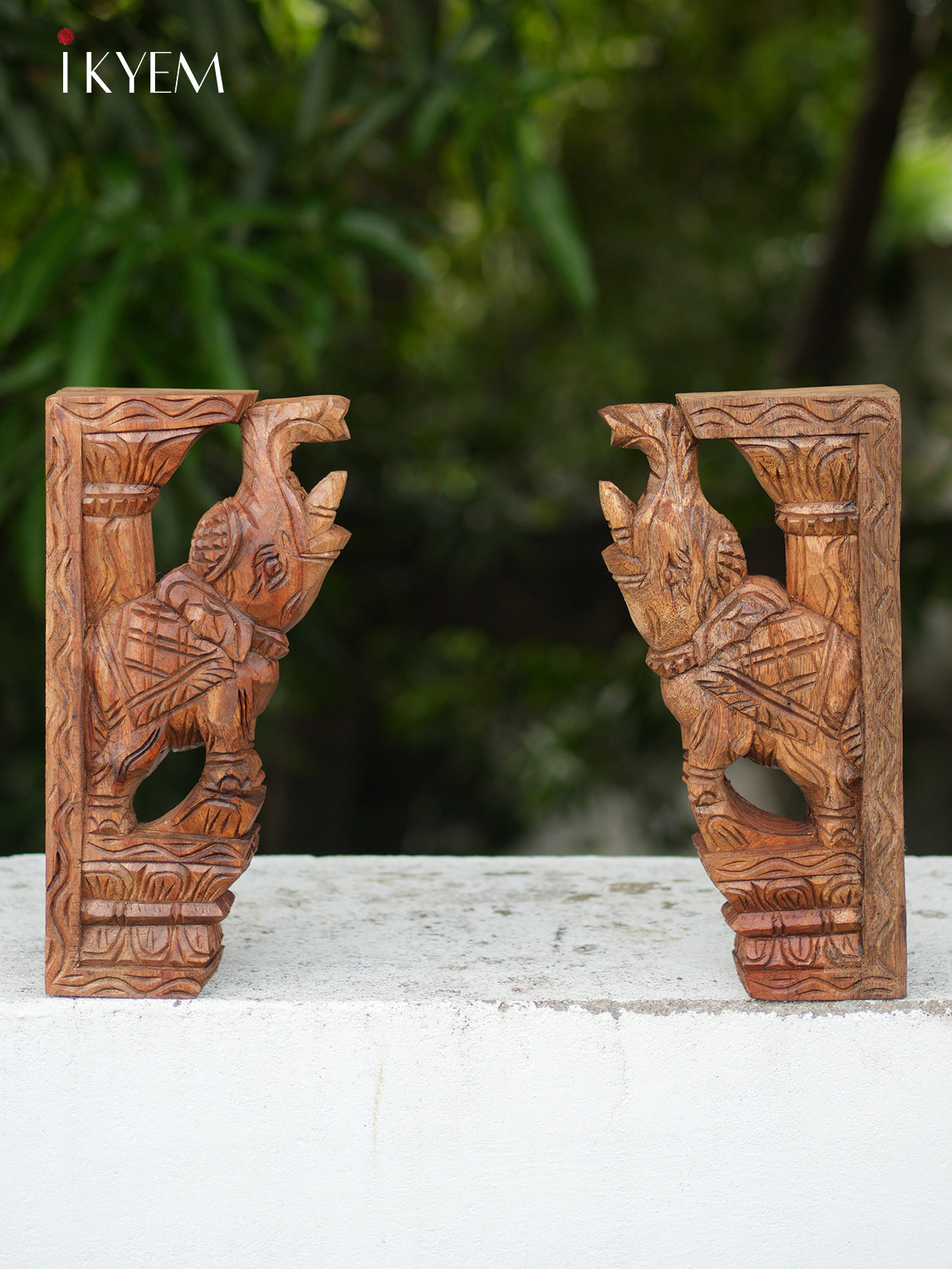 Hand Carved Wooden Elephant Bracket (pair)