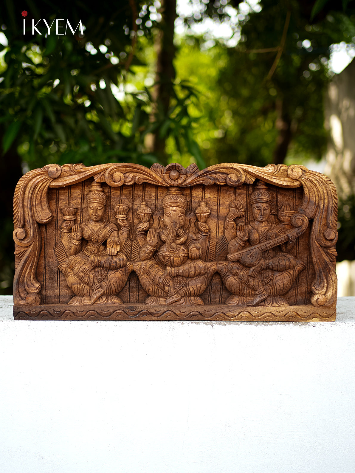 Hand Carved Wooden Ganesha , Lakshmi , Saraswathy