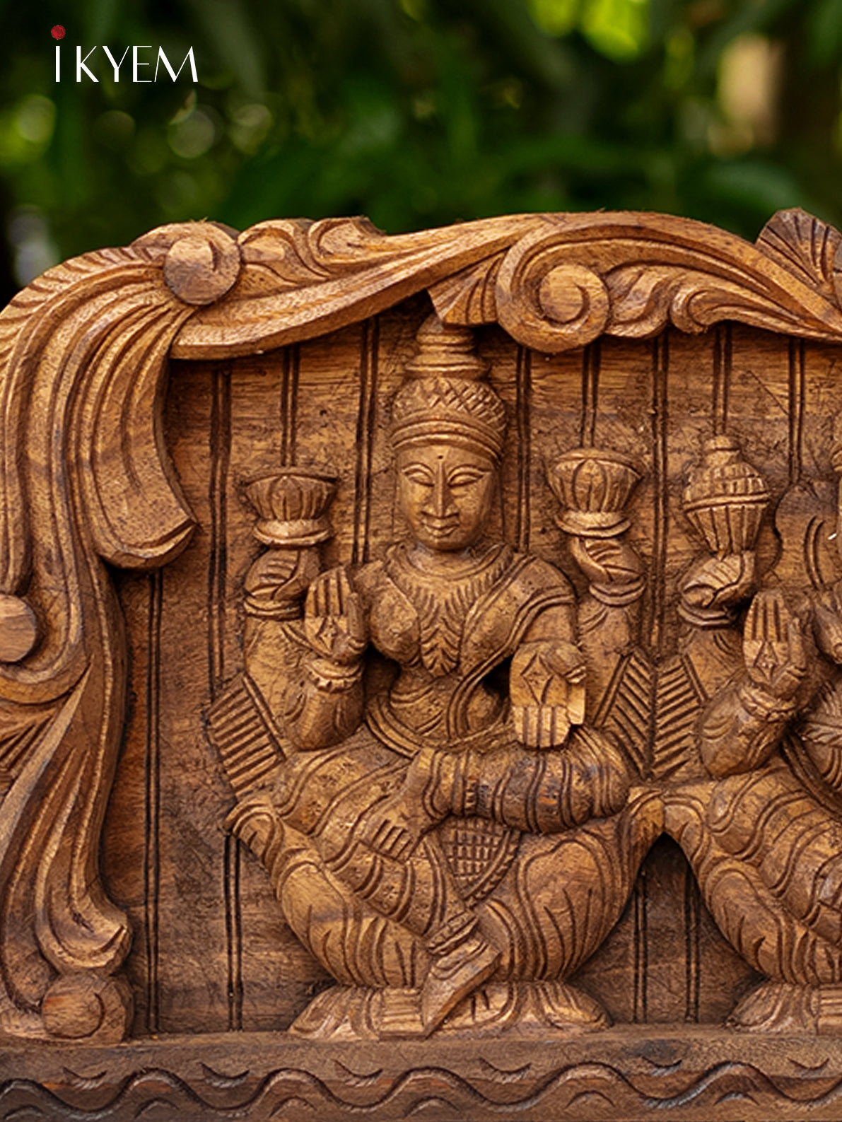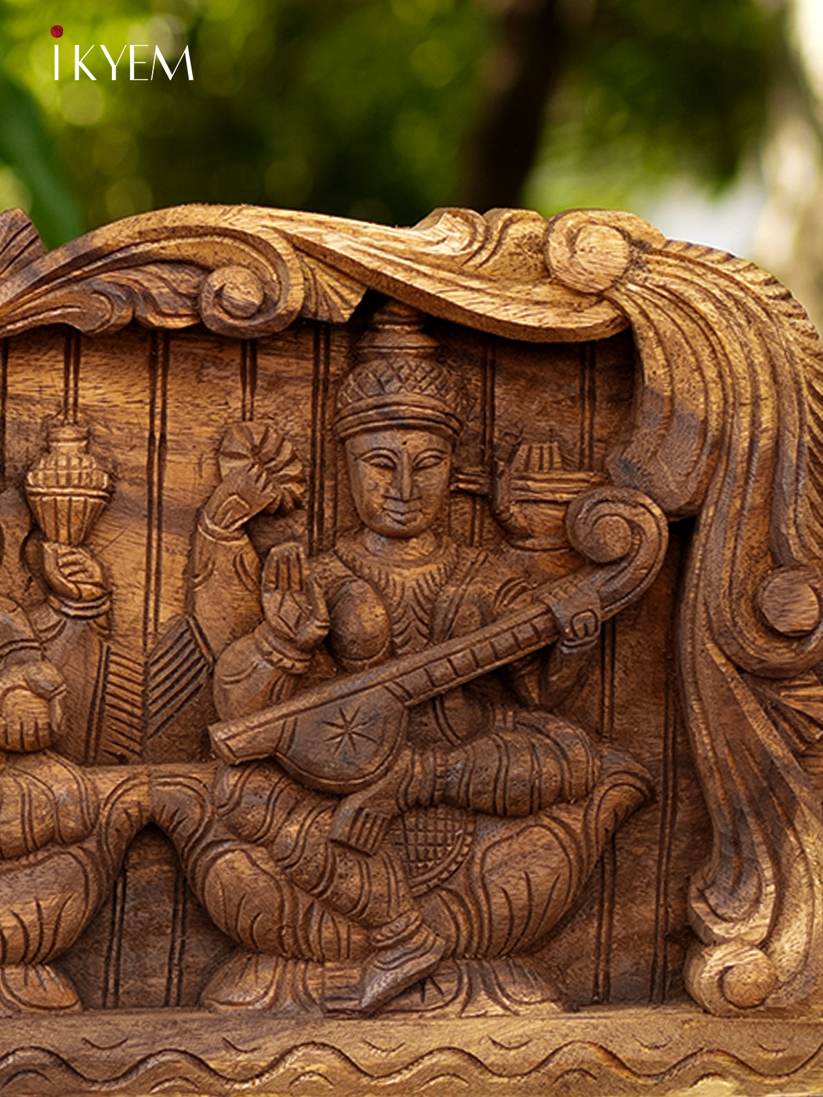 Hand-carved wooden sculptures of Ganesha, Lakshmi, and Saraswathy beautifully embody traditional craftsmanship. Each piece is intricately detailed, reflecting the divine grace and cultural heritage of these revered deities. Perfect for adding a touch of spiritual elegance to any space.
