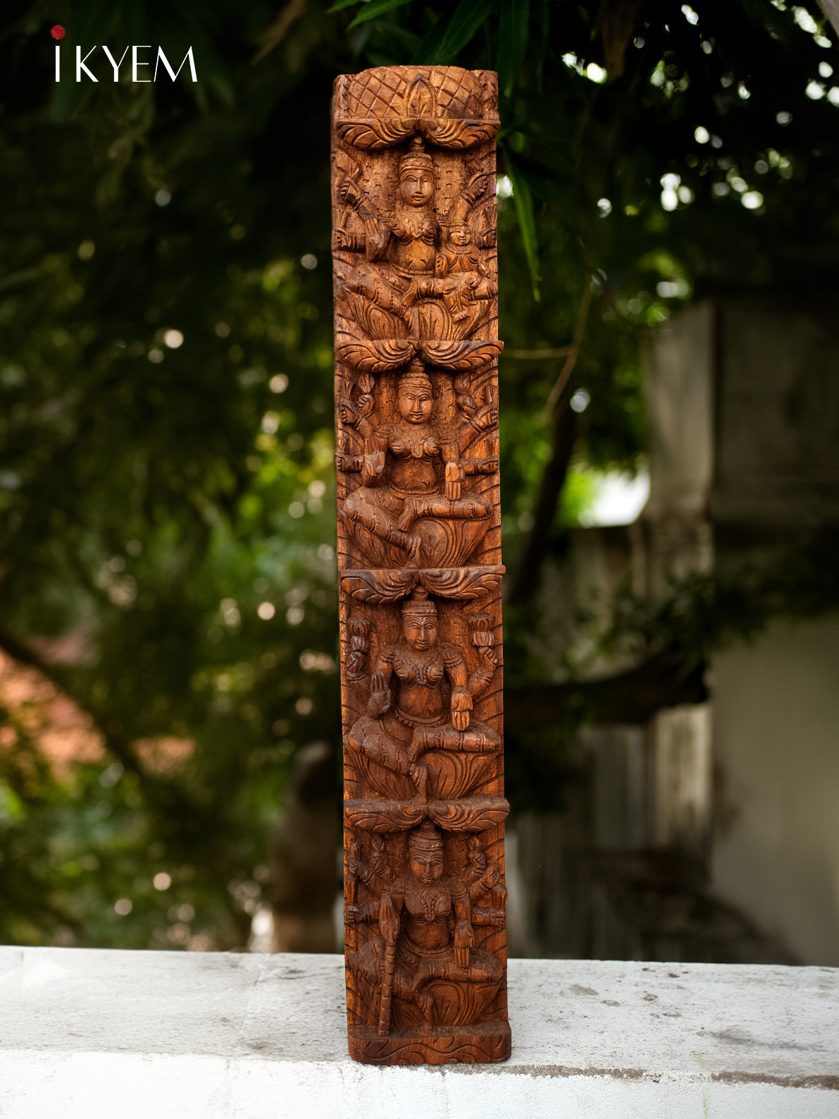 This exquisite Hand Carved Asta Lakshmi Panel showcases the eight forms of the Hindu Goddess Lakshmi, symbolizing wealth, prosperity, and fortune. Expertly crafted from high-quality wood, each intricate detail reflects the artisan's dedication and skill. Perfect for enhancing the spiritual ambiance of any space, this panel is a timeless piece of art.