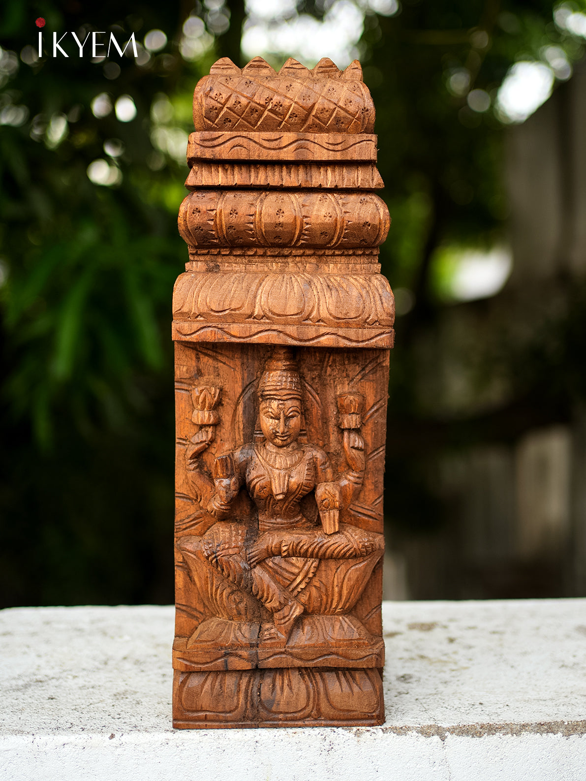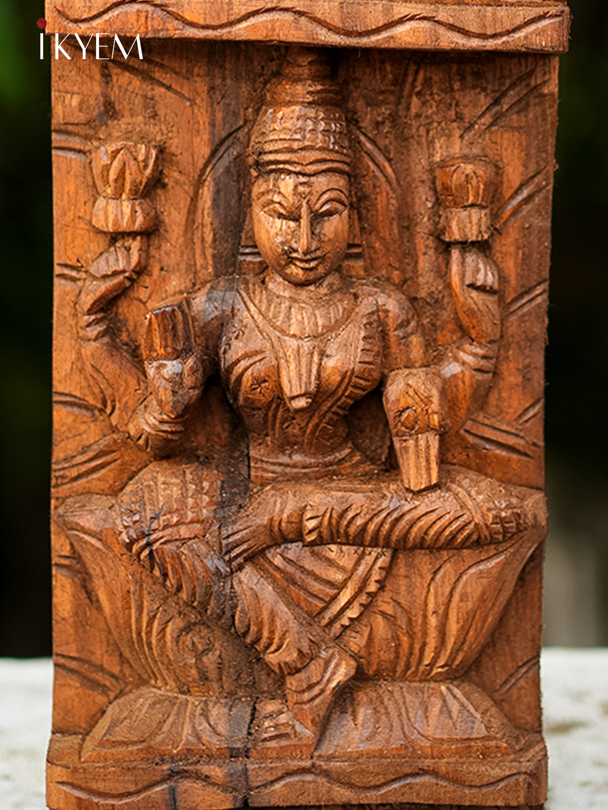 This exquisite hand-carved Lakshmi sculpture is framed within an ornate temple-style frame, embodying traditional craftsmanship and spiritual elegance. Each detail is meticulously carved, capturing the grace and abundance associated with the goddess. Ideal for enhancing any sacred space or home decor.