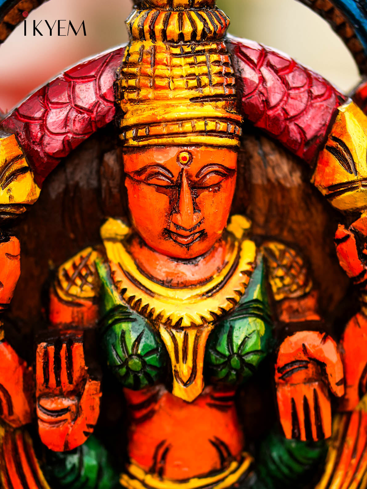 Bring divine grace to your space with this hand-painted wooden idol of Lord Lakshmi. Each intricate design captures the goddess's beauty and blessings. Perfect for adding a touch of spirituality and elegance to any room.