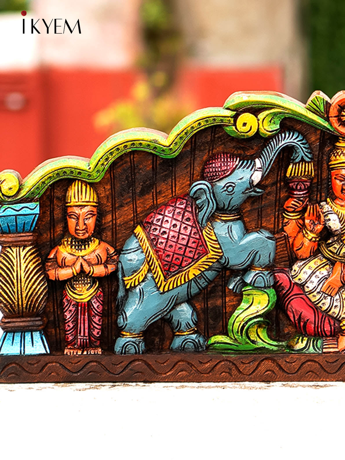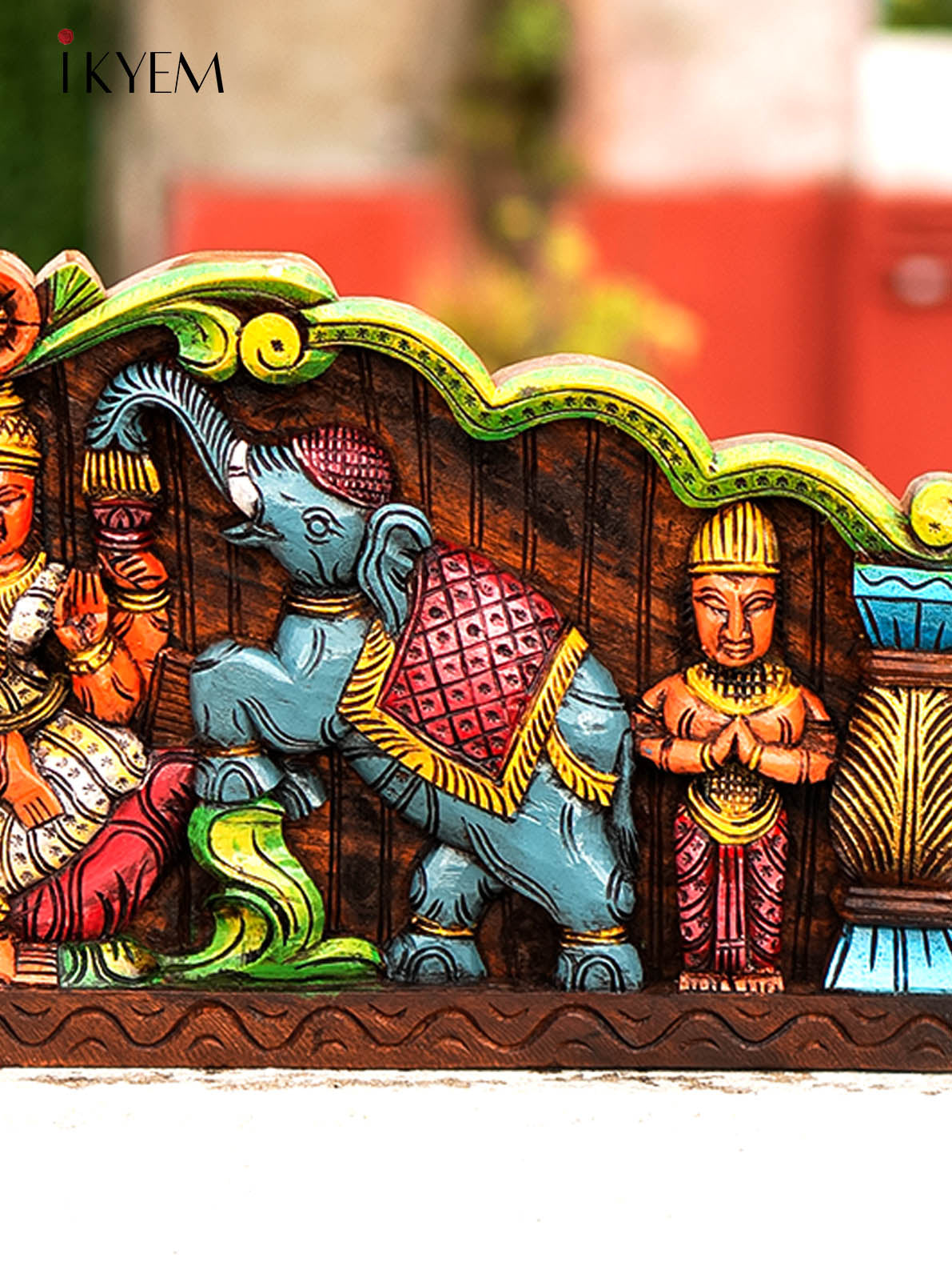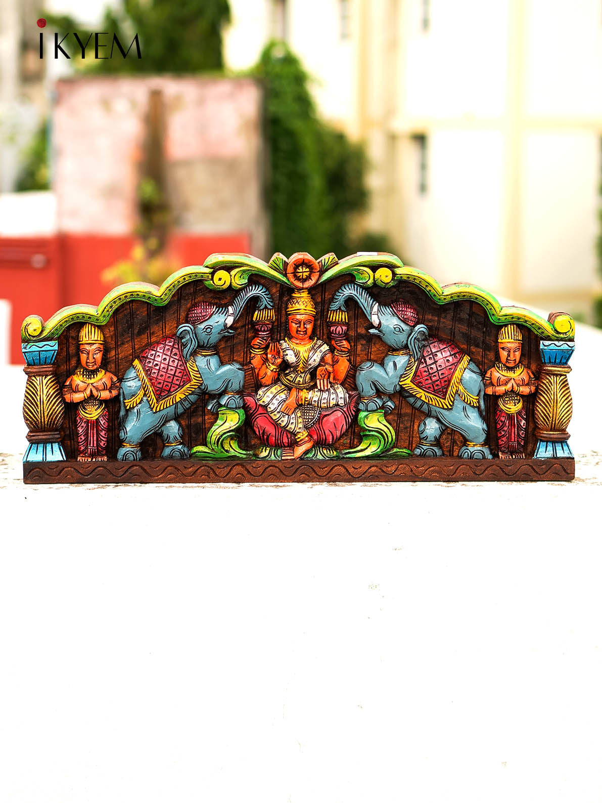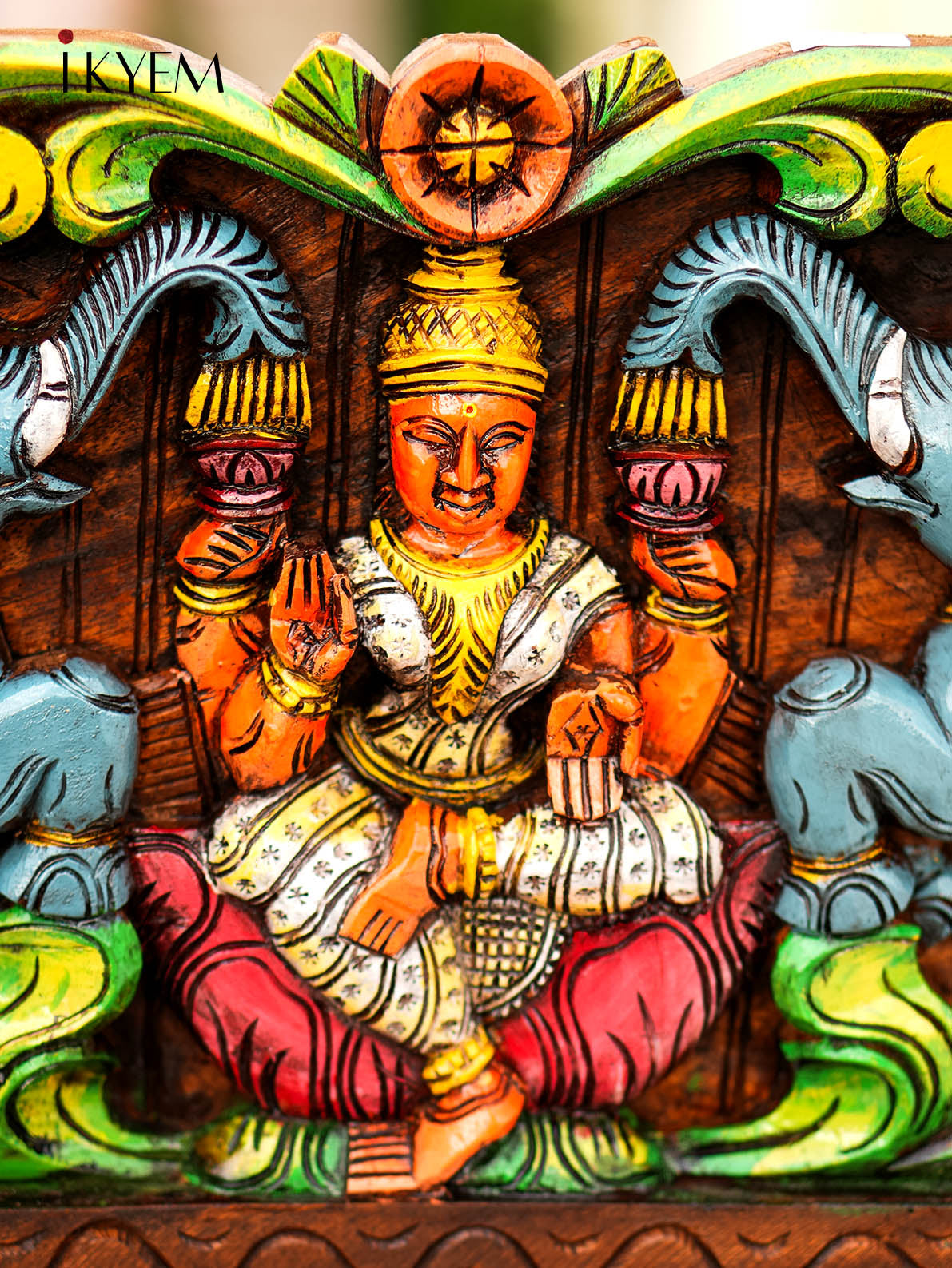 Wooden Hand Painted Carved Lakshmi with Elephant Panel - 4GJ24012