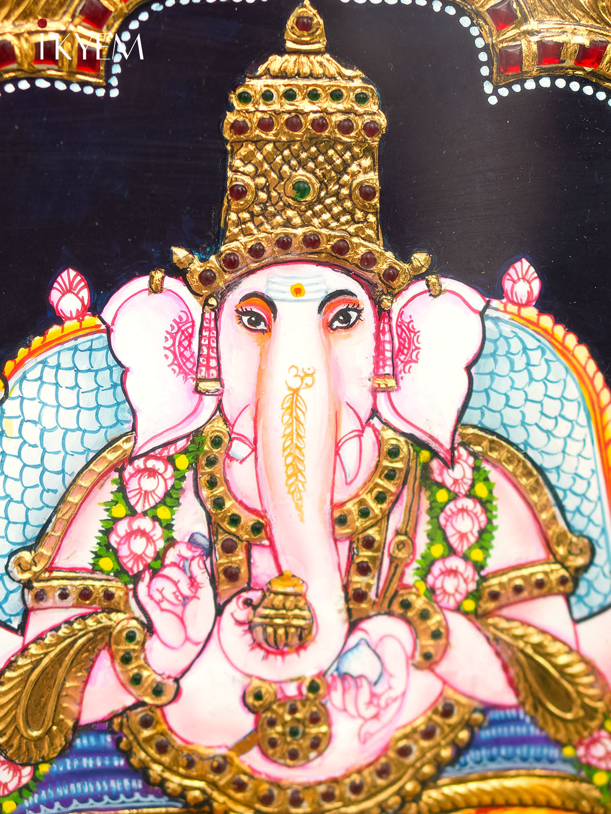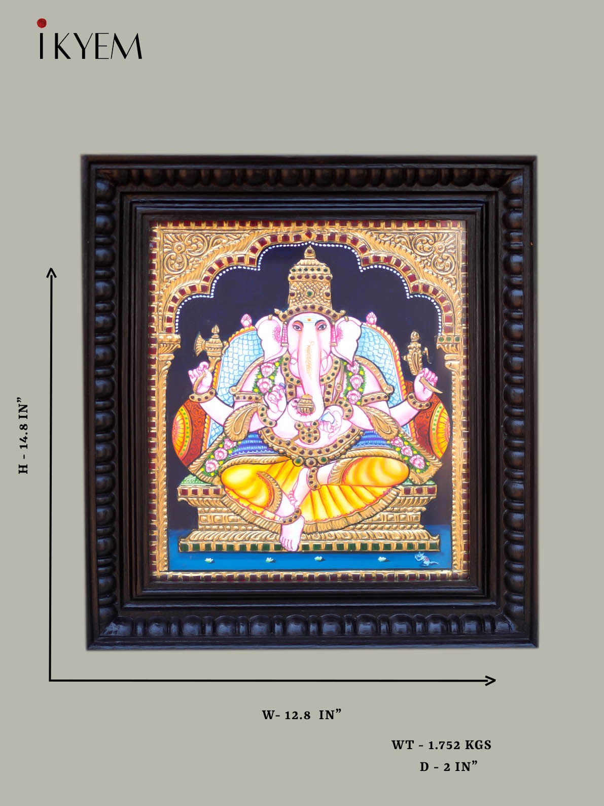 This exquisite Tanjore painting of Lord Ganesha showcases the deity in vibrant colors and intricate gold foil work, symbolizing wisdom and prosperity. Handcrafted by skilled artisans, the painting captures the divine grace and opulence characteristic of traditional Tanjore art. Ideal for adorning your home or as a thoughtful gift, it brings an aura of auspiciousness and serenity to any space.