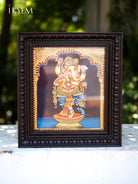 This exquisite Tanjore painting features Lord Ganesha playing a flute, crafted with intricate details and adorned with rich, vibrant colors. The use of gold foil highlights adds a touch of elegance, making it a perfect blend of tradition and artistry. Ideal for home décor, this piece embodies divine grace and cultural heritage.
