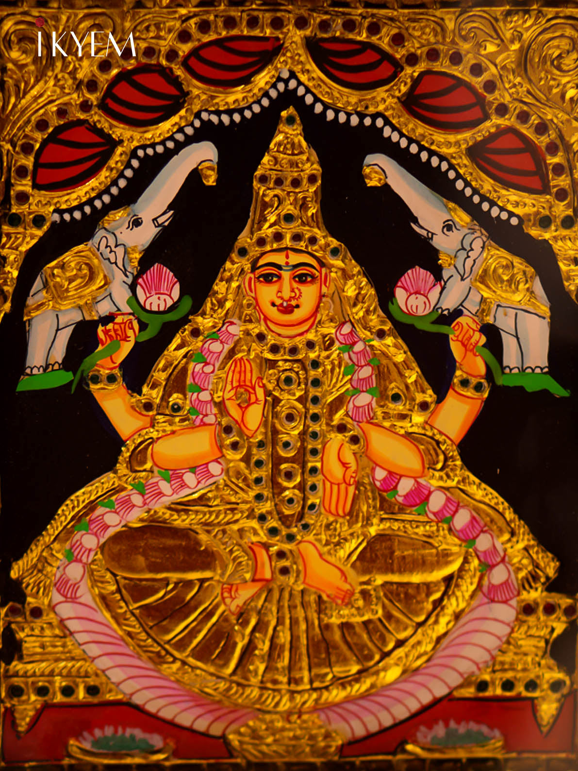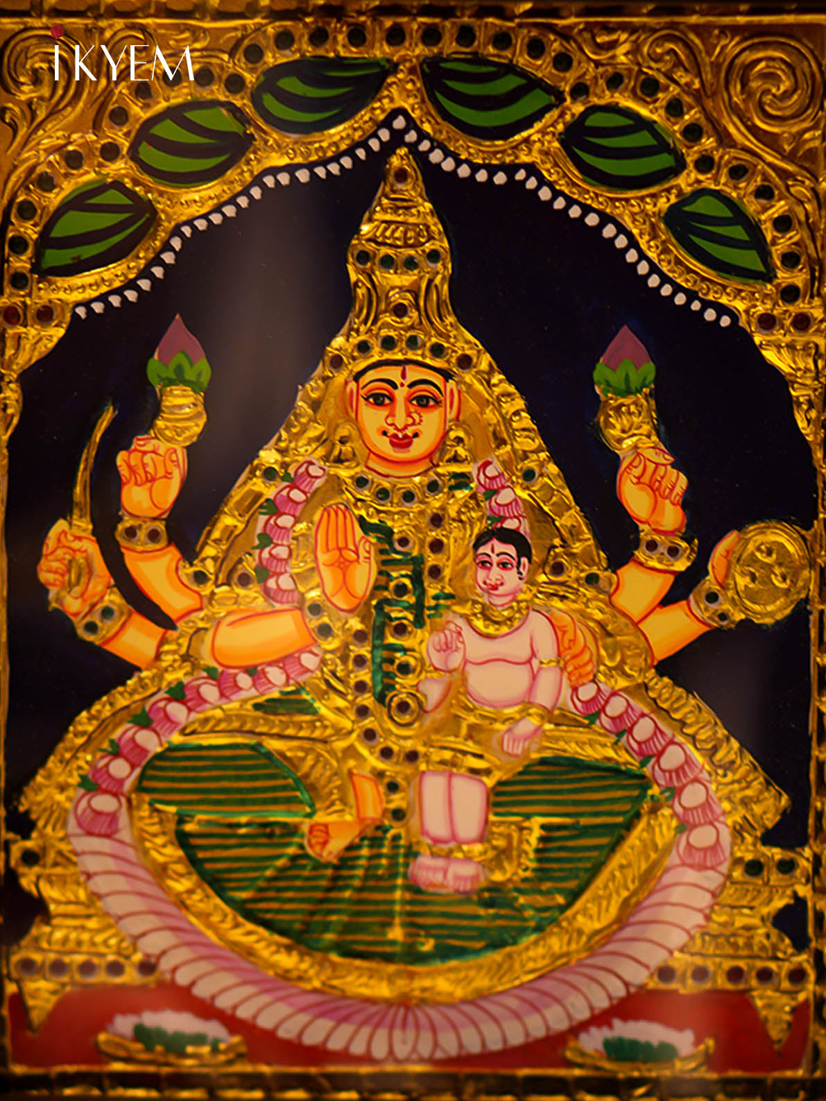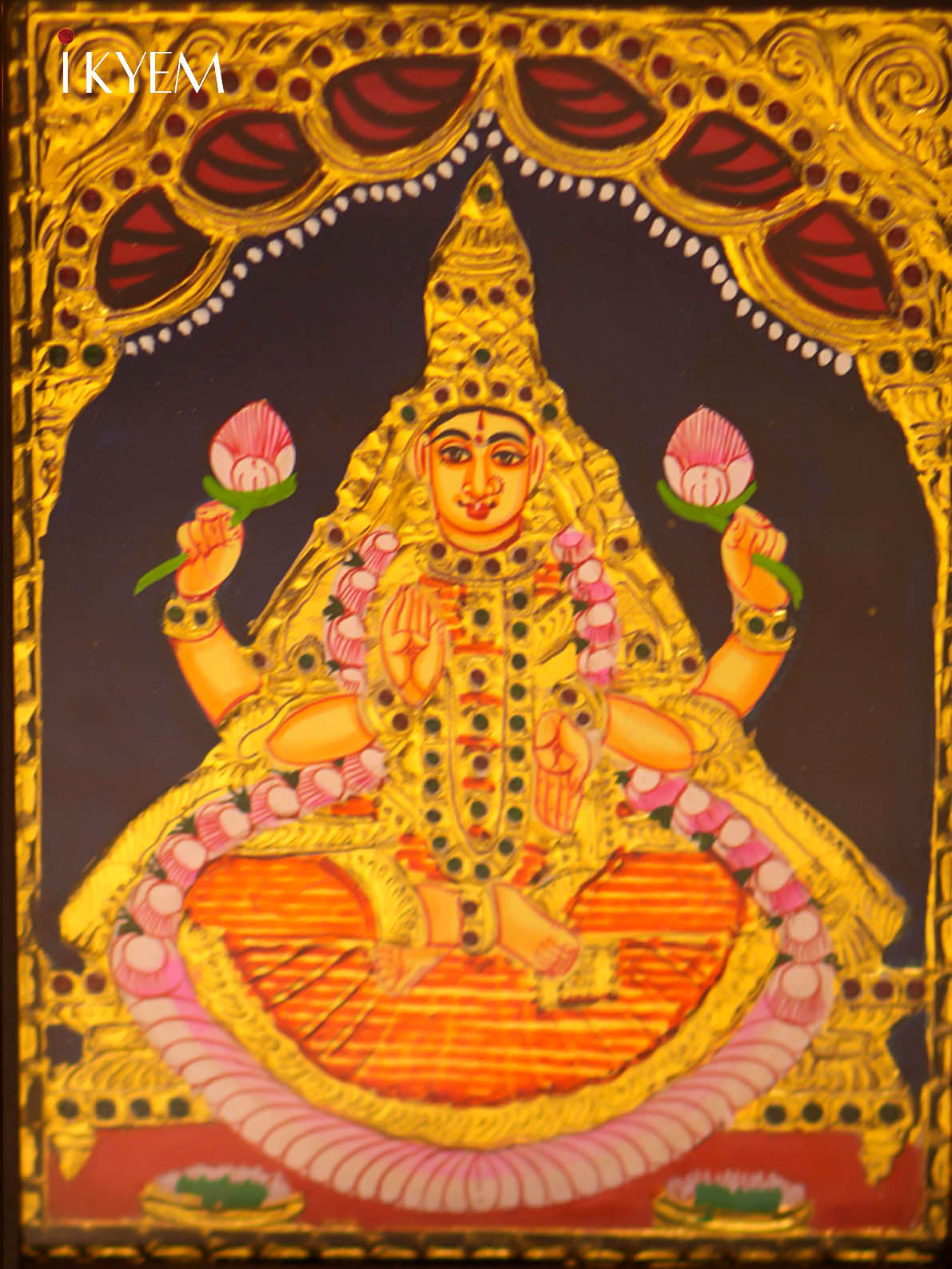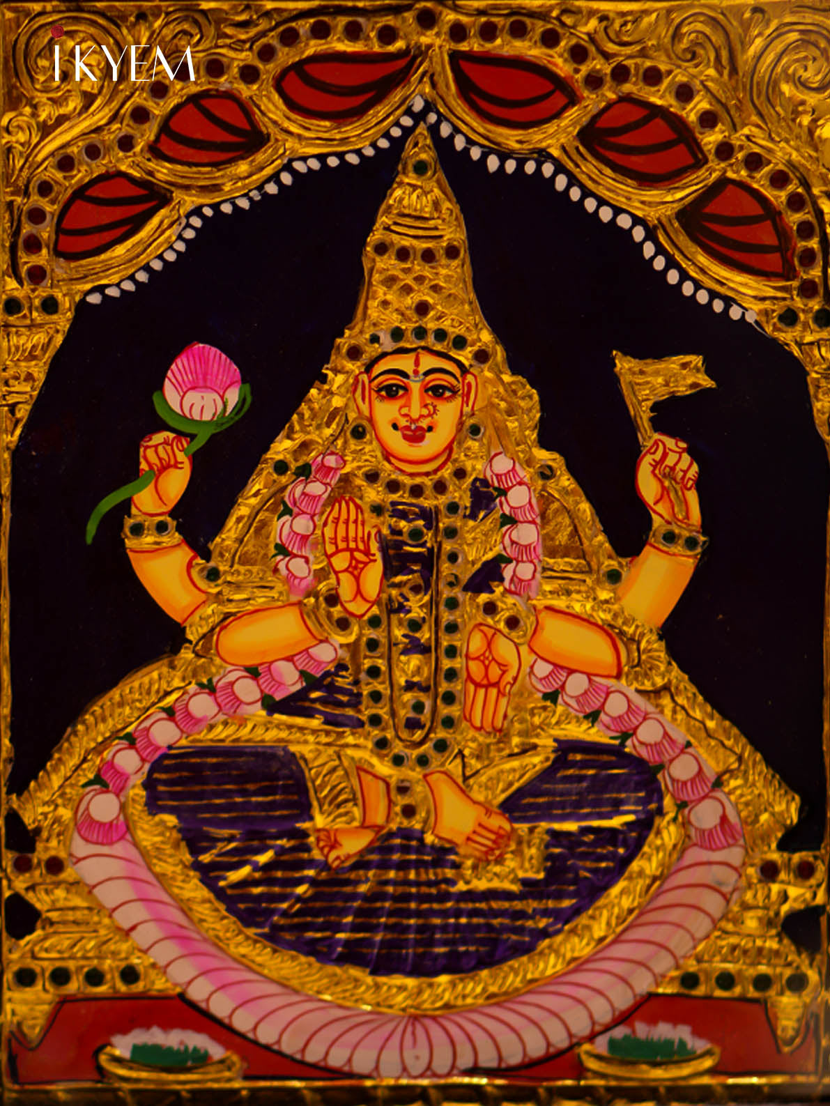 This exquisite Tanjore painting of Astalakshmi, showcases intricate craftsmanship and vibrant colors. The artwork depicts the goddess Astalakshmi with traditional embellishments, adding a touch of divine elegance to any space. Perfect for enhancing the spiritual ambiance of your home.