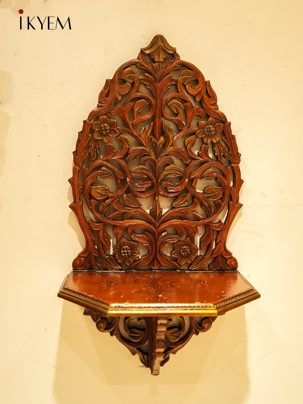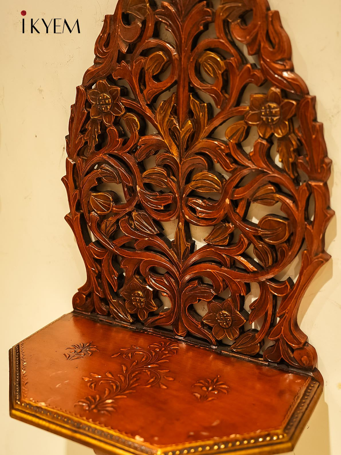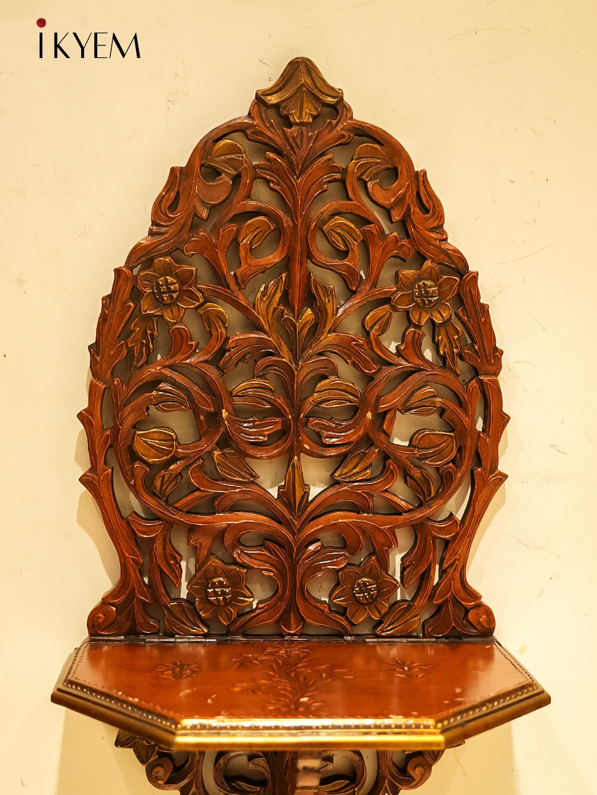 This hand-carved wooden Jharokha features intricate traditional craftsmanship, showcasing ornate designs inspired by Indian architecture. Made from premium quality wood, it includes a sturdy bottom base for added stability. Perfect as a decorative accent, it brings timeless elegance to any interior space.