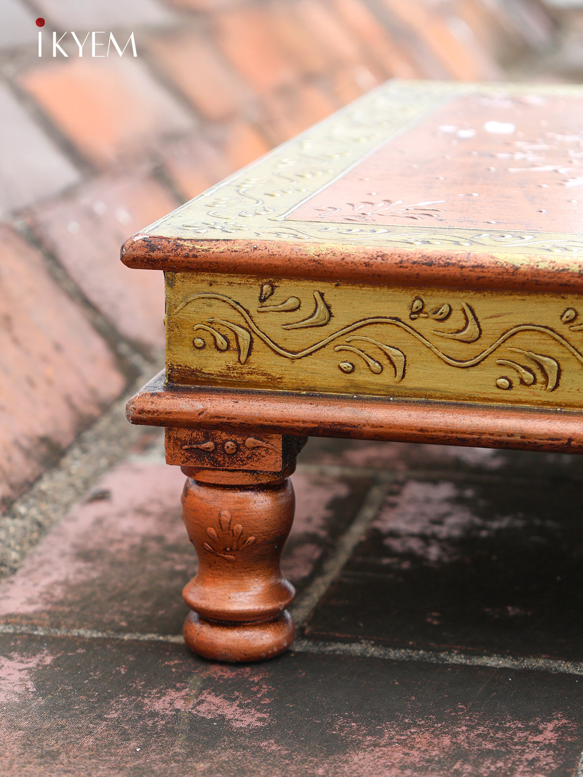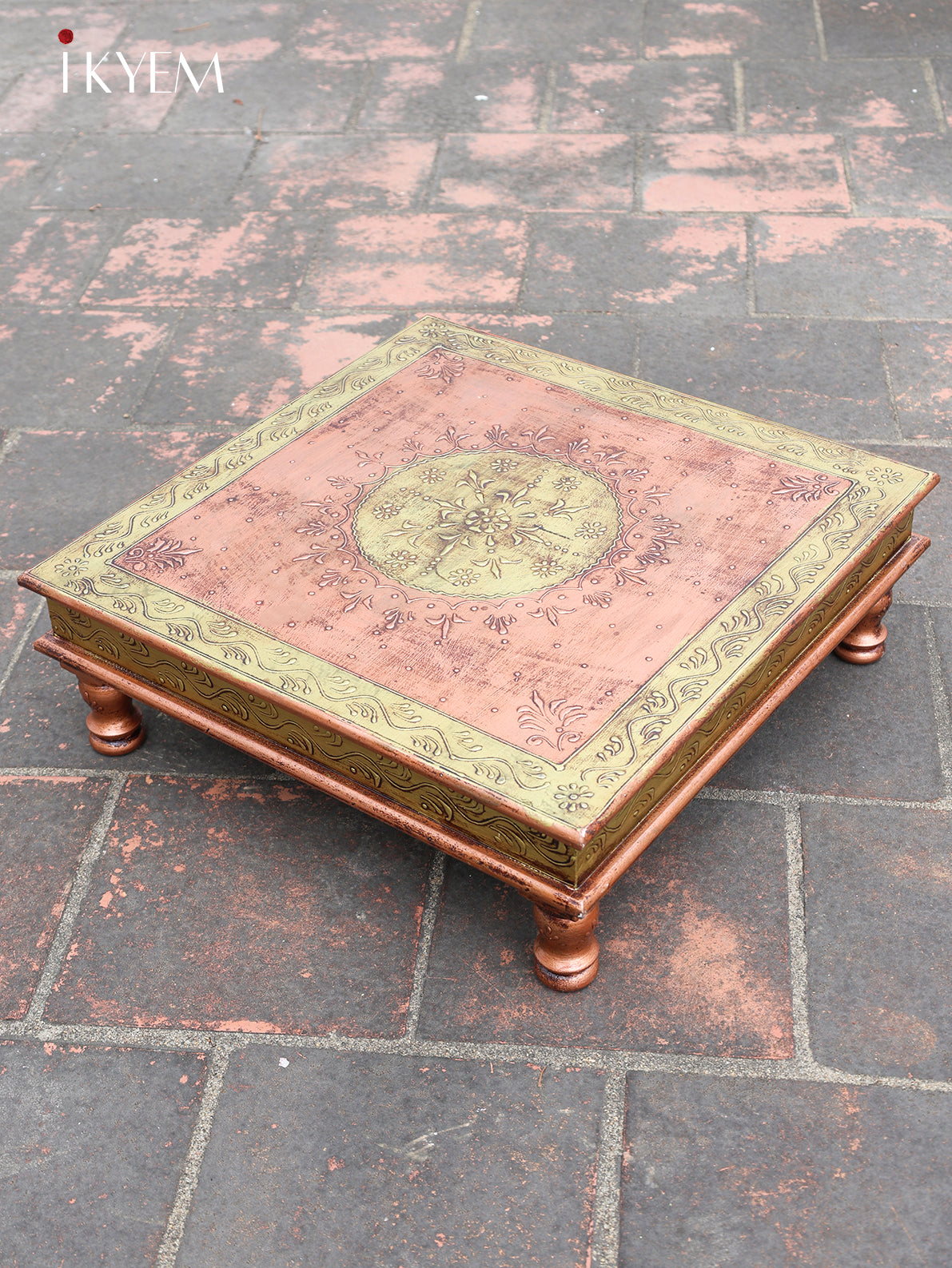 This exquisite Stool is a true work of art, handcrafted with meticulous attention to detail. The square tabletop is adorned with a vibrant hand-painted design, featuring intricate floral motifs and geometric patterns. The warm tones of the paint, reminiscent of autumnal hues, create a cozy and inviting atmosphere.