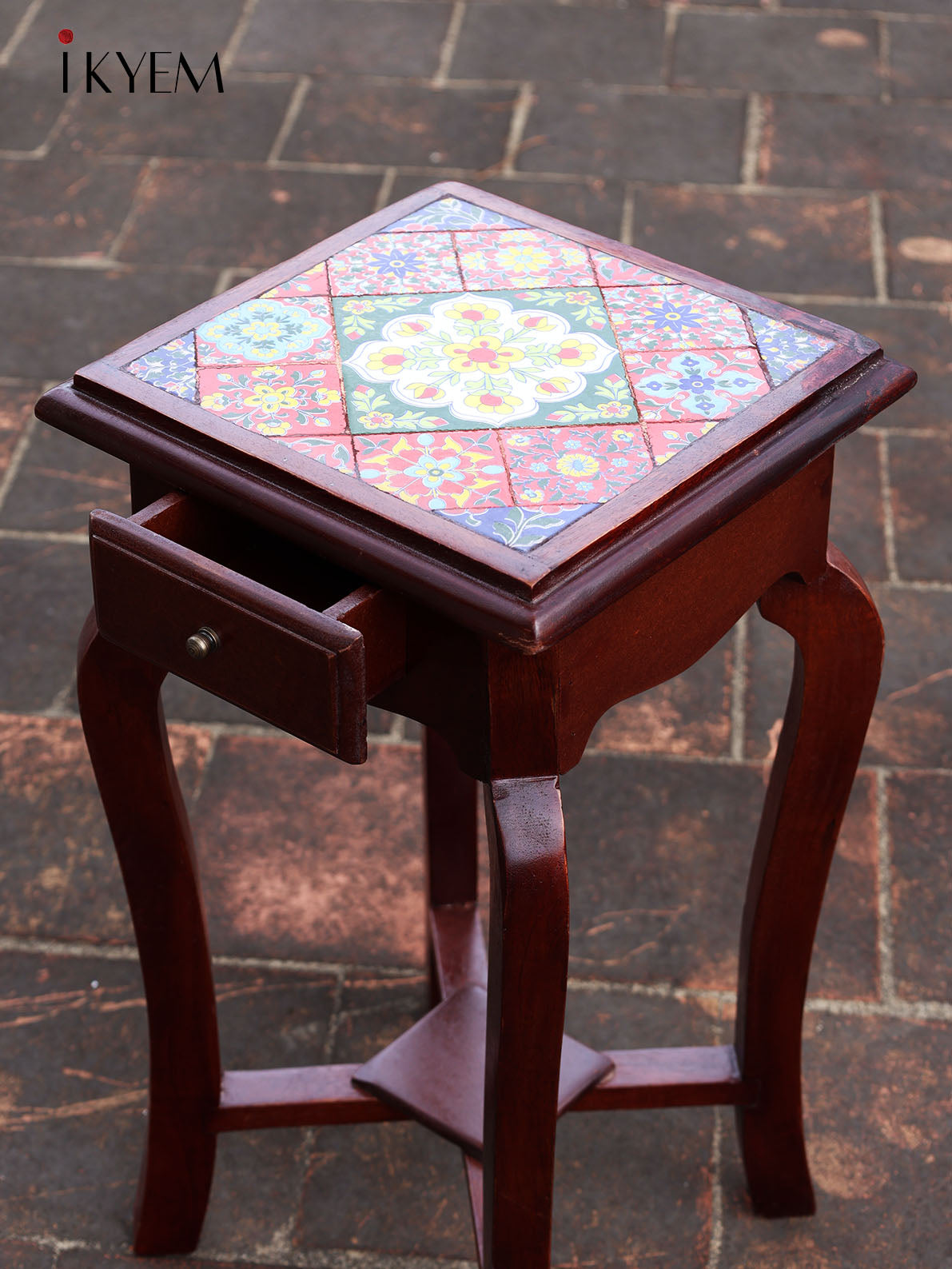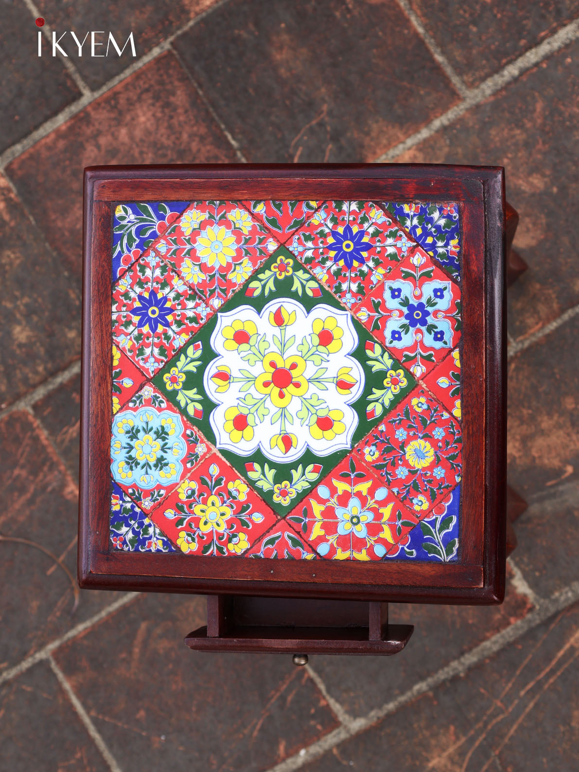 This exquisite wooden stool features a vibrant tile pattern, adding a touch of artistic flair to any space. Crafted from durable wood, it combines functionality with style, making it perfect for both indoor and outdoor use. The unique design makes it a standout piece, ideal for enhancing your home decor.