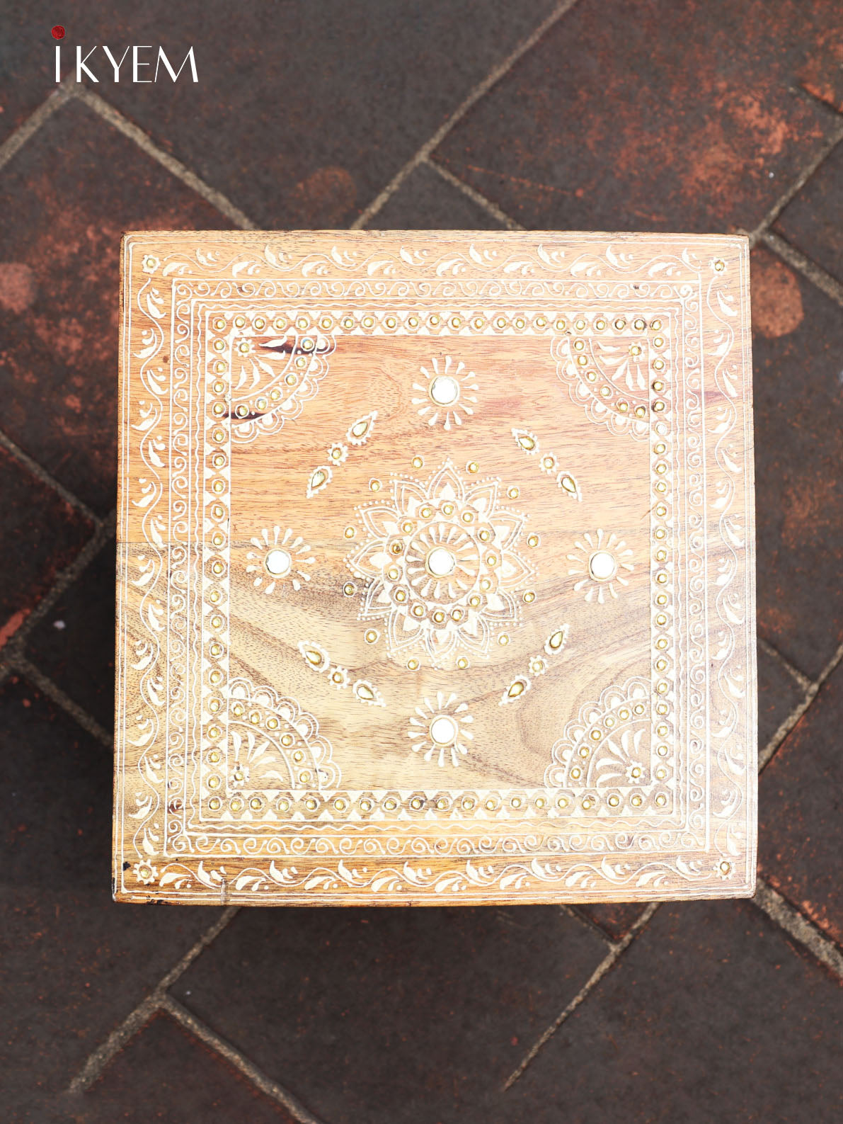 Hand Painted Wooden Stool - 18.1 Inch - 4IJ24026