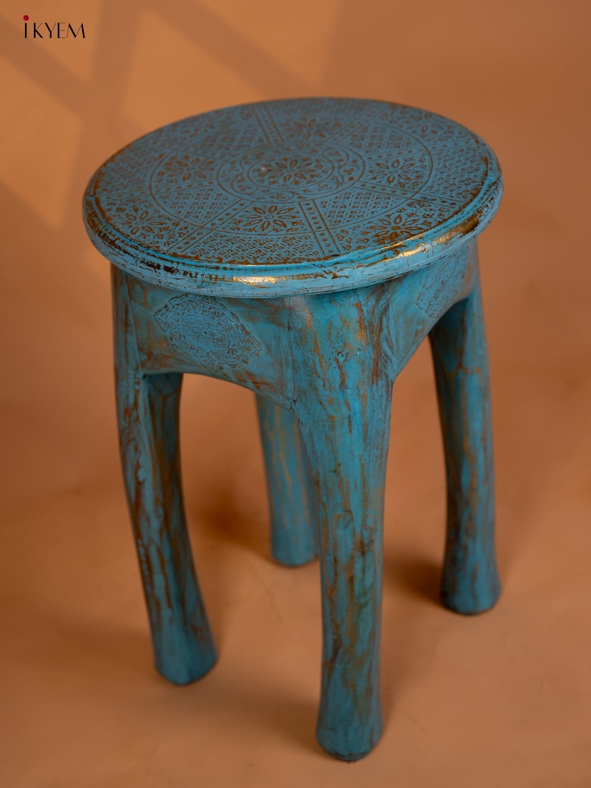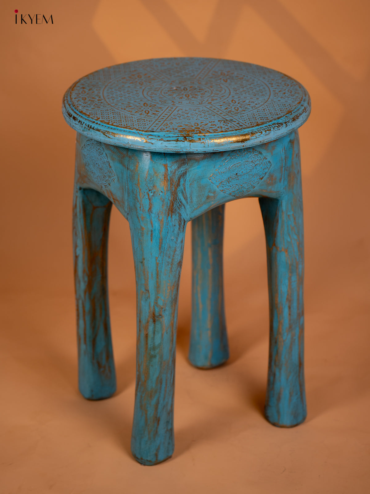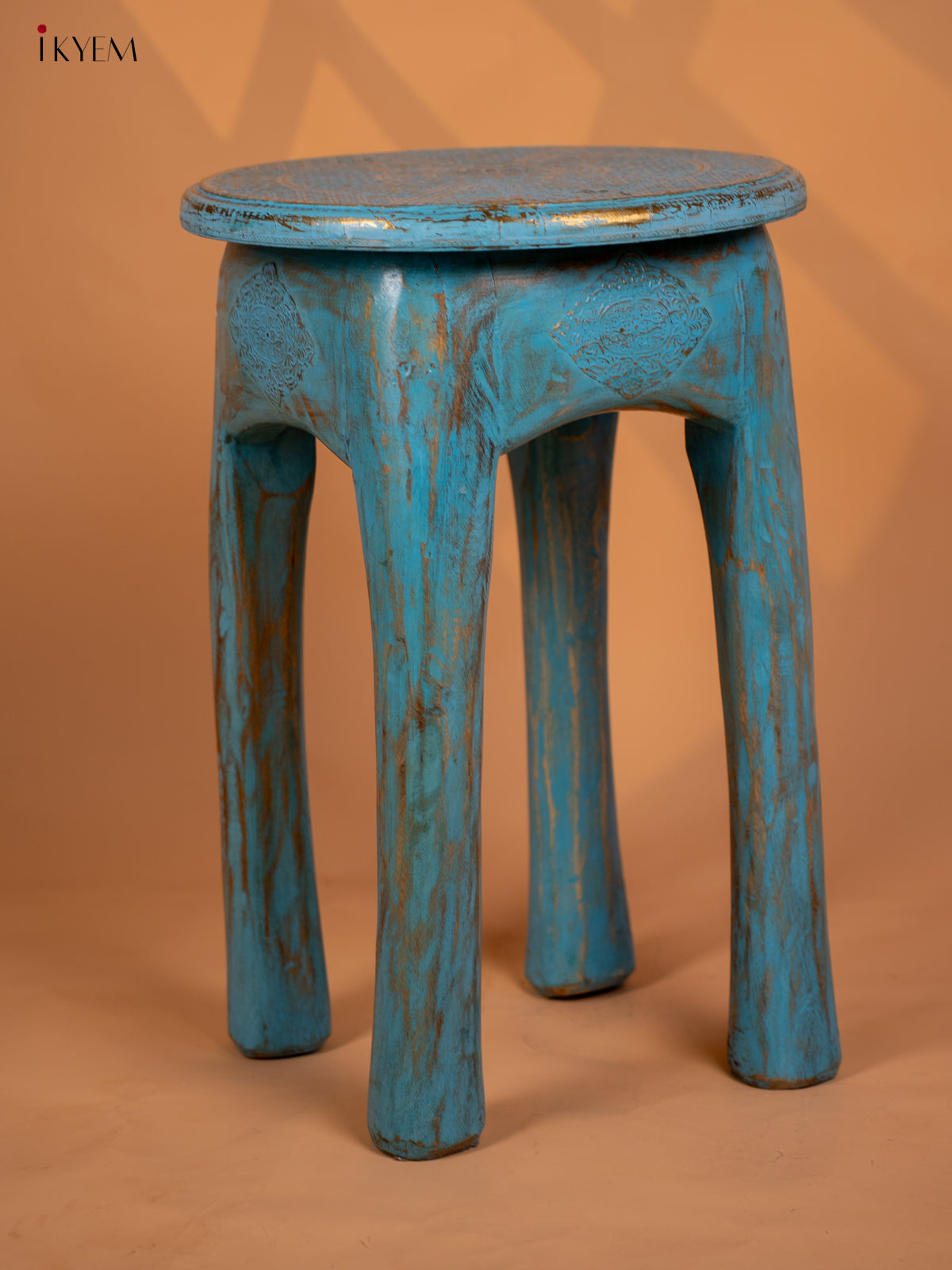 Wooden Elephant Legs Stool Blue - 20.3 Inch - 4IJ26113