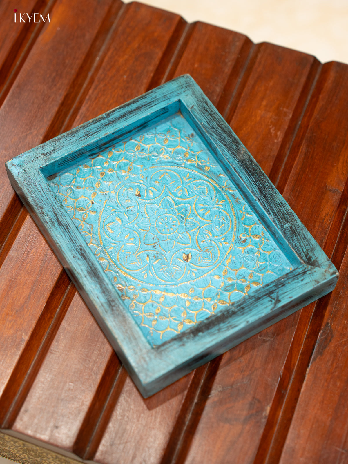 Handcrafted Wooden Tray with Intricate Floral Design