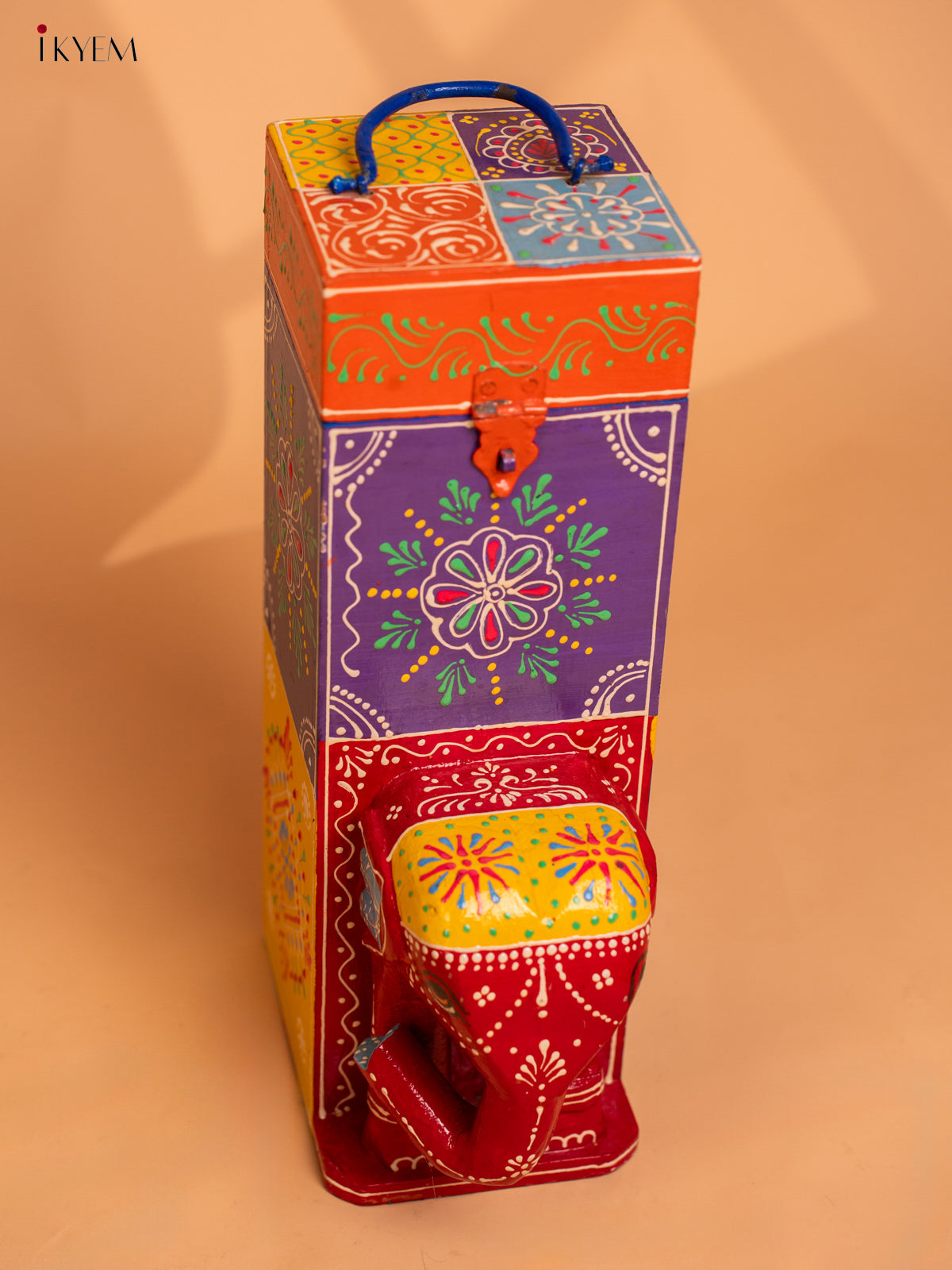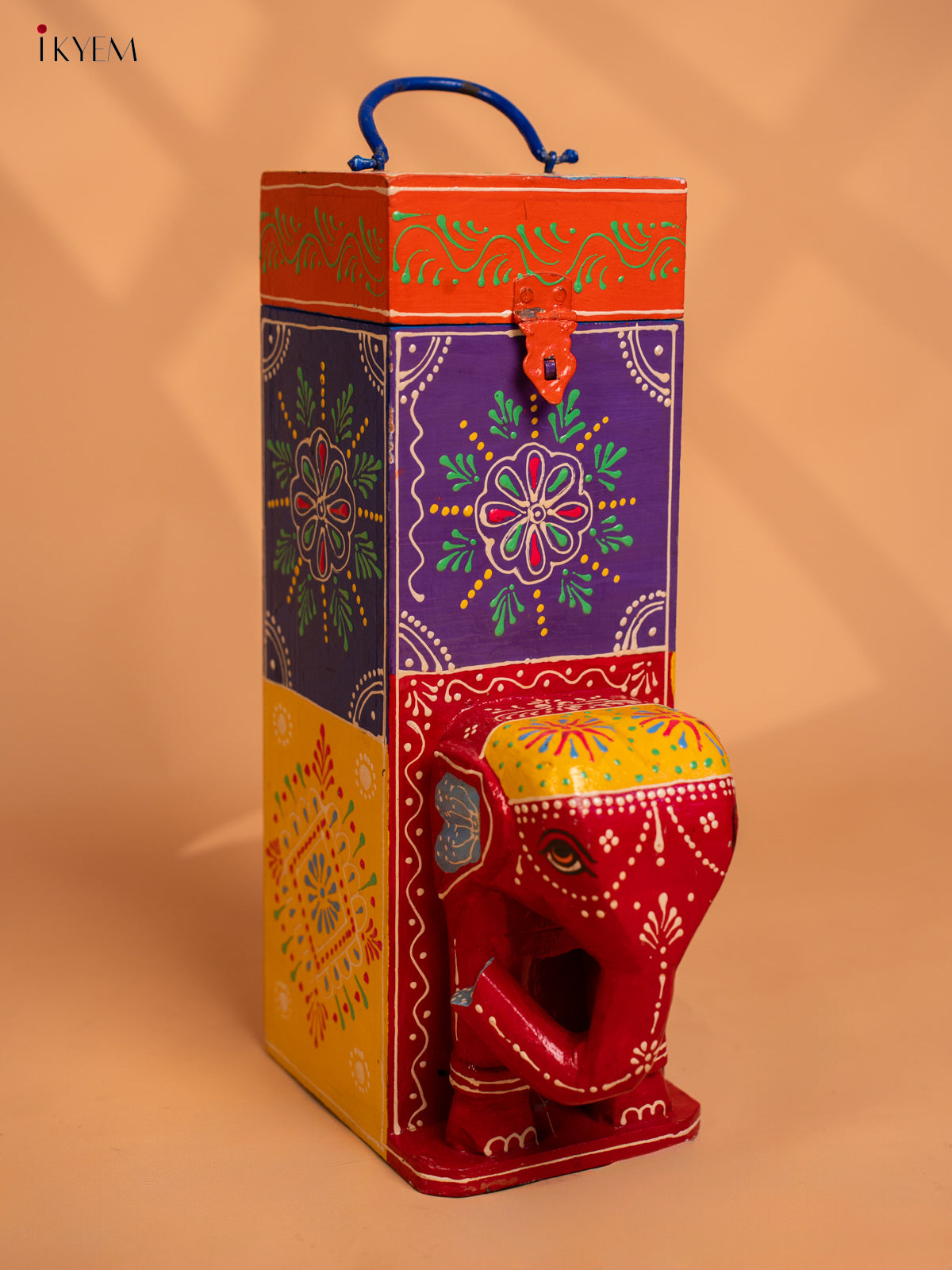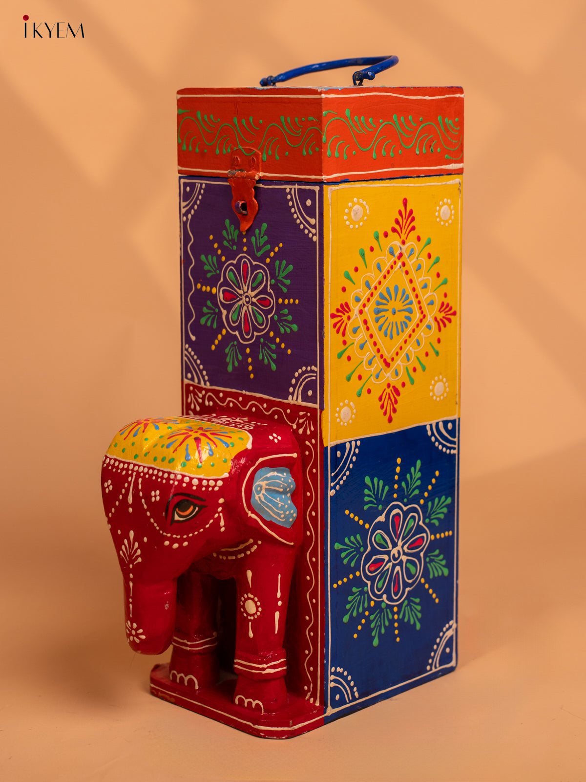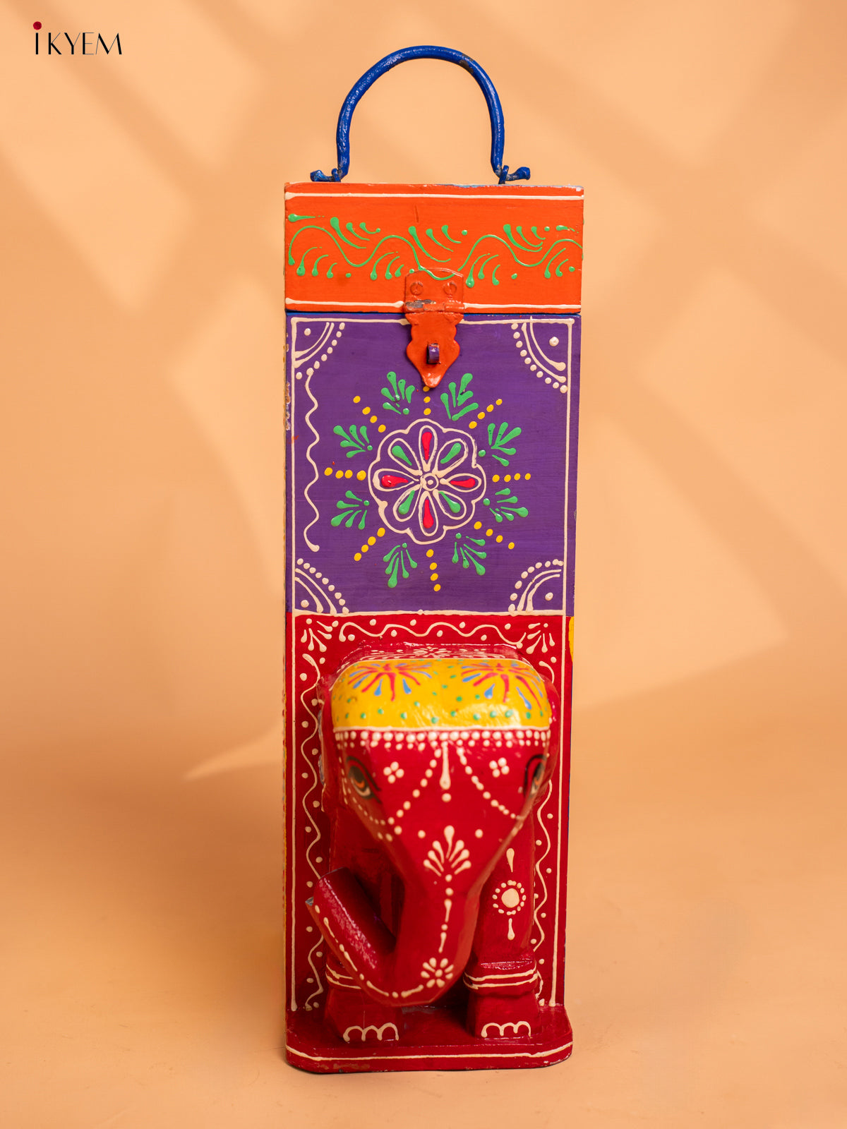 Wooden Multi colour Hand Painted Elephant Box - 13.3 Inch- 4JJ02002