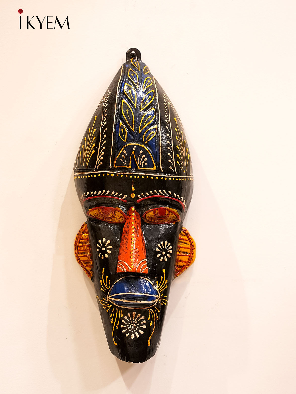 This handcrafted wooden tribal face mask showcases intricate carvings and vibrant colors, reflecting traditional artistry. Its bold, expressive features represent cultural symbolism and spirituality. Perfect as wall décor, it adds a rustic and ethnic charm to any space.