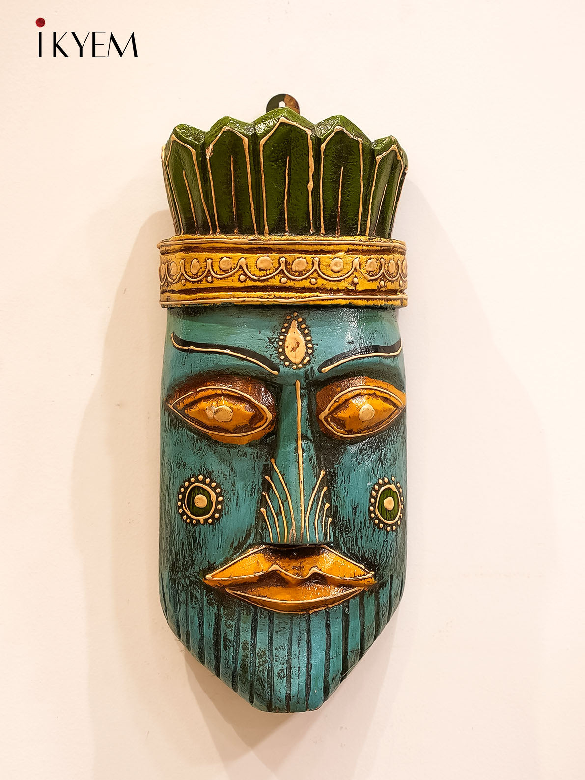 This handcrafted wooden tribal face mask showcases intricate carvings and vibrant colors, reflecting traditional artistry. Its bold, expressive features represent cultural symbolism and spirituality. Perfect as wall décor, it adds a rustic and ethnic charm to any space.