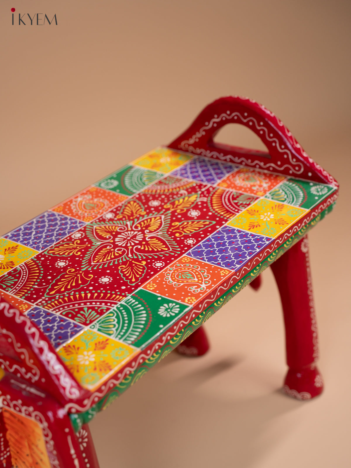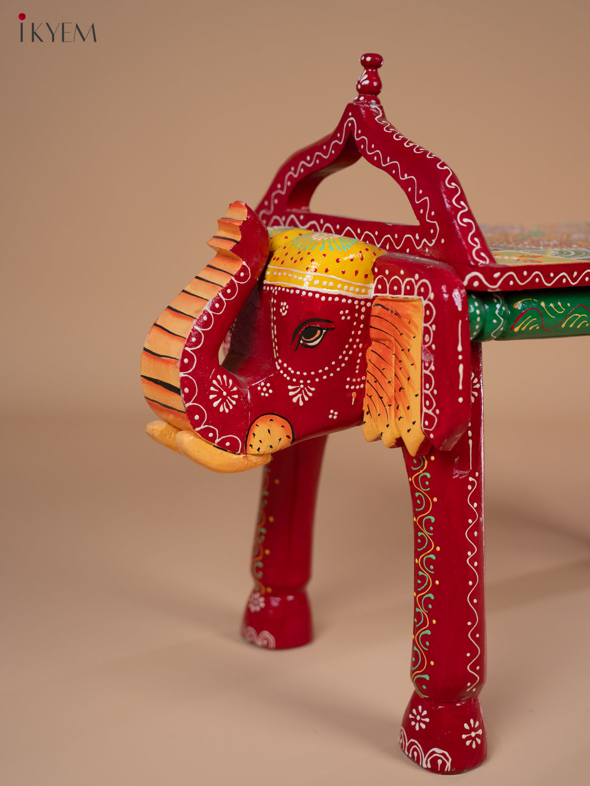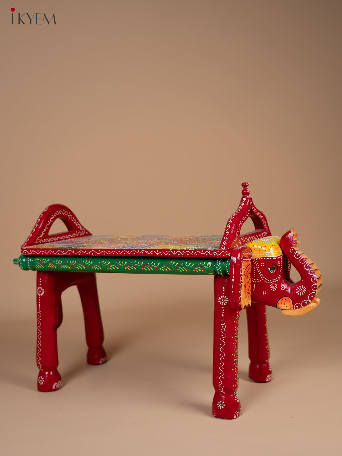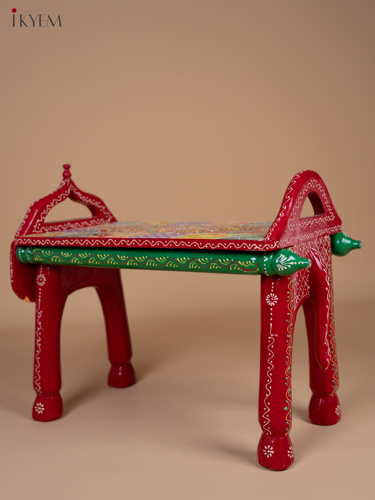 Hand Painted Elephant-Shaped Stool -13.8 Inch- 4JJ02087