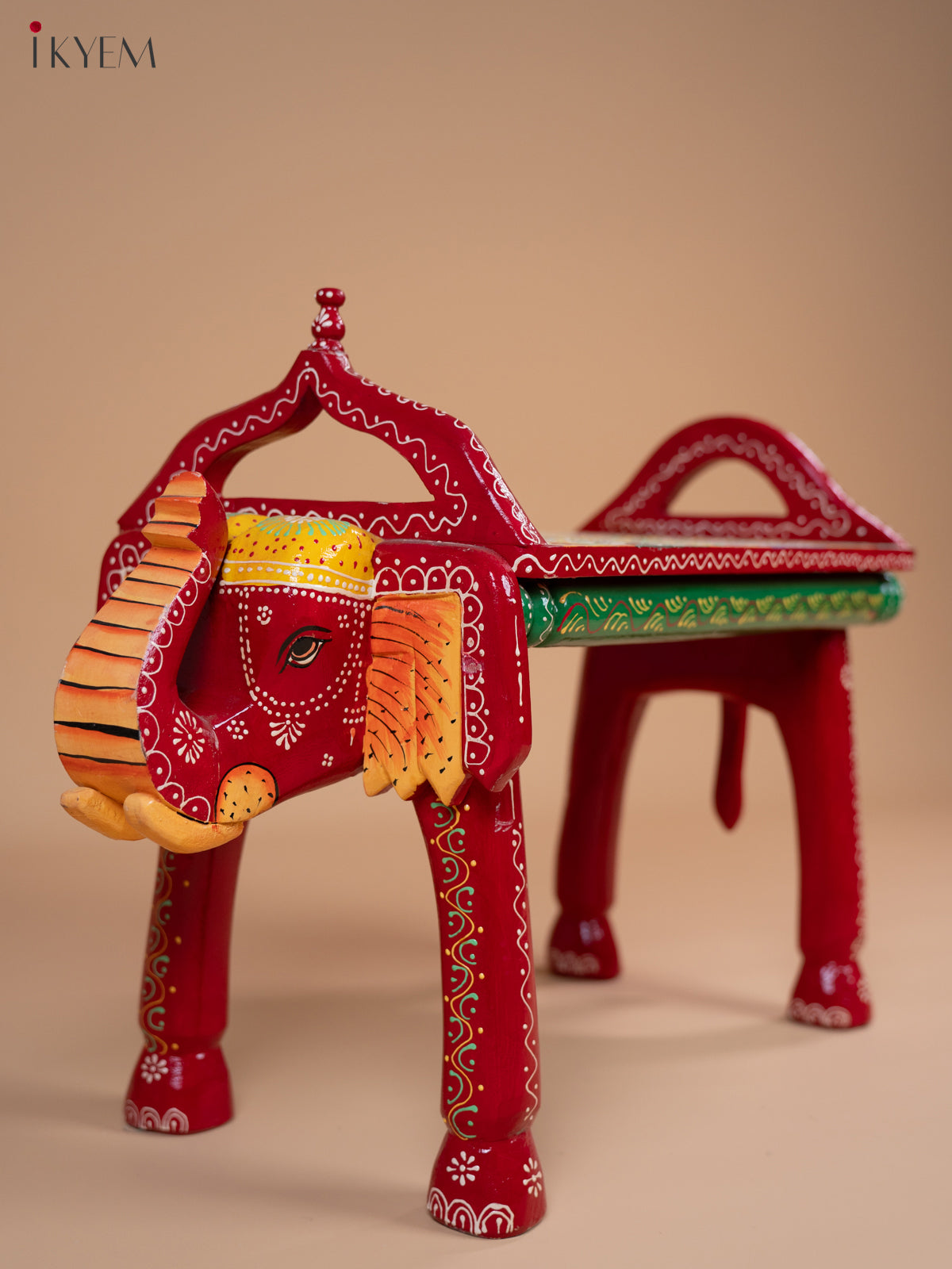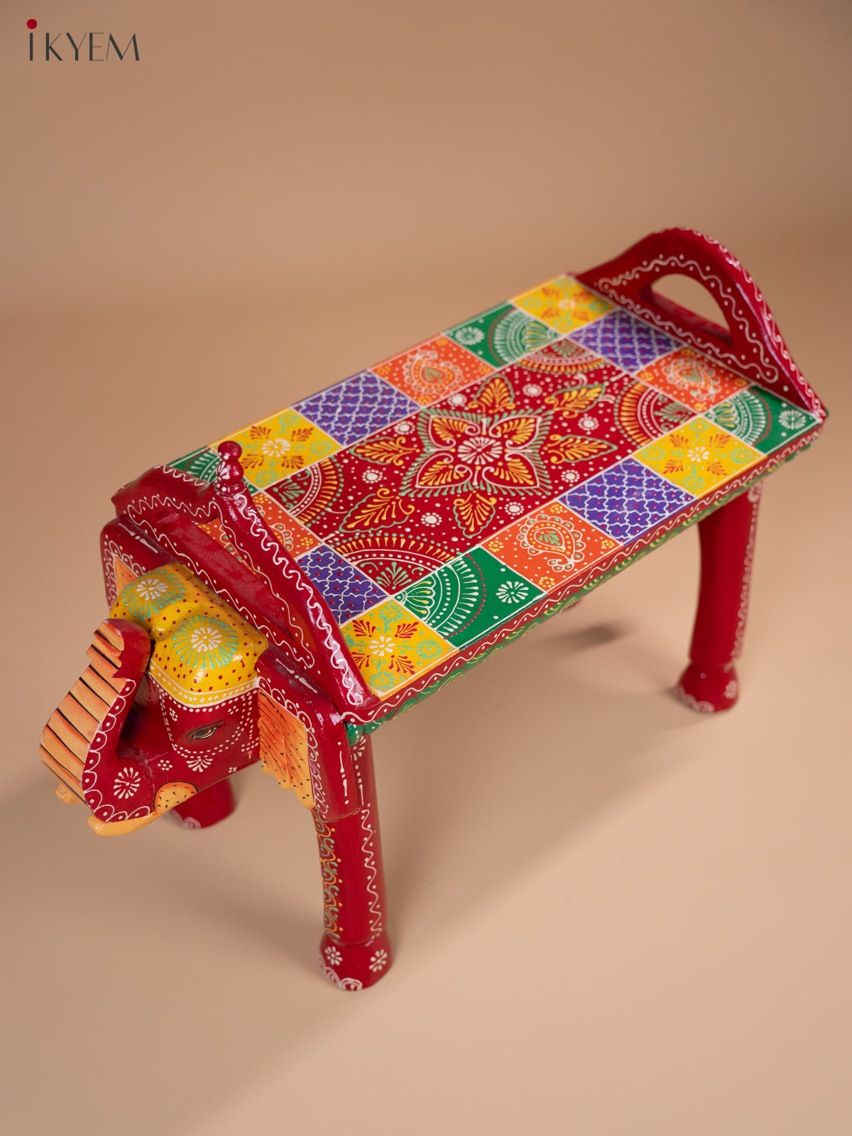 - Add a touch of unique style to your home decor with our Hand Painted Elephant-Shaped Stool.