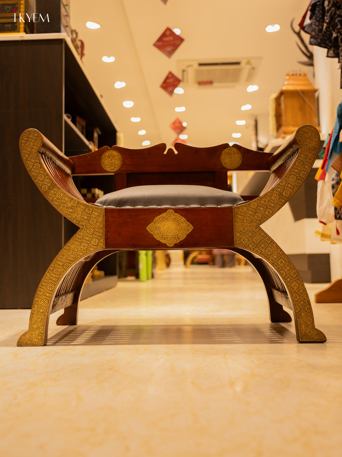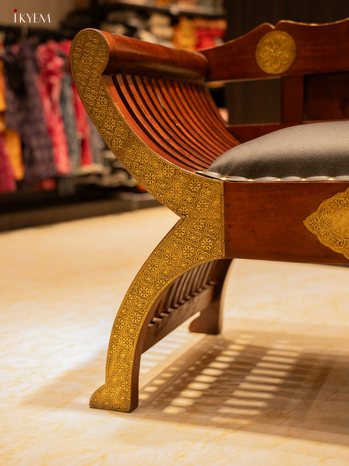- Crafted with a wooden frame and brass fittings, this chair adds a touch of sophistication.