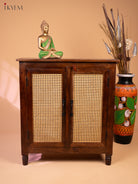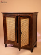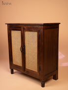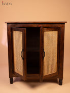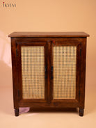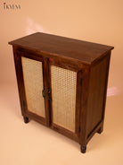 Ratan/Cane Paneled Wooden Cabinet