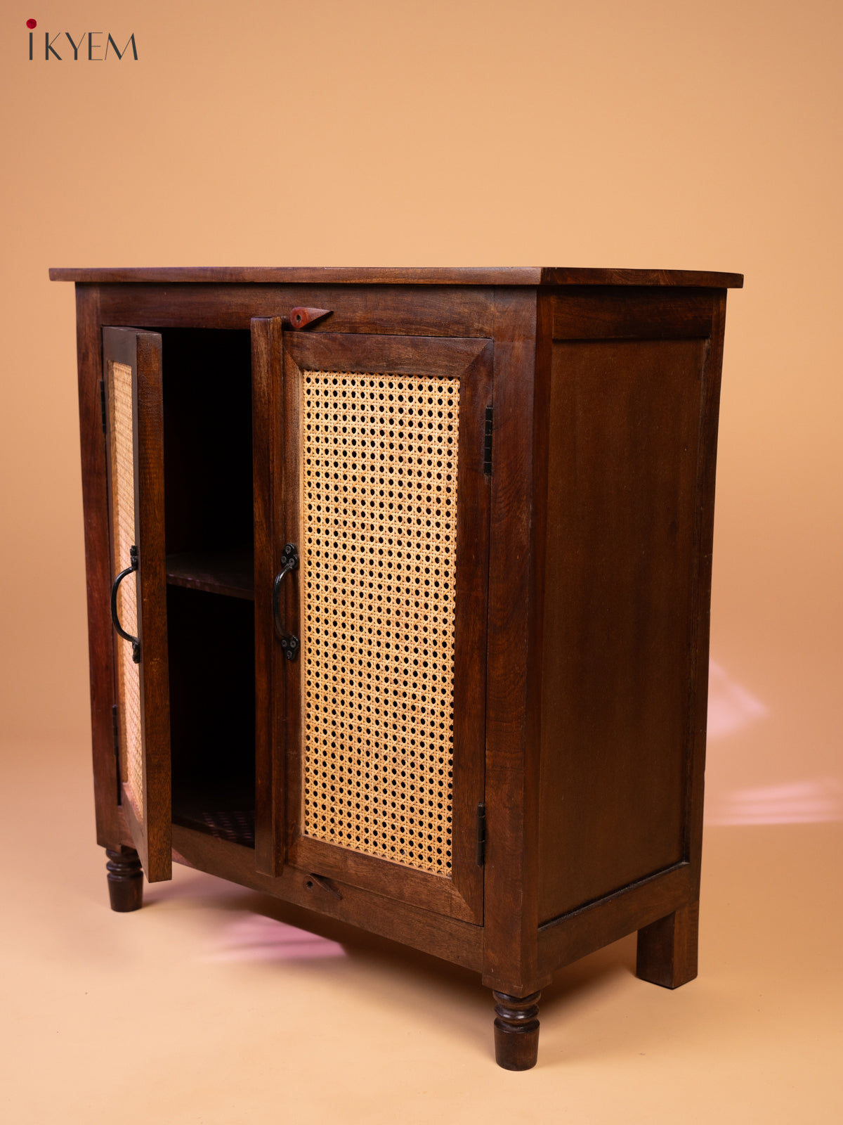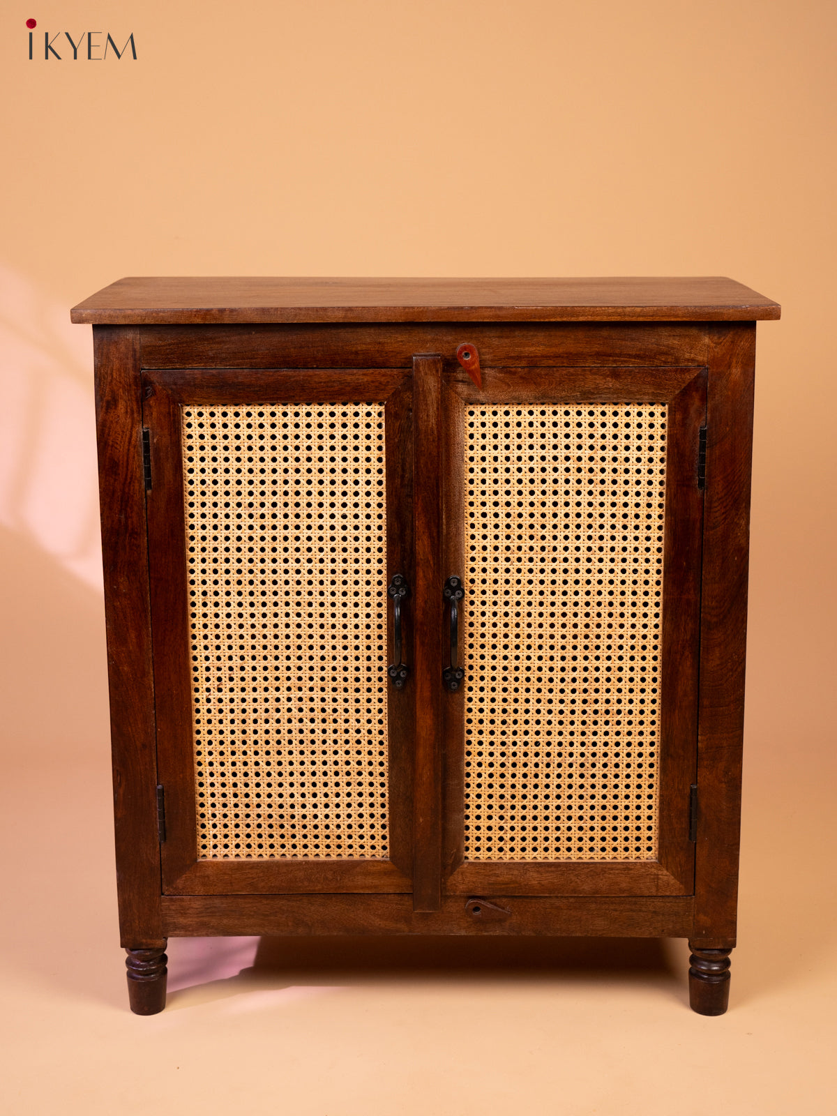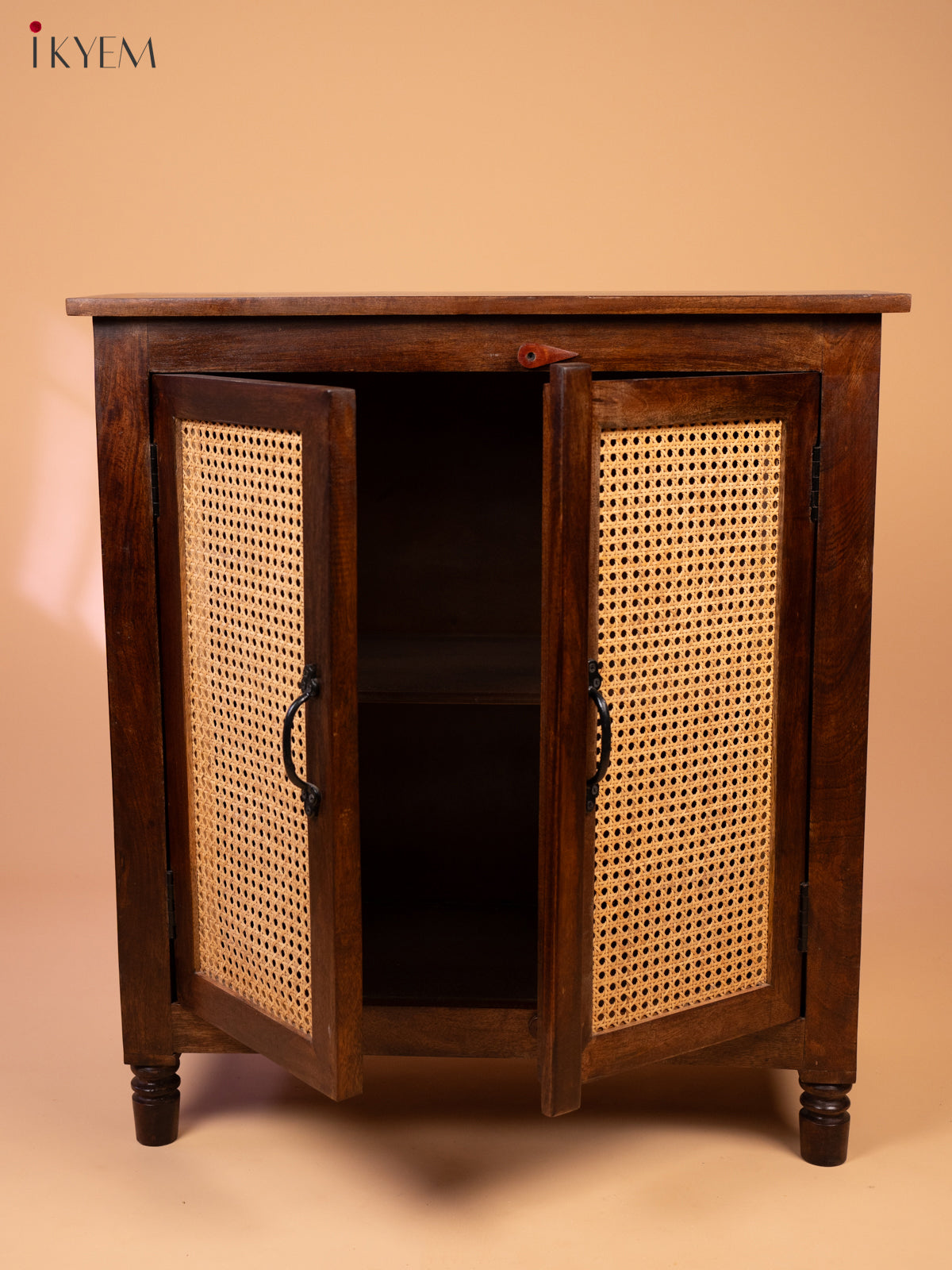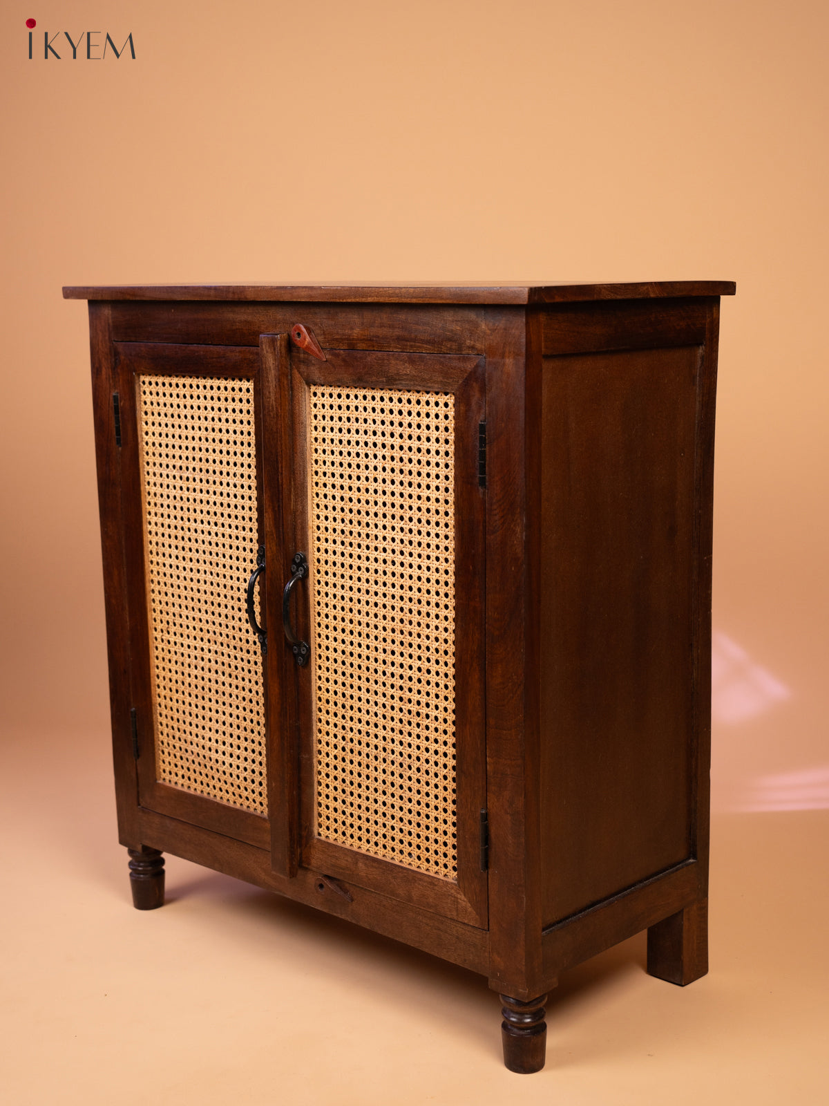 This charming wooden cabinet is a perfect blend of rustic charm and modern functionality. Crafted from high-quality wood, the cabinet features a rich, dark brown finish that adds a touch of elegance. The two doors are adorned with woven rattan panels, creating a unique and visually appealing design element. The rattan panels not only add a touch of natural beauty but also provide ventilation and airflow to the cabinet's interior.
