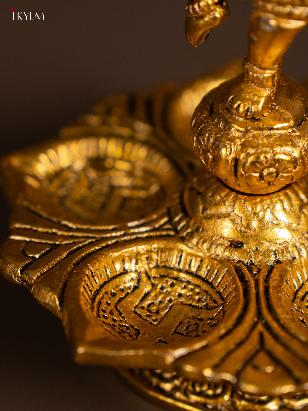 - Crafted with metal alloy and featuring the revered deity, this diya brings in good luck and prosperity.