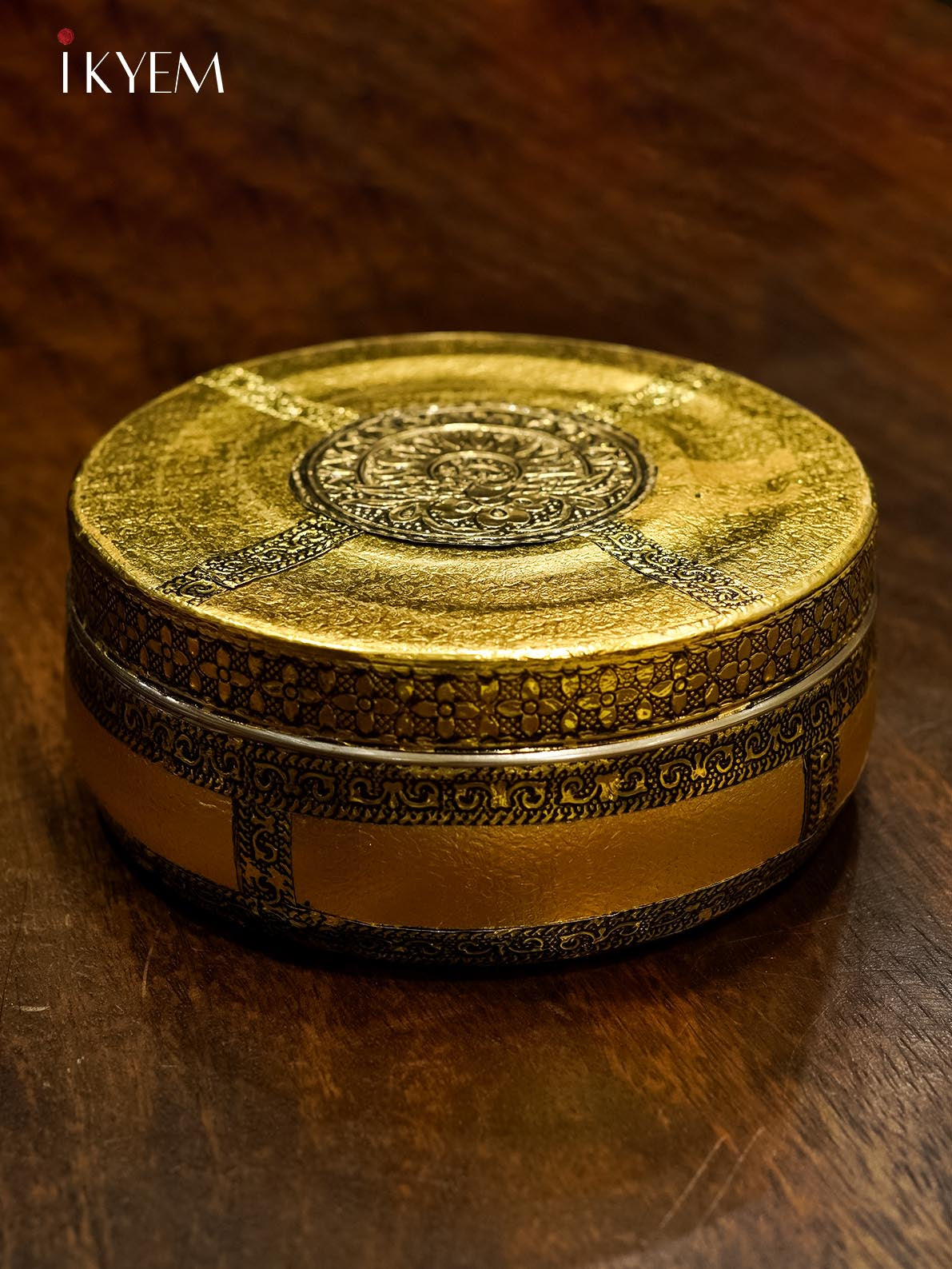 Antique Golden Finish Meenakari Round Dabba - 4GJ13036