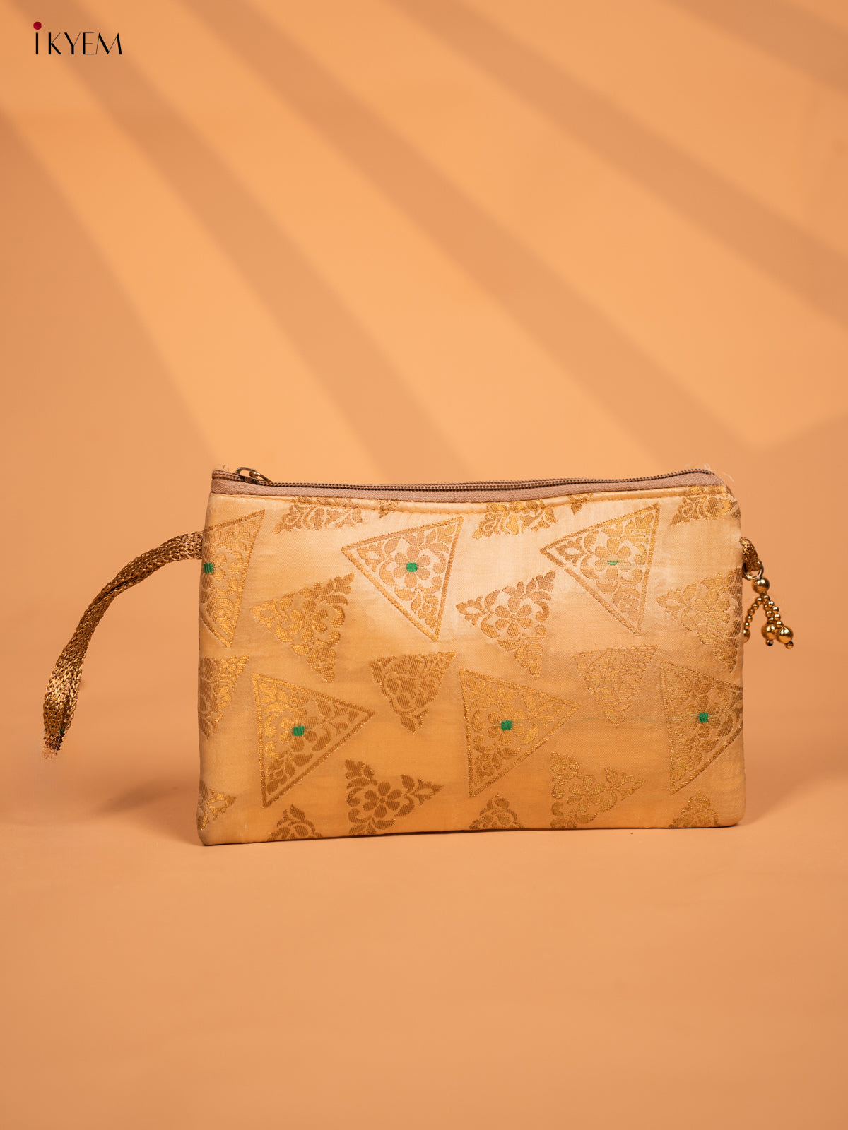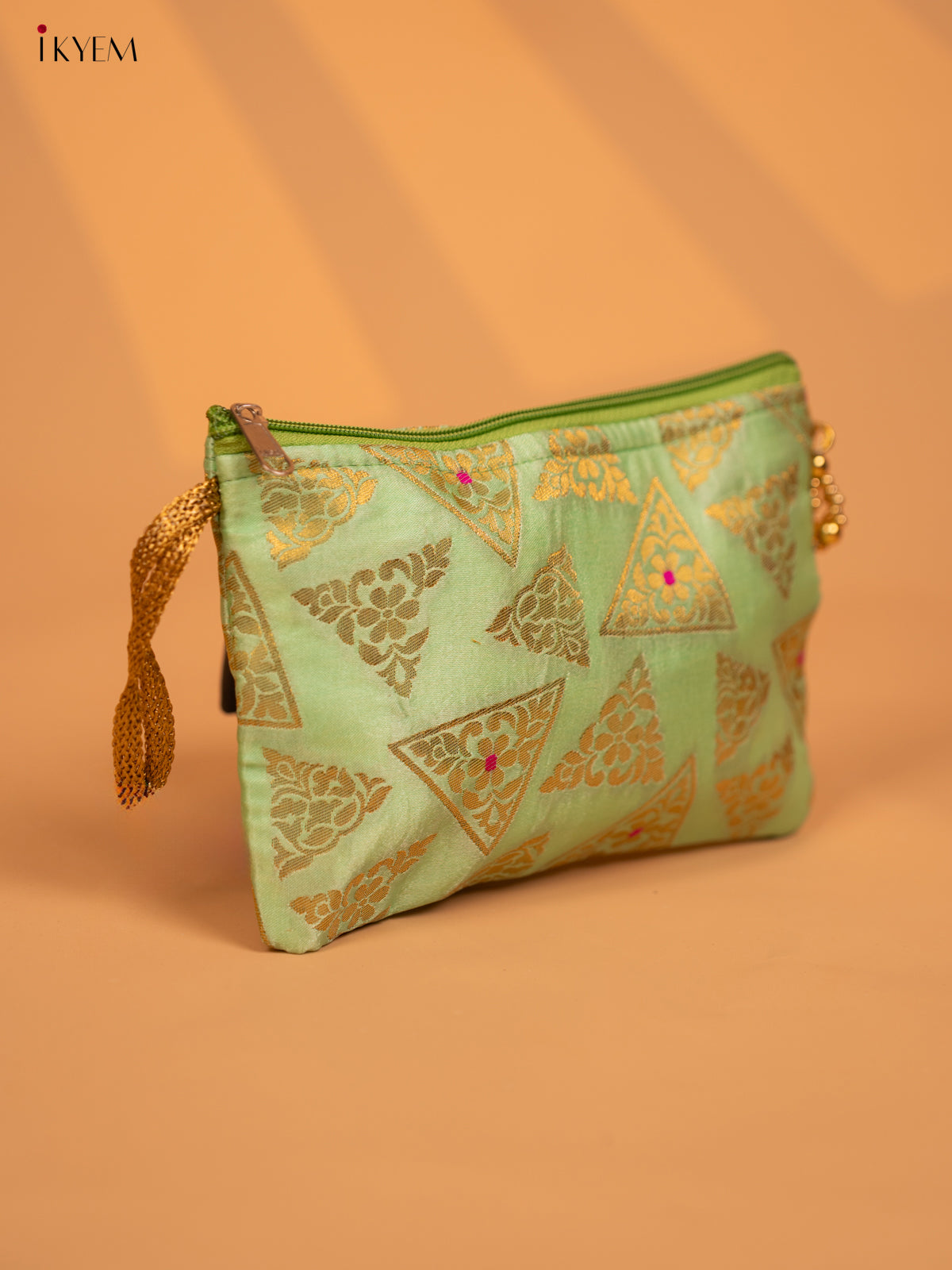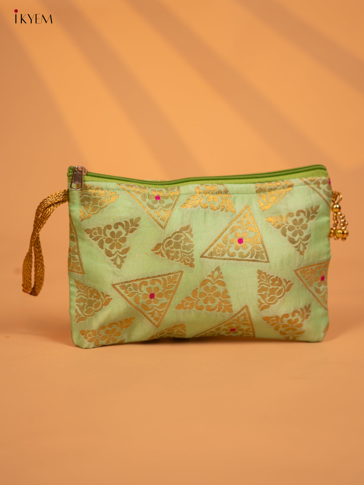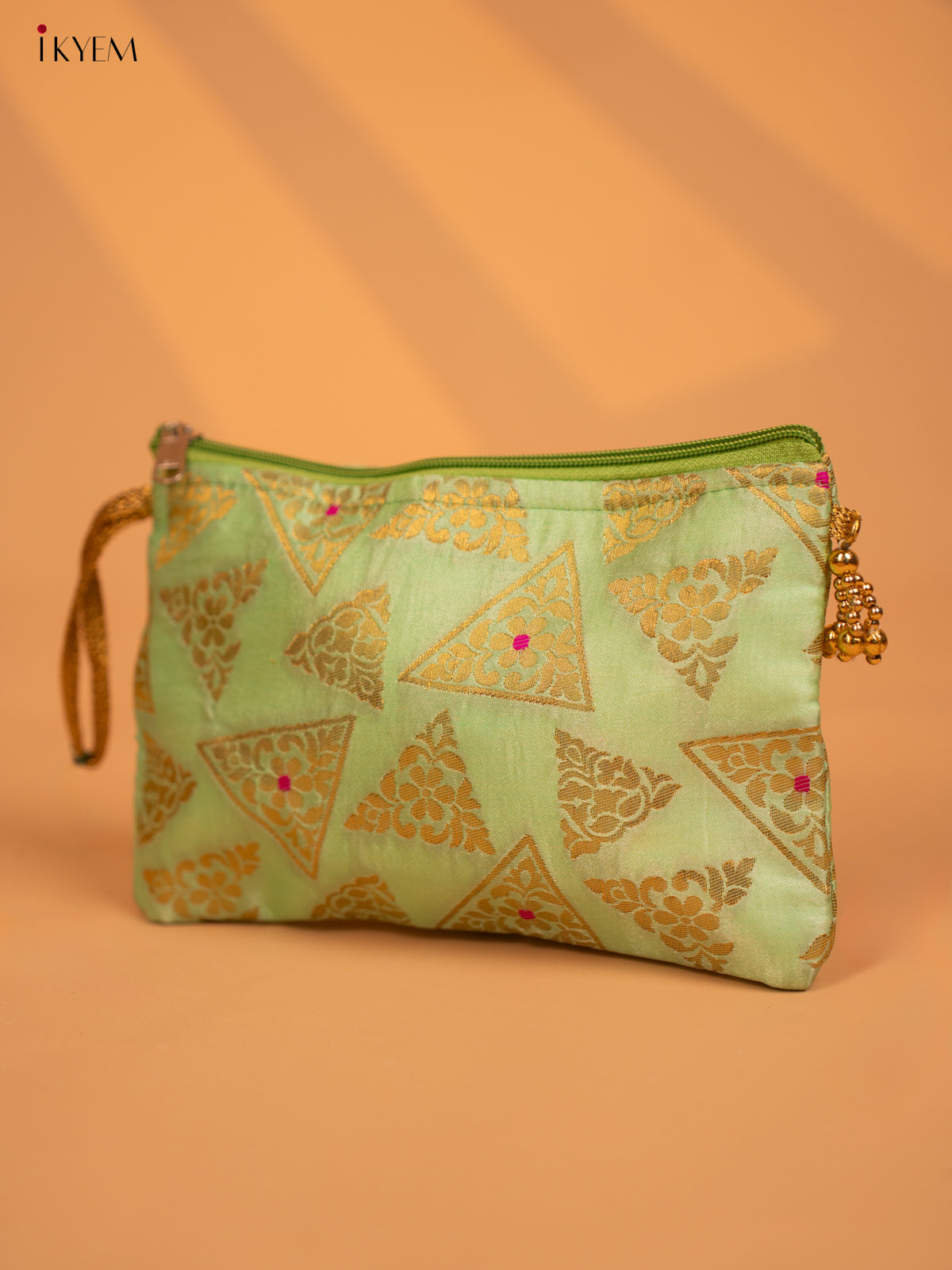 Elegant Light Green Brocade Purse with Gold Motifs - KD09119
