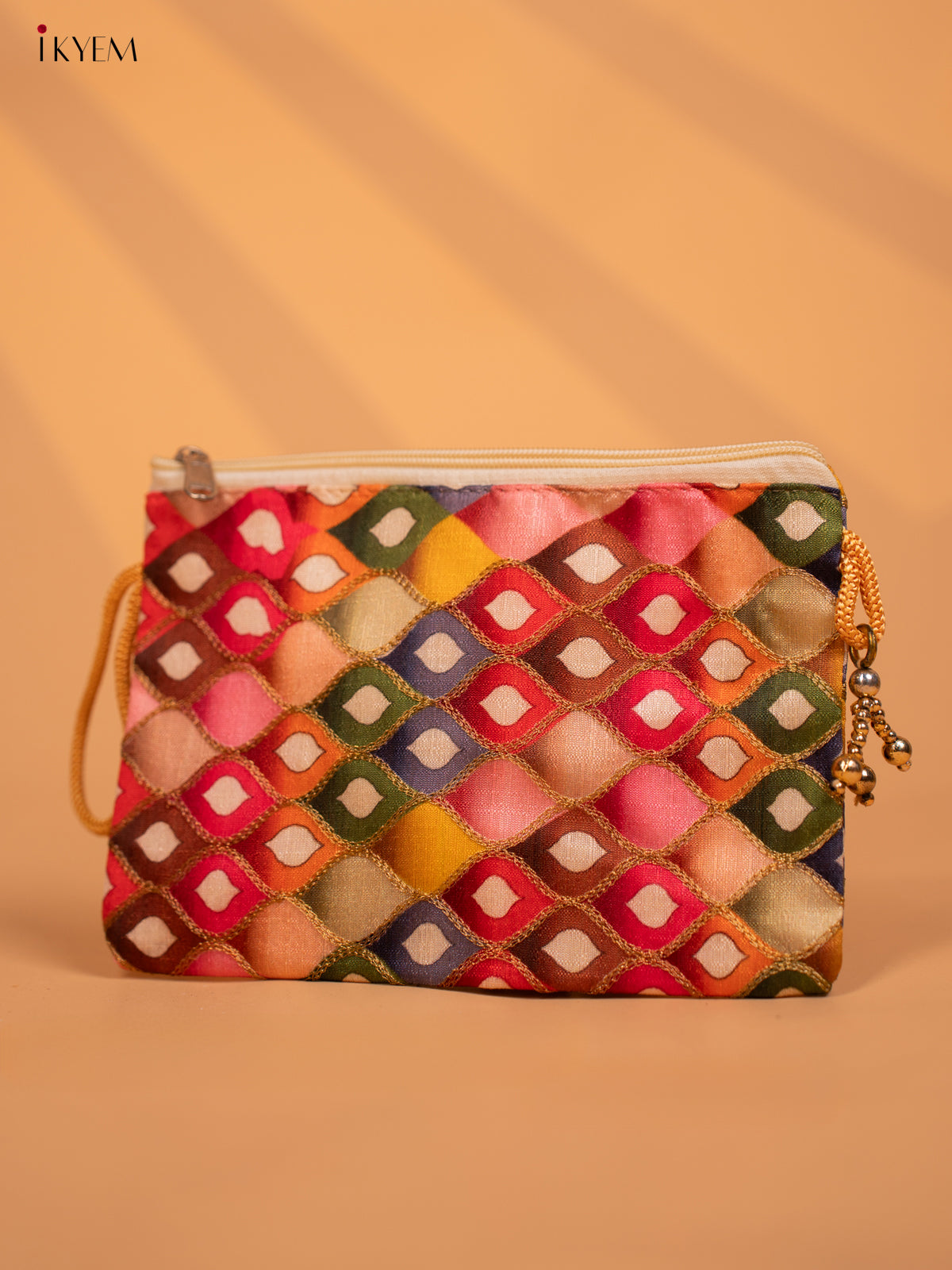 Colourful Embroidered Zipper Pouch for Festive Gifting - KD09127