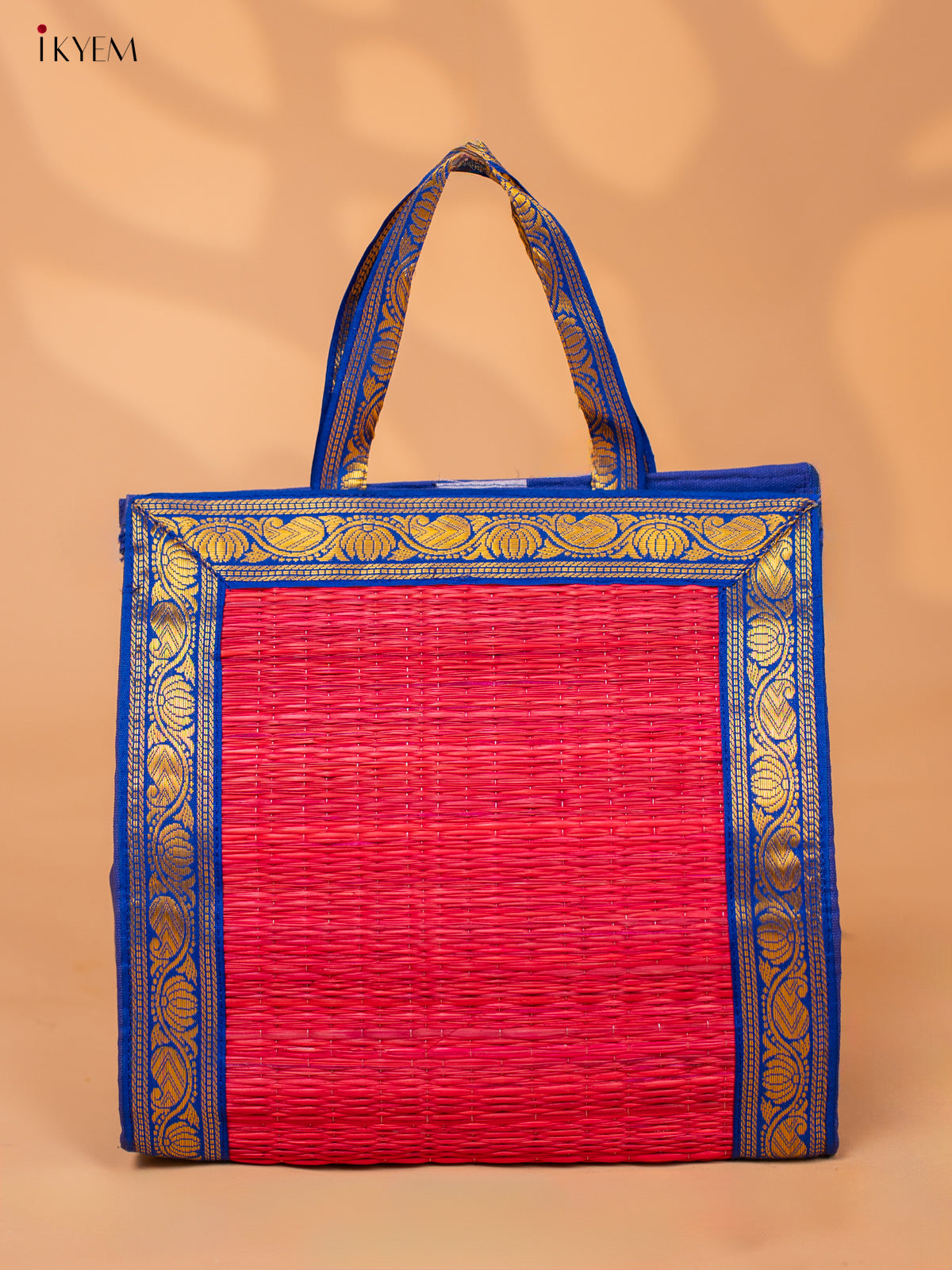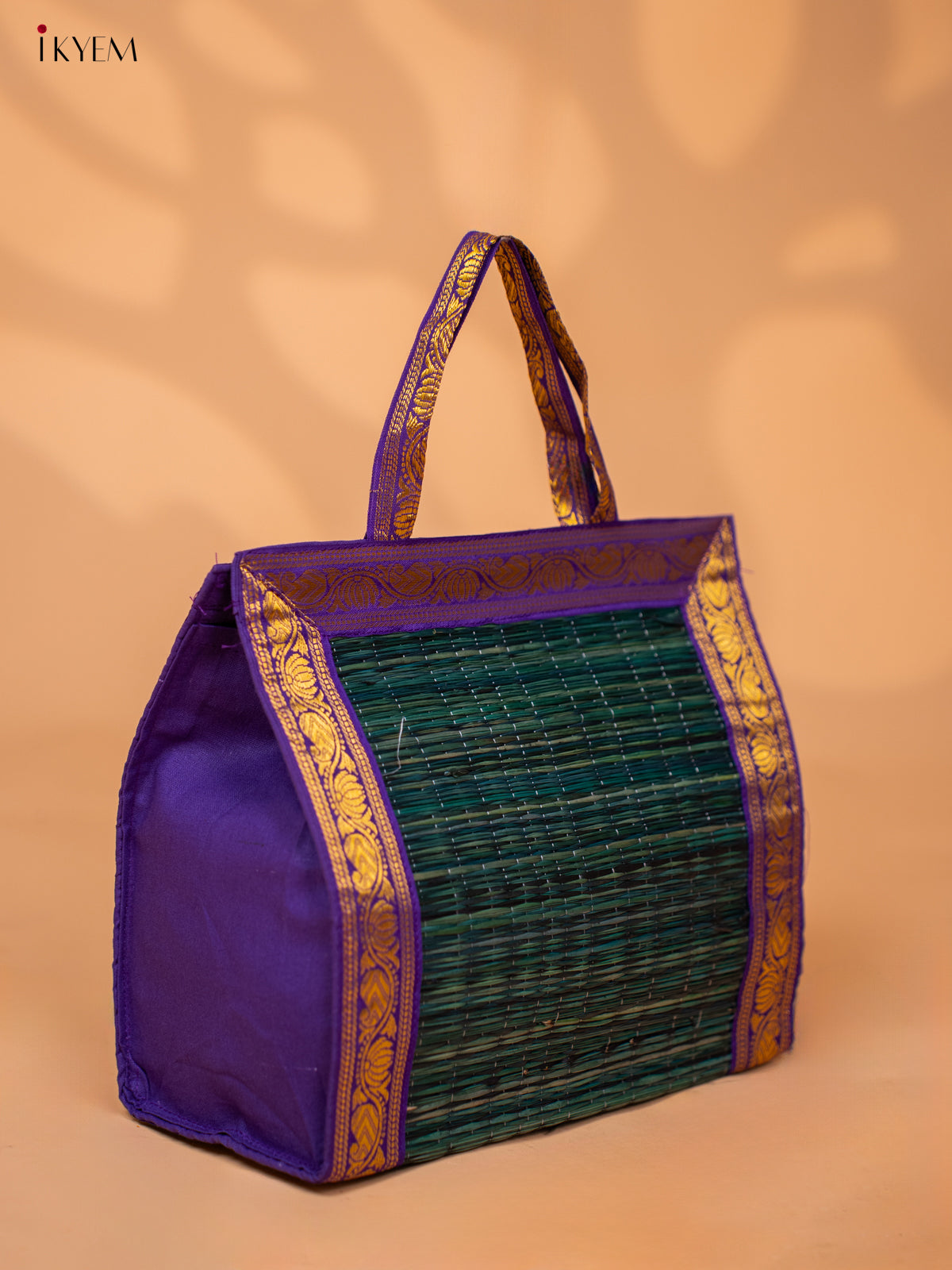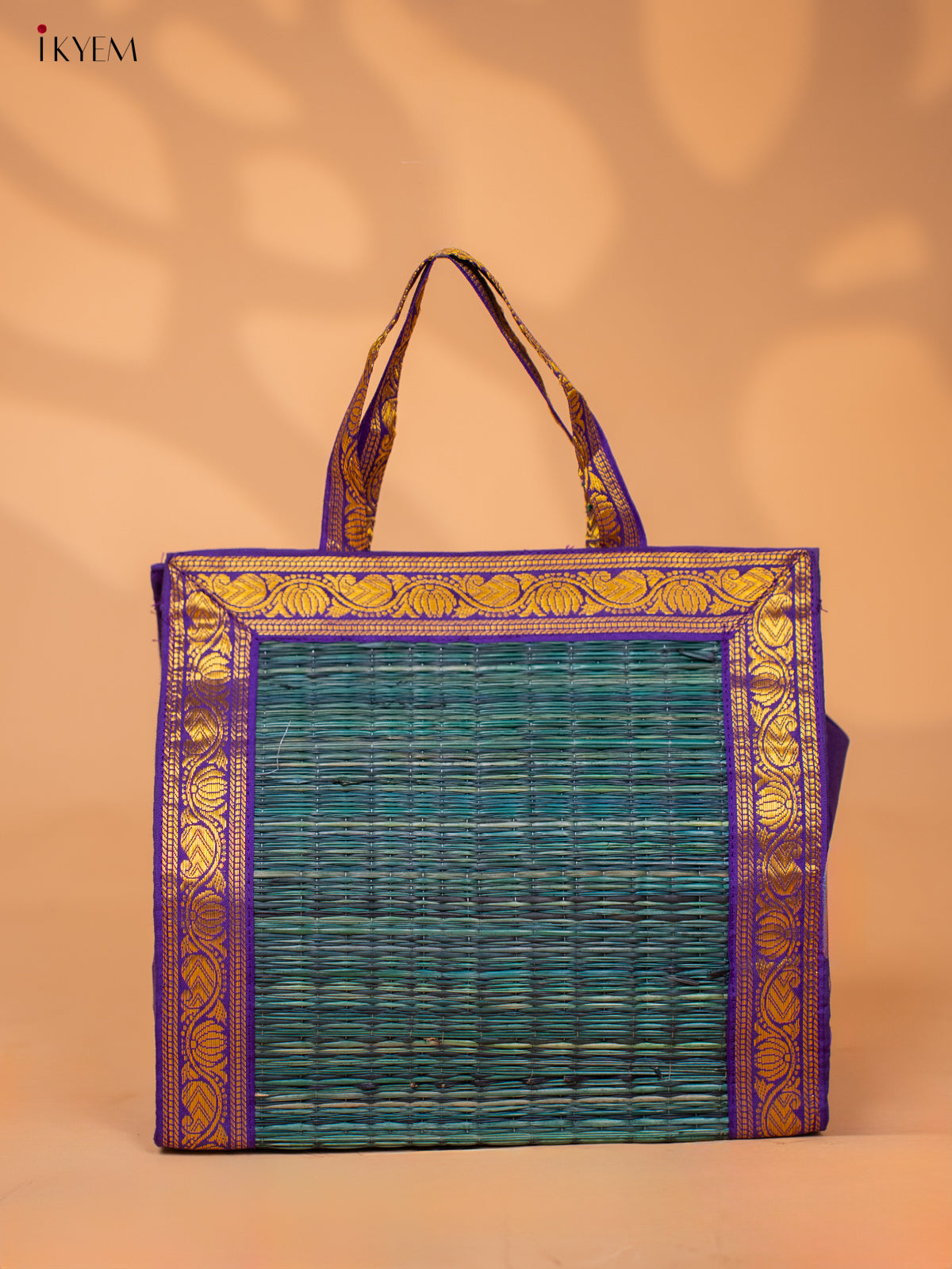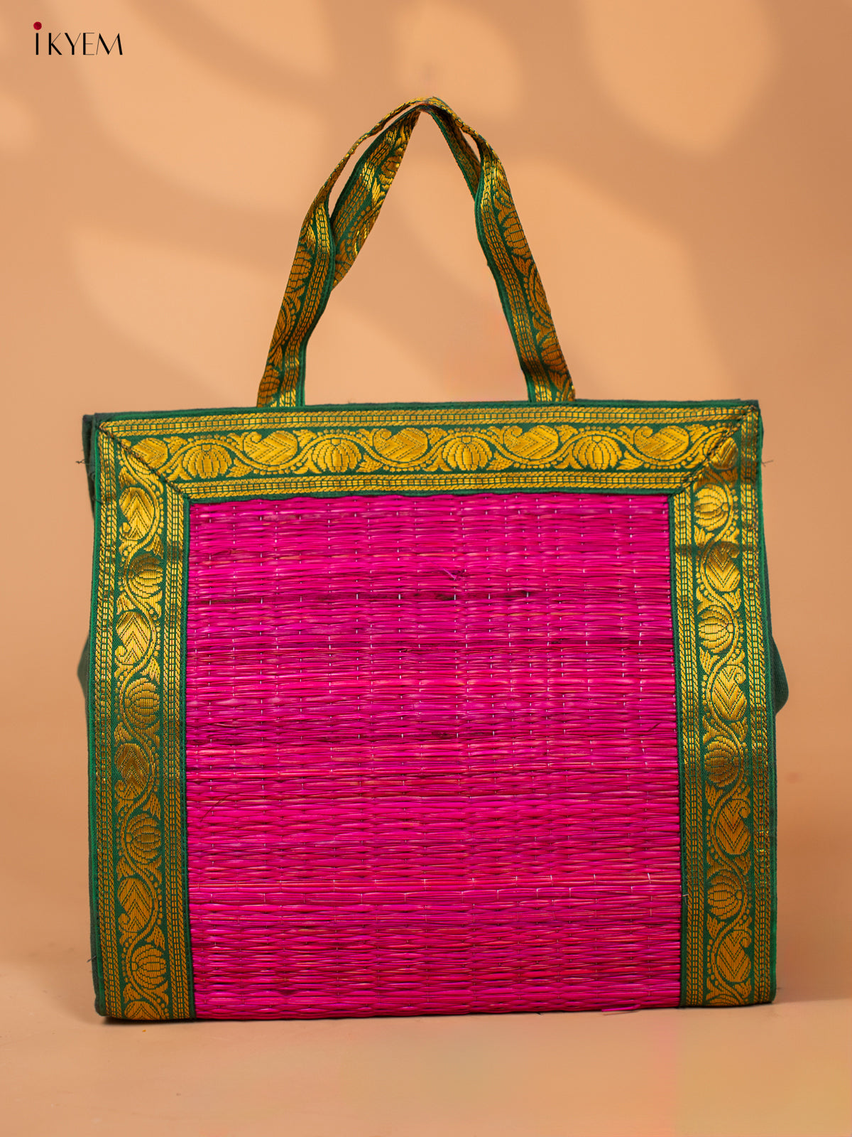 Handwoven Korai Grass Bags with Banarasi Borders - KB11121