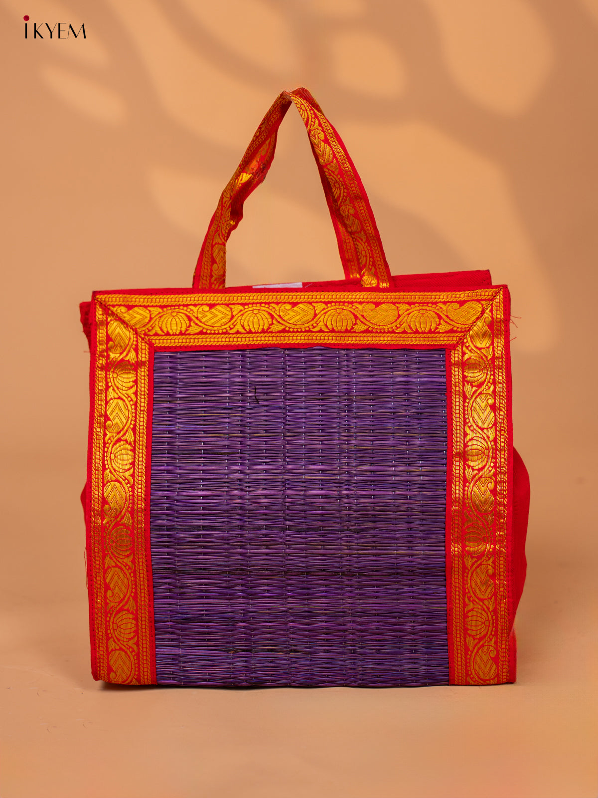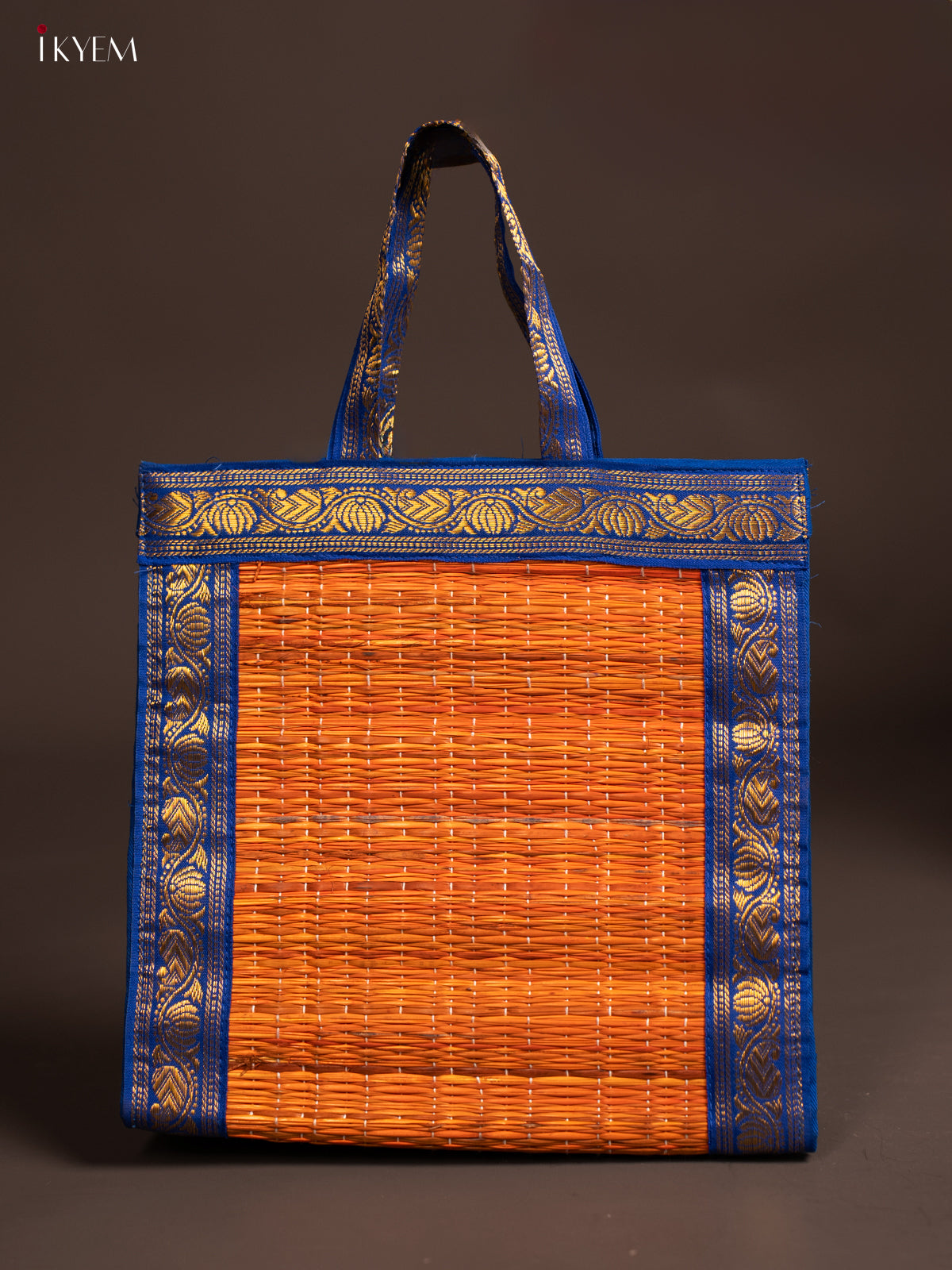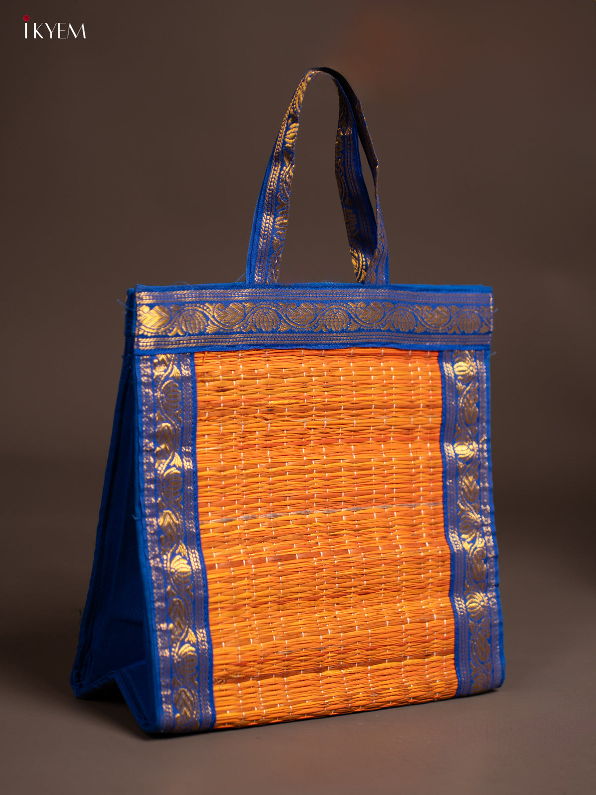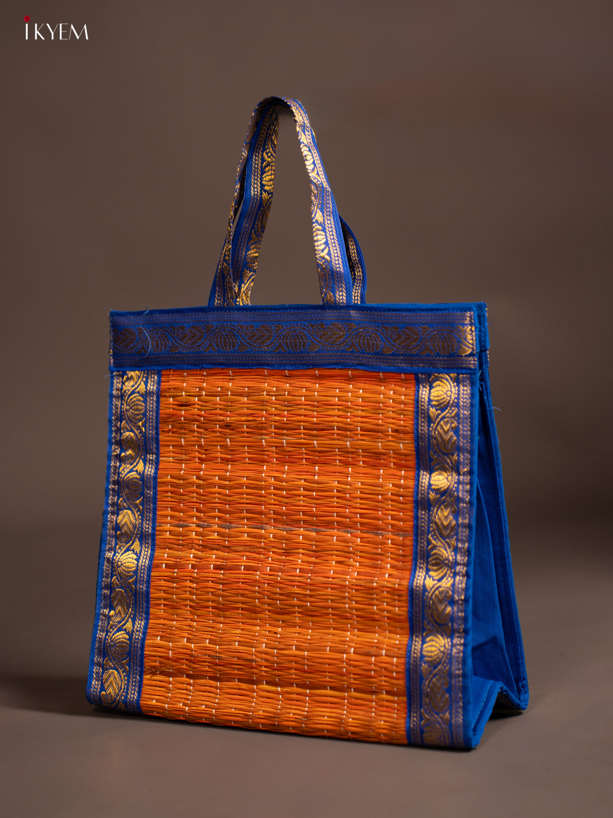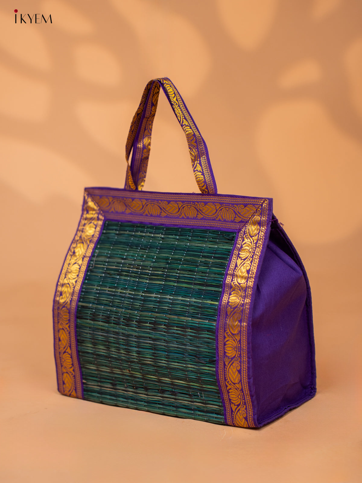 Handwoven Korai Grass Bags with Banarasi Borders - KB11121