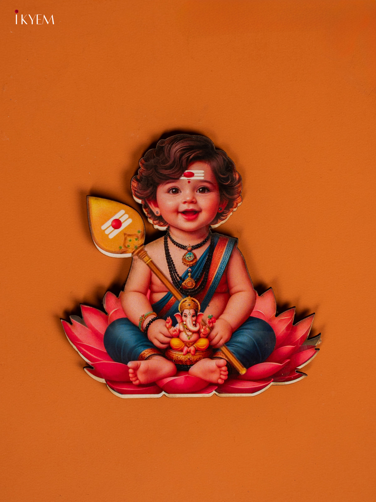 Baby Murugan Holding A small Ganesha Idol Printed Fridge Magnets - KF28126