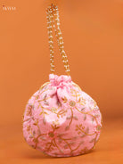 Cute Baby Pink Potli Bag With Embroidered Floral Design - KD26505