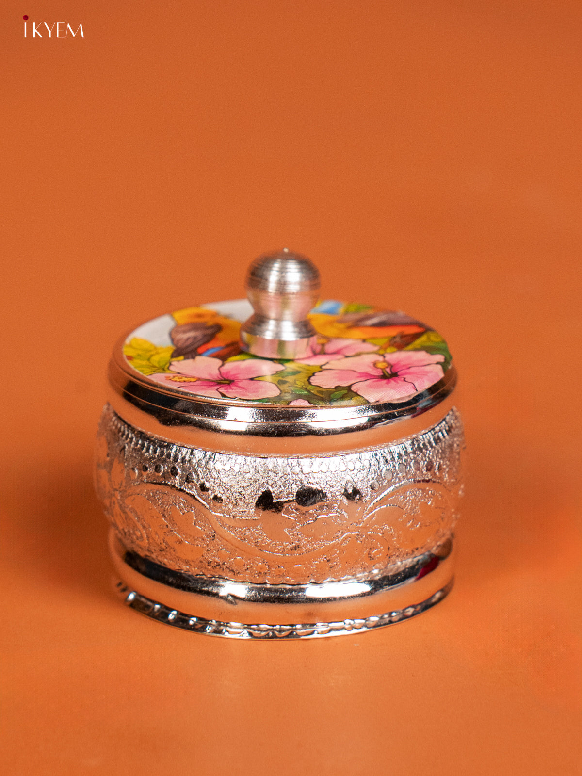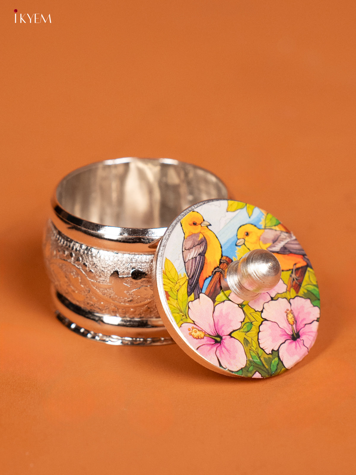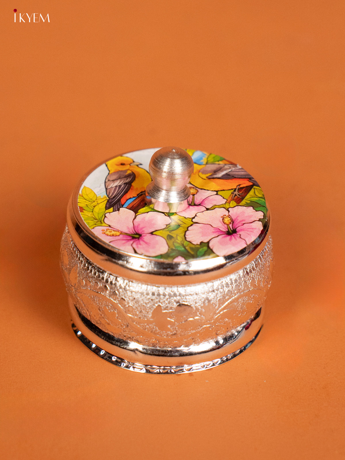Beautiful Bird Motif Printed German Silver Kumkum Holder - KF10236