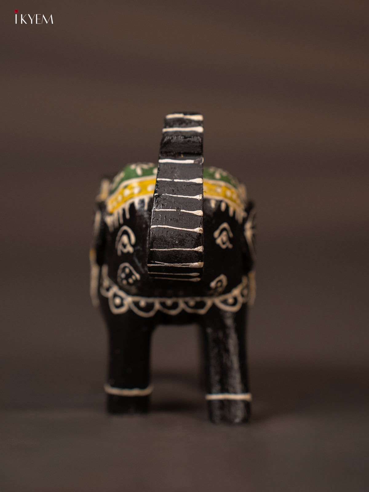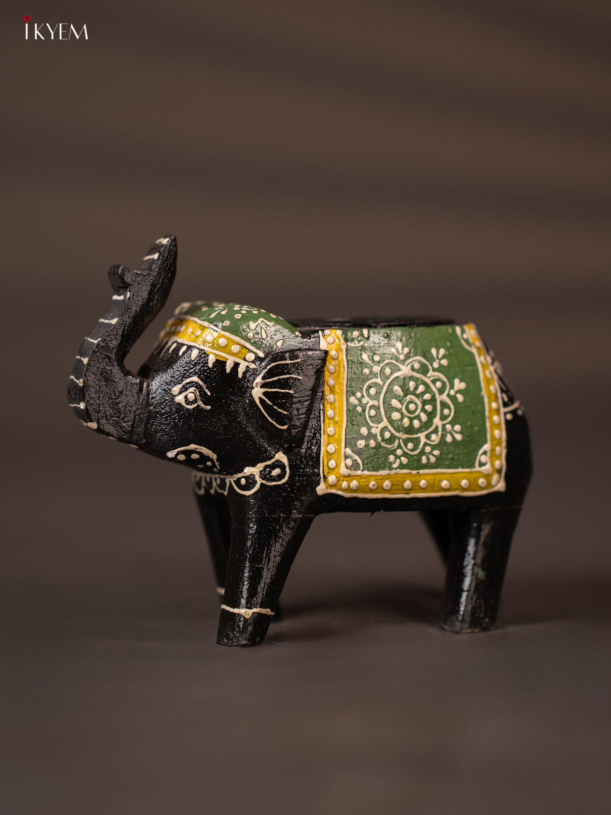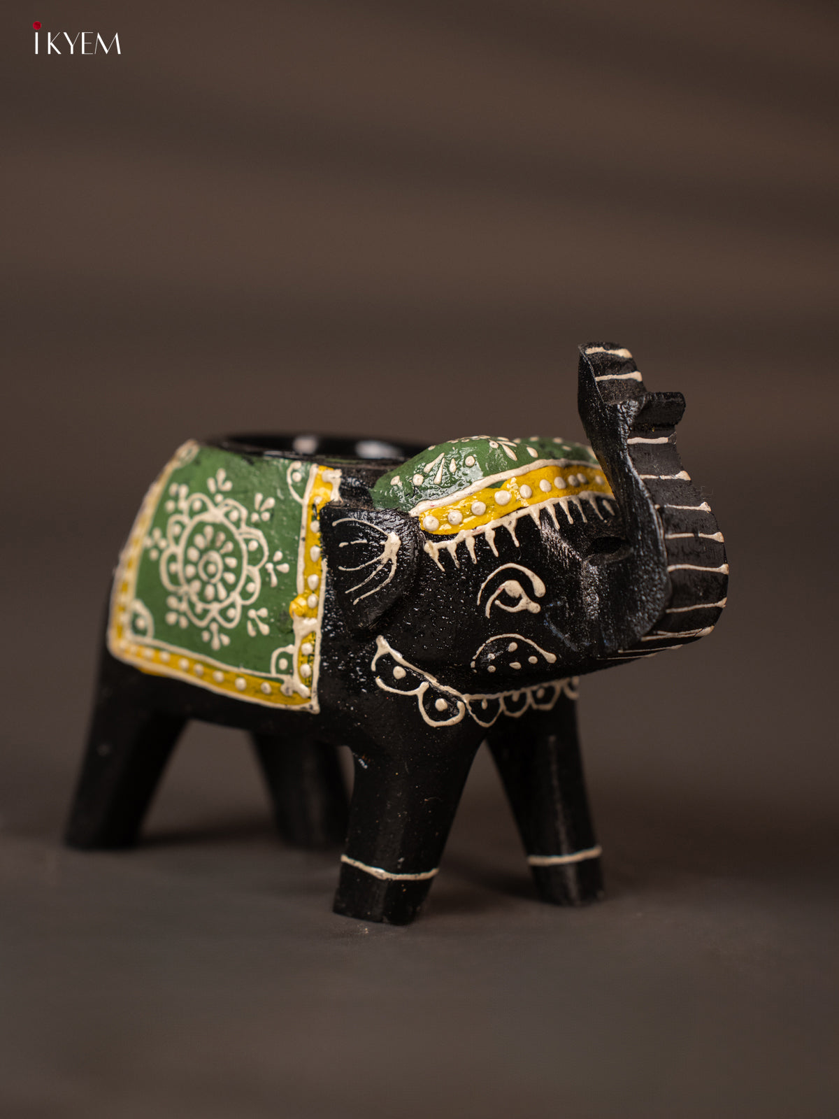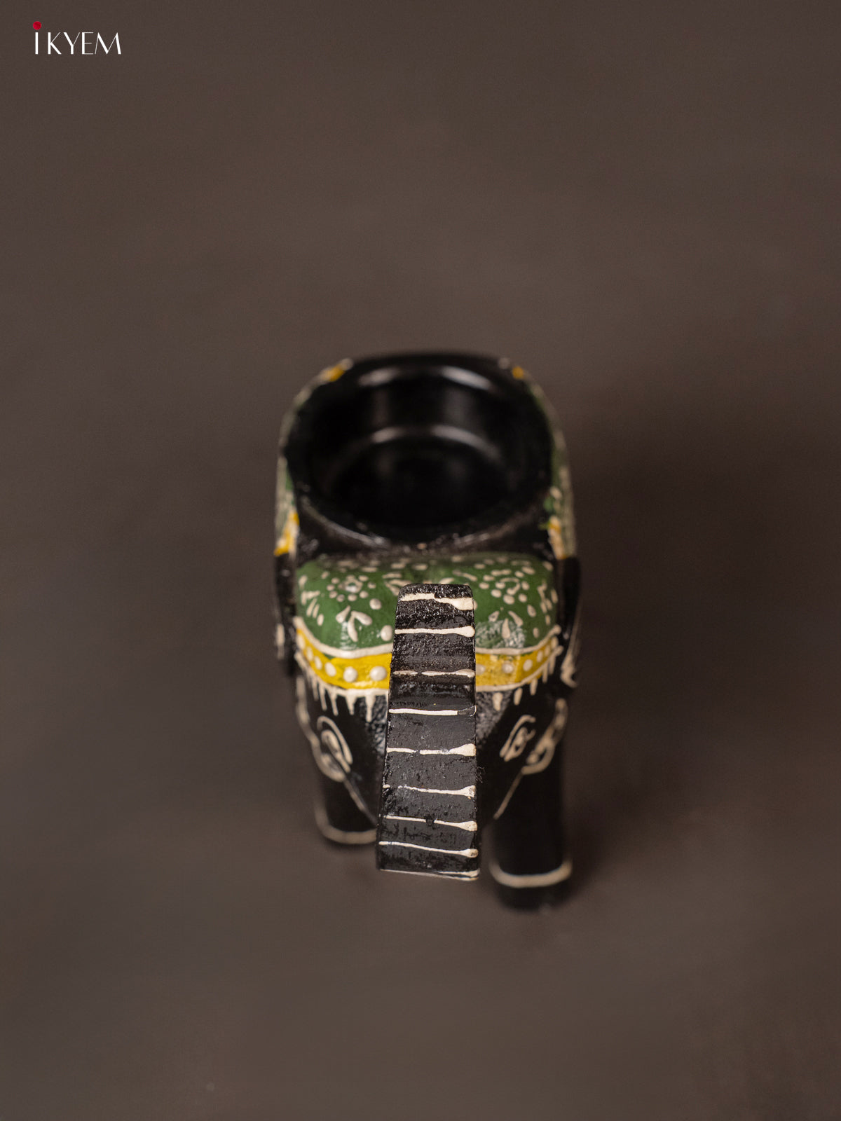 Black & Green Hand Painted Wooden Elephant Shaped Candle Holder - KH02121