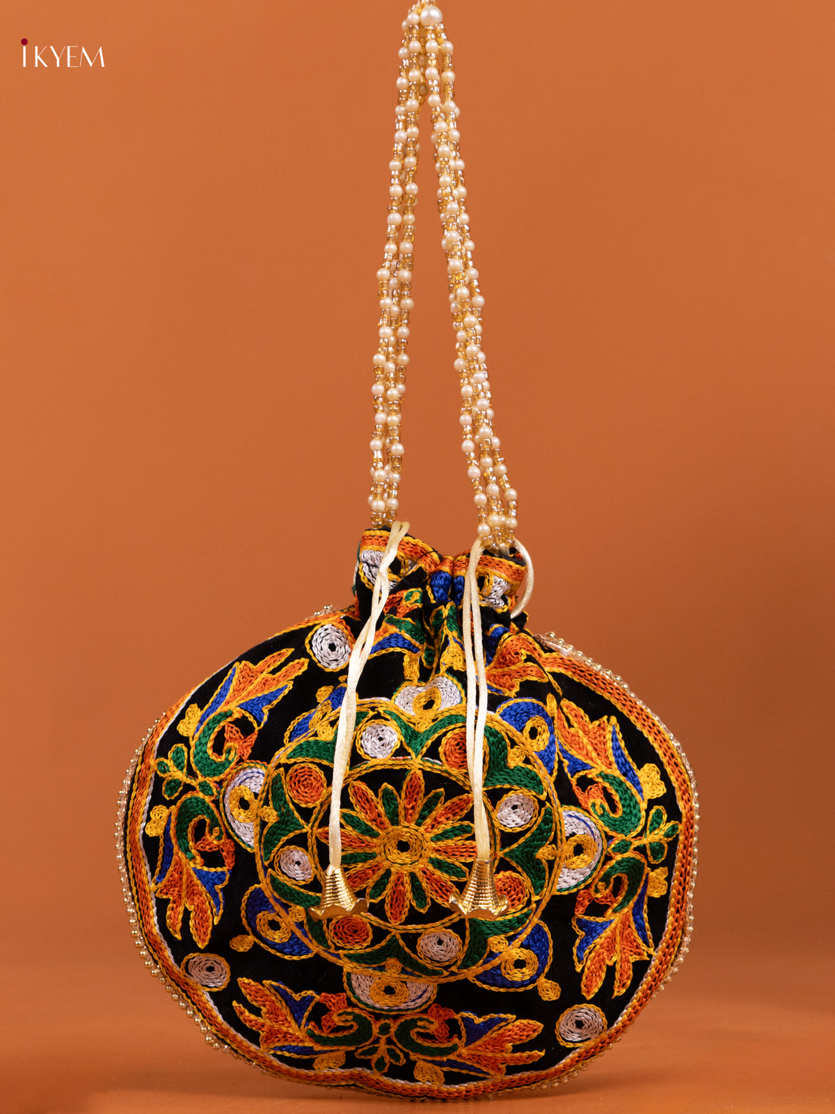 Black Embroidered rangoli Design Potli Gift Bag - KD26502