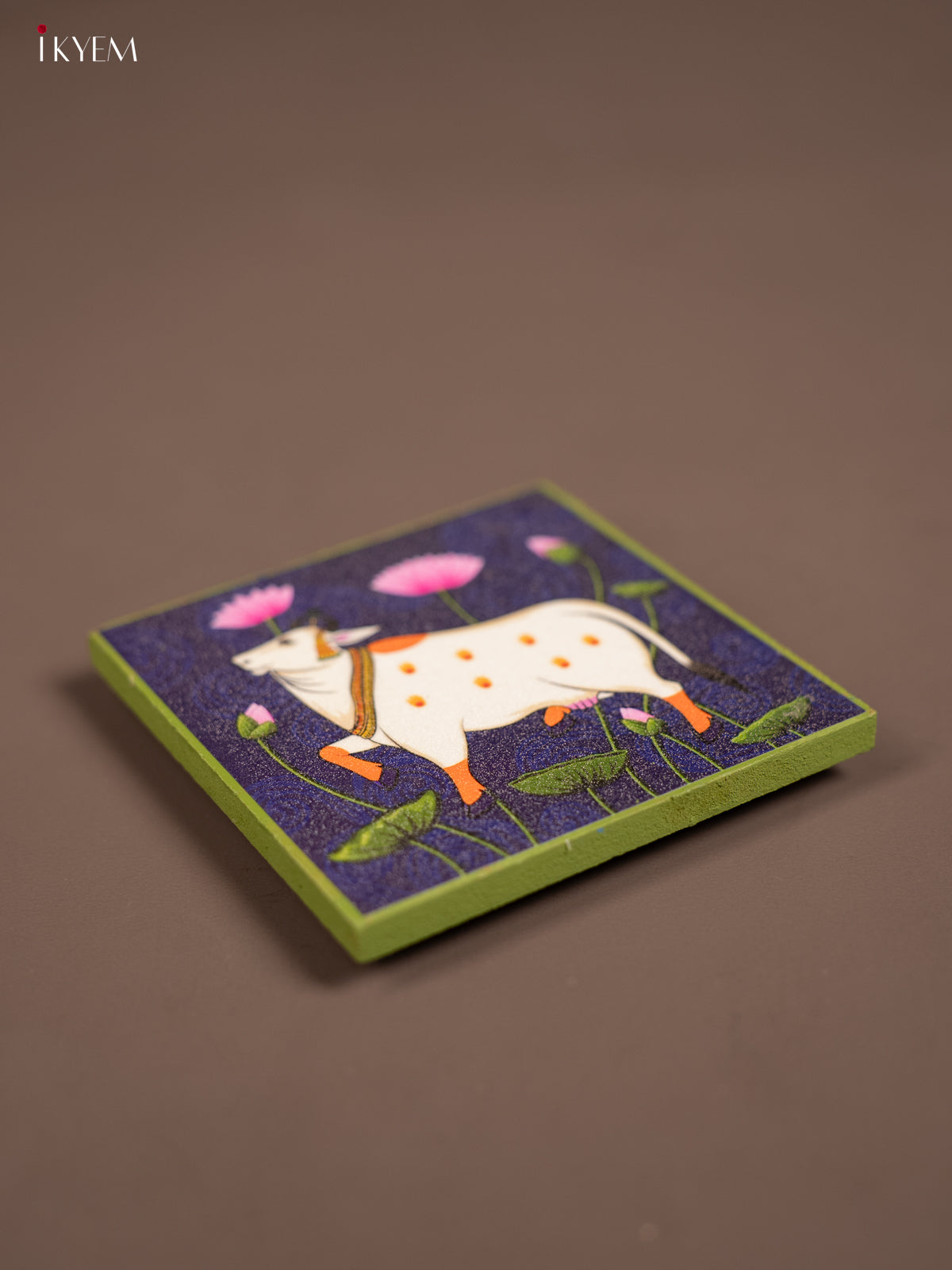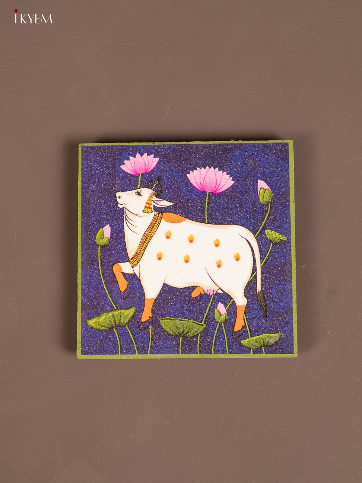 Blue & Green Pichwai Cow Printed Wooden Manai - KE29154