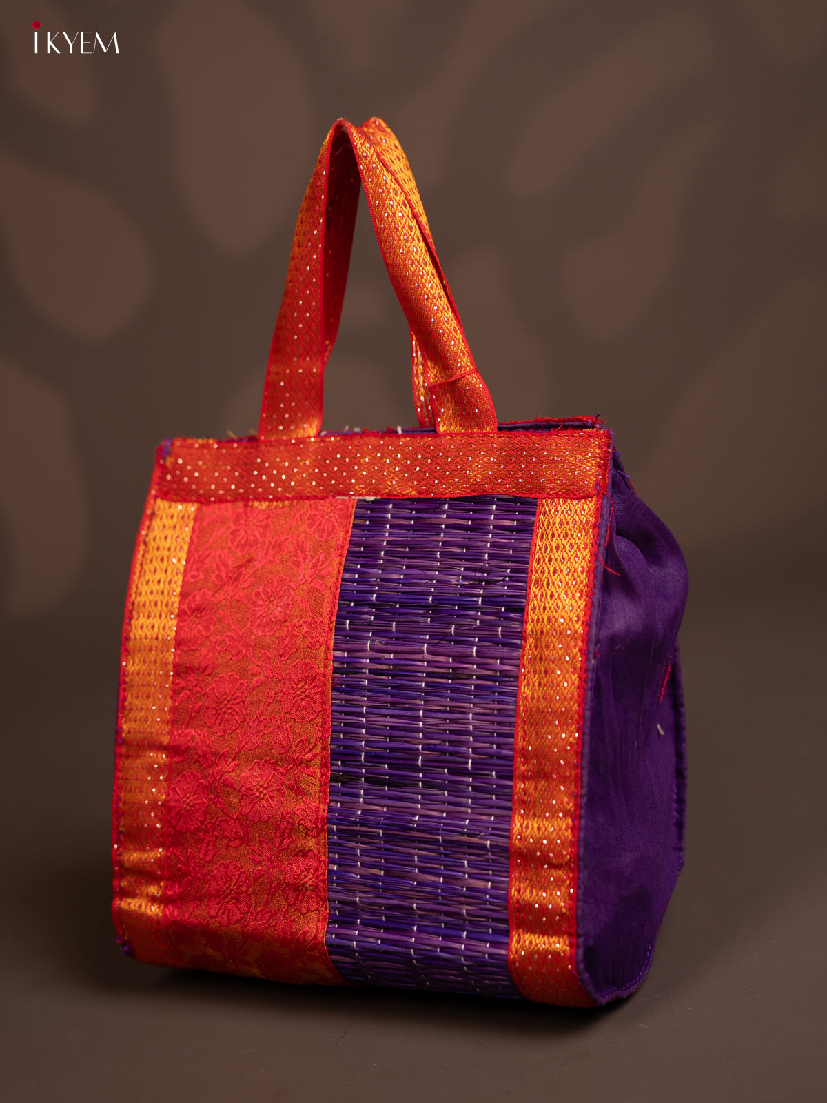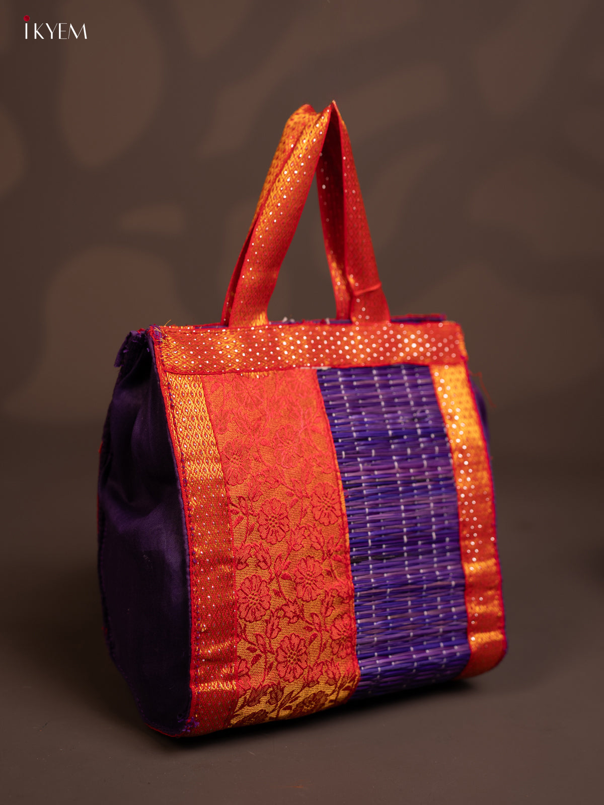 BLUE & RED Raw Silk with Korai Handbag - KE10152