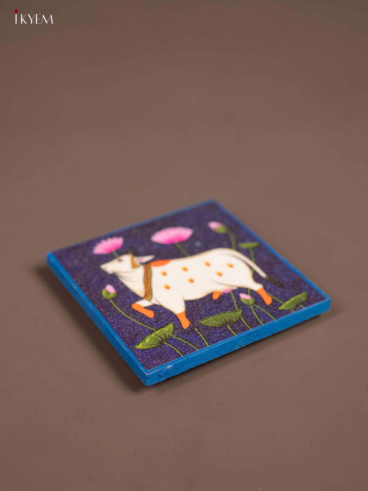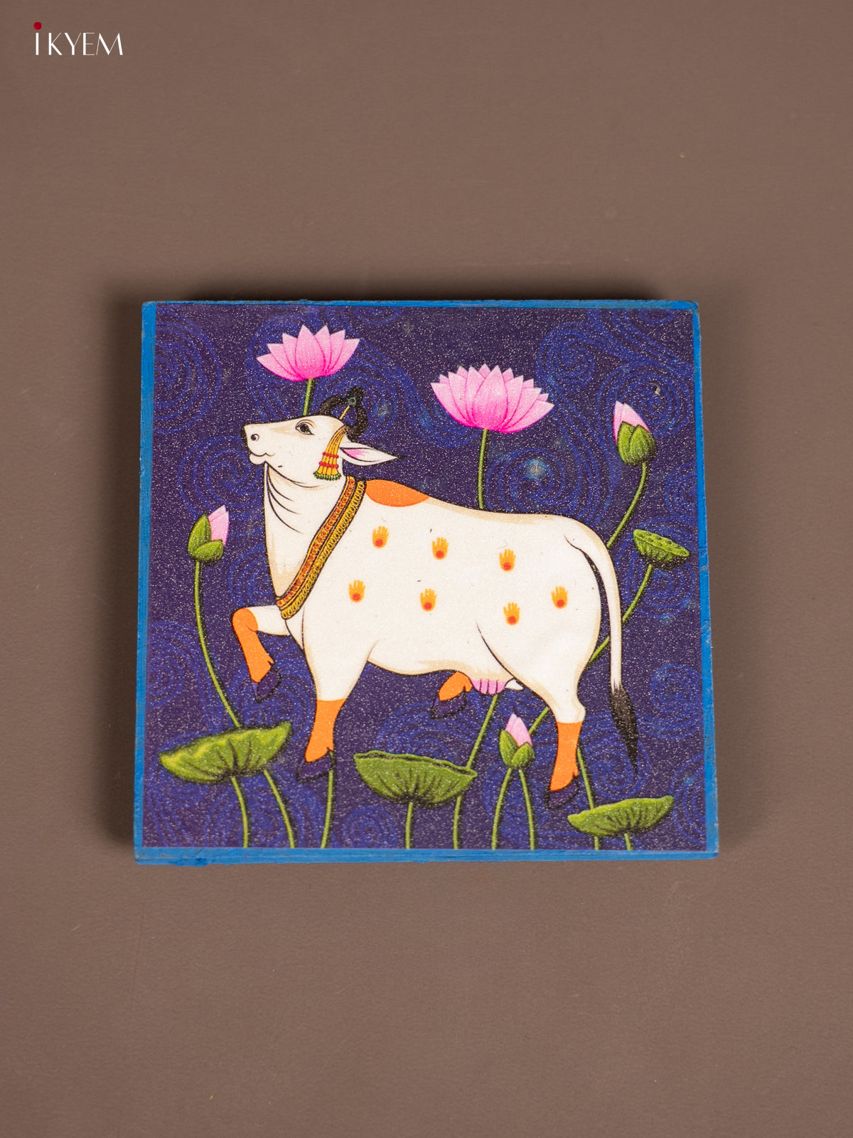 Blue Pichwai Cow Printed Wooden Manai - KE29153