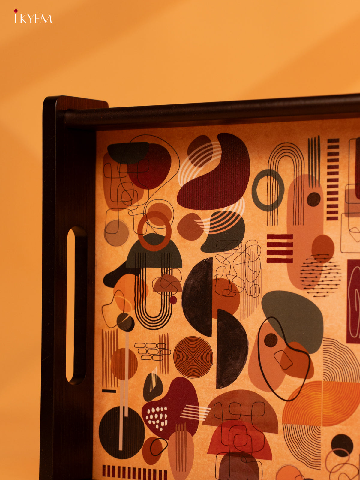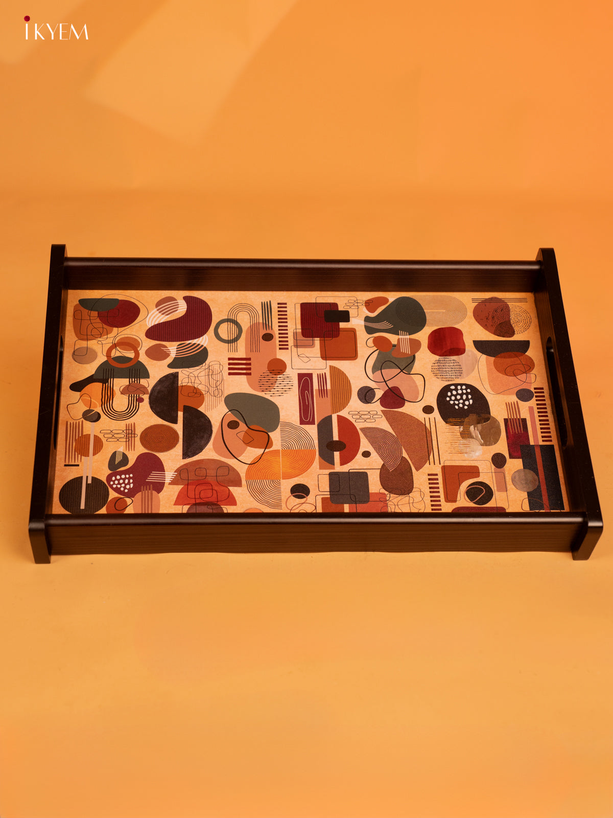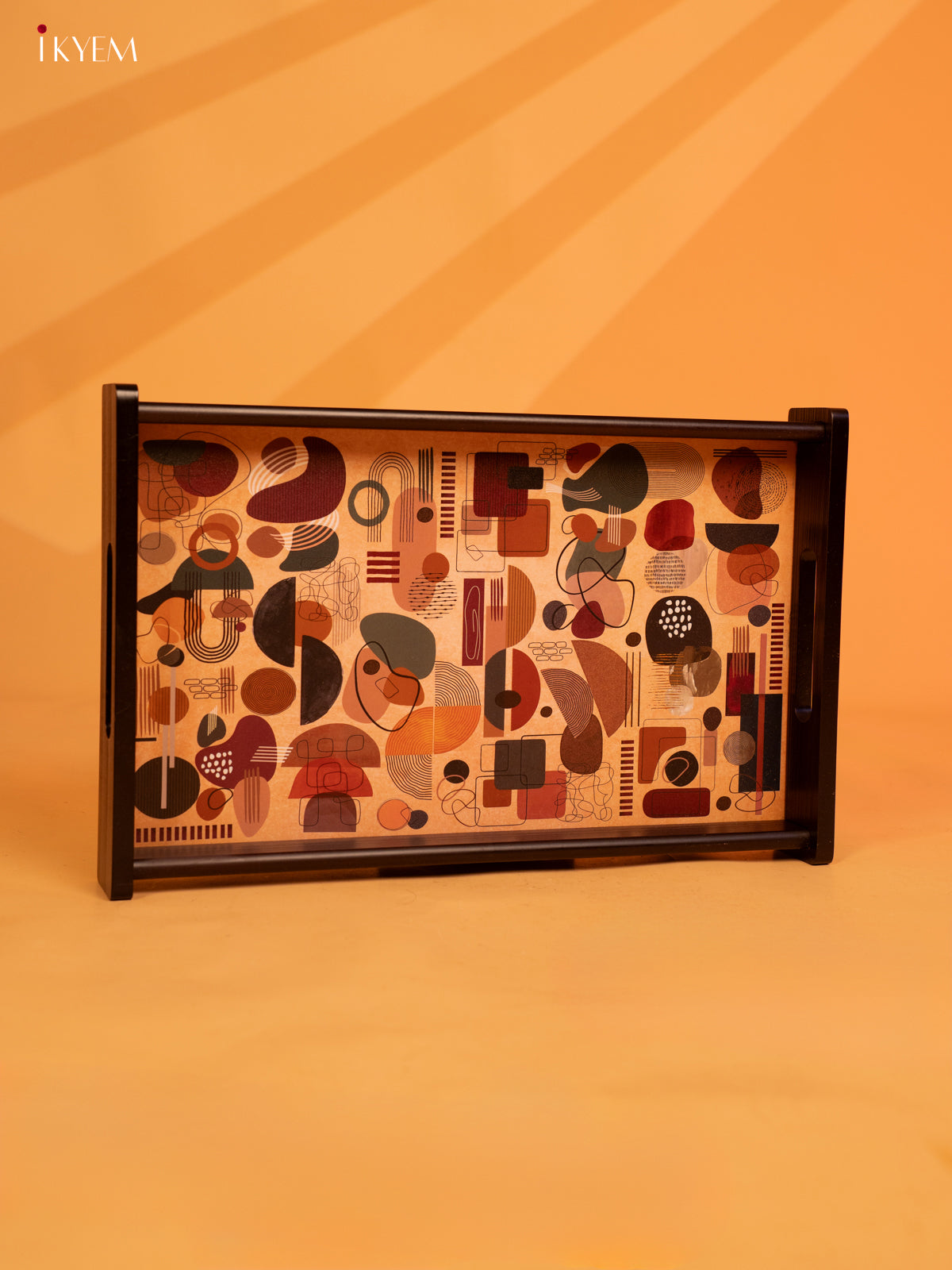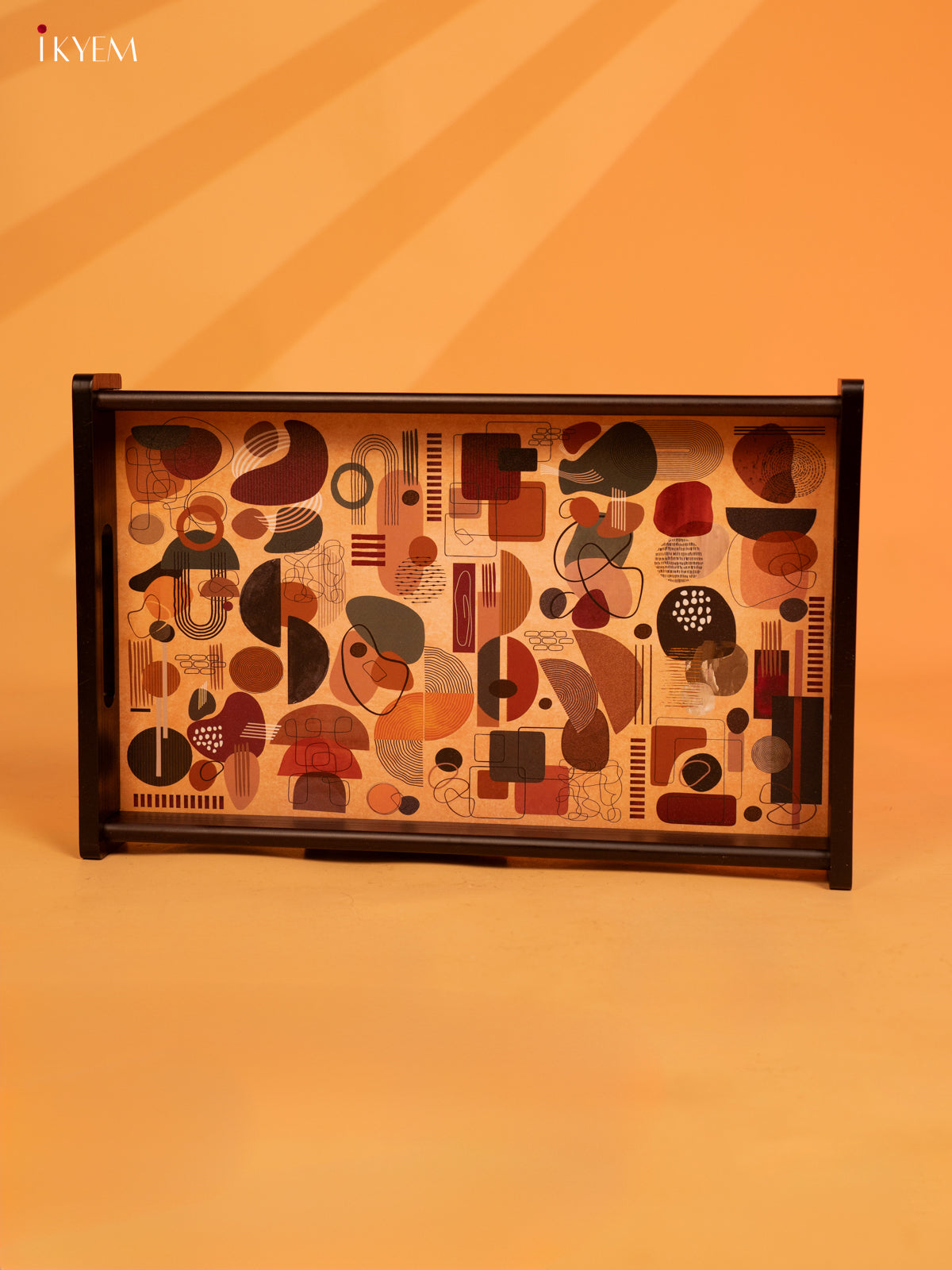 Brown Abstract Art Printed Resctangular Wooden Tray (16×10) -KL18120