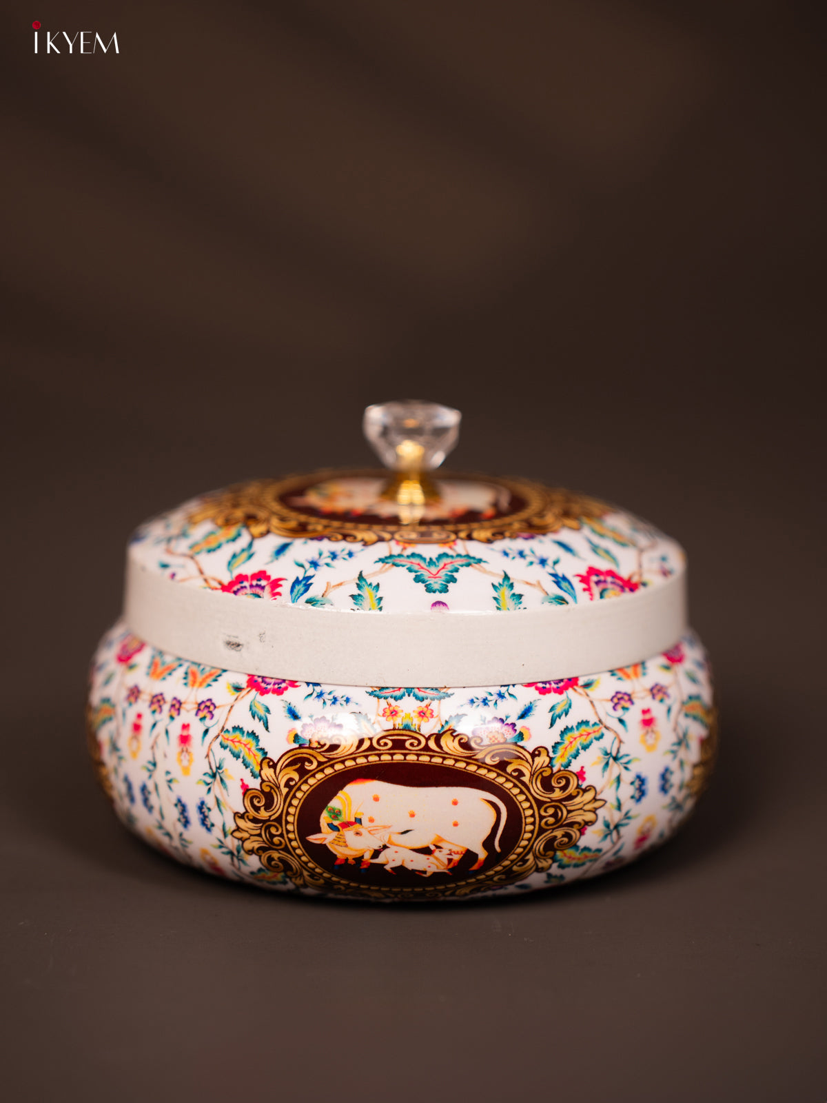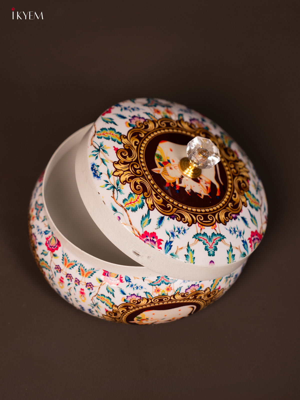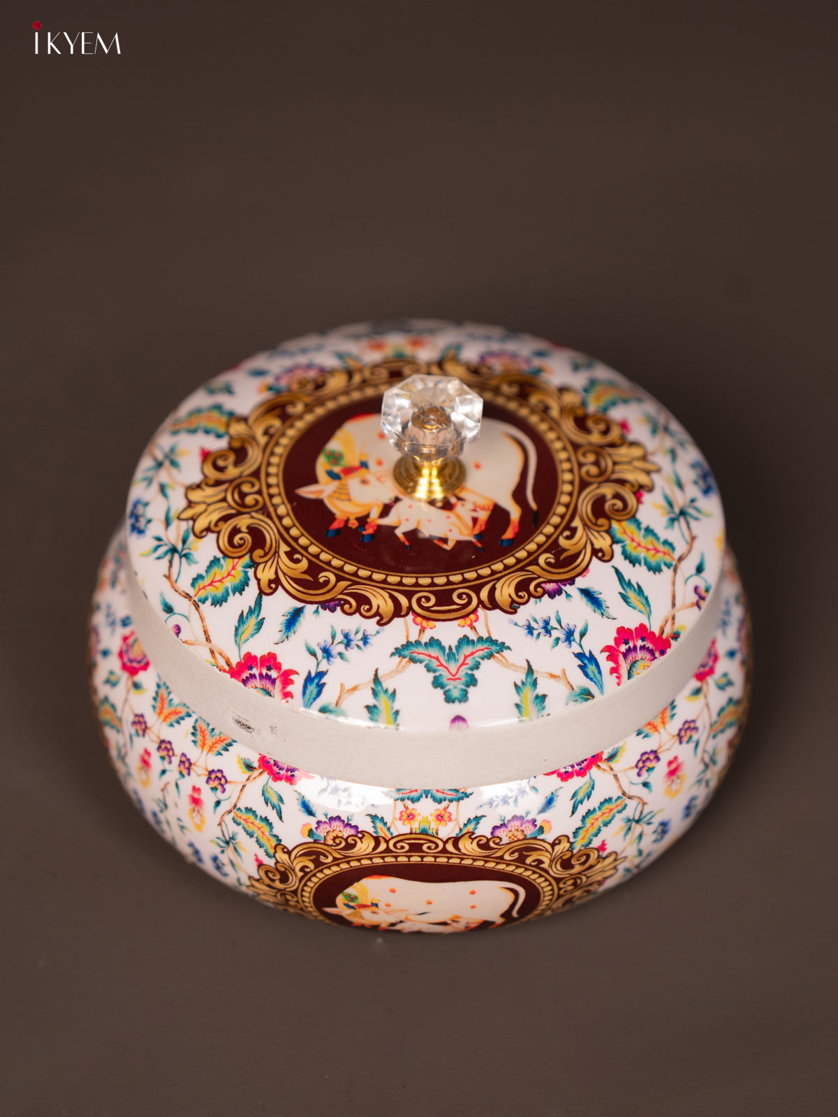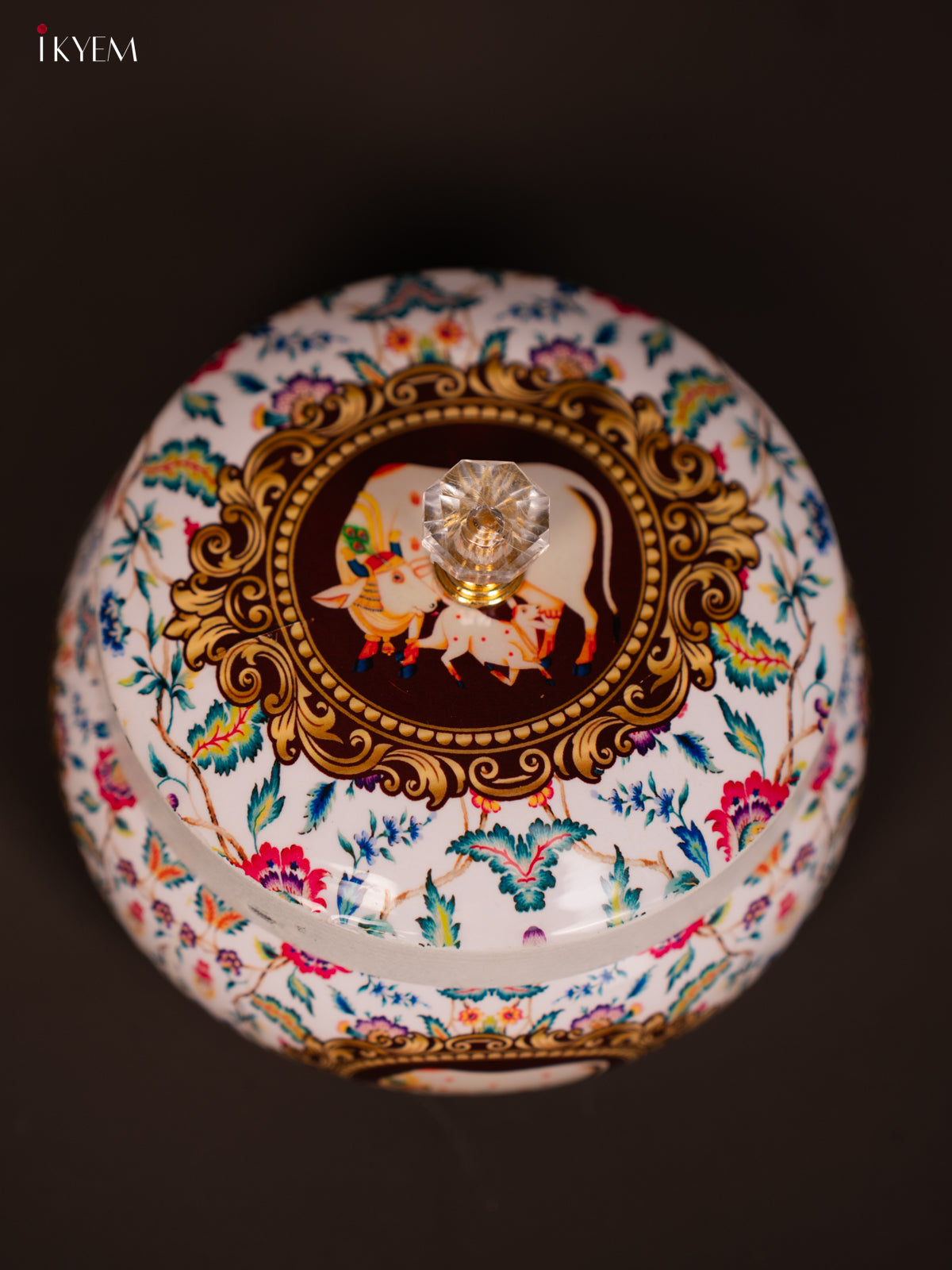 - Celebrate tradition and elegance with the Cow & Calf Printed White Round Dry Fruits Jar, a meaningful gift choice for festive occasions. Thoughtfully designed, it balances cultural heritage with everyday utility.