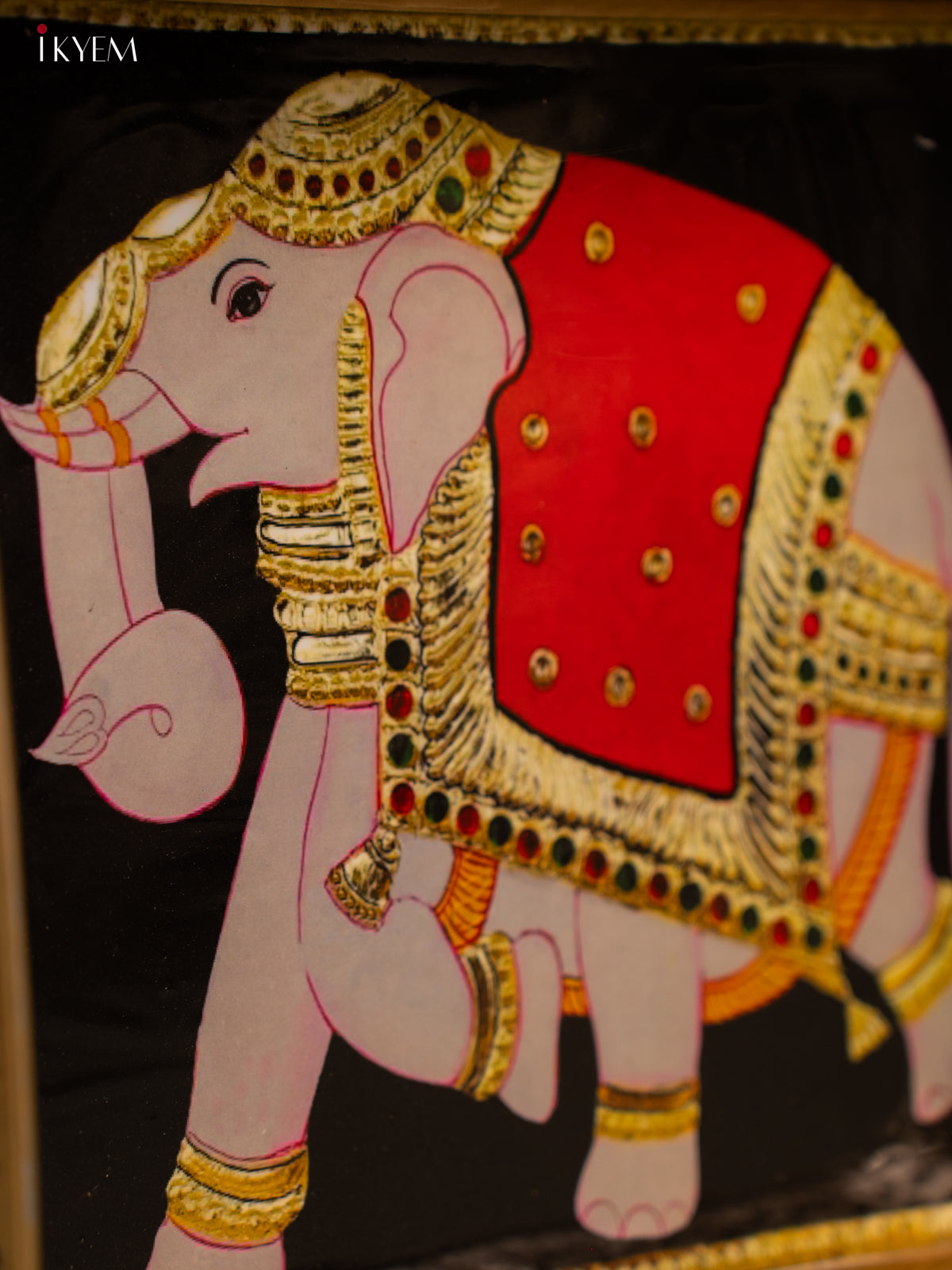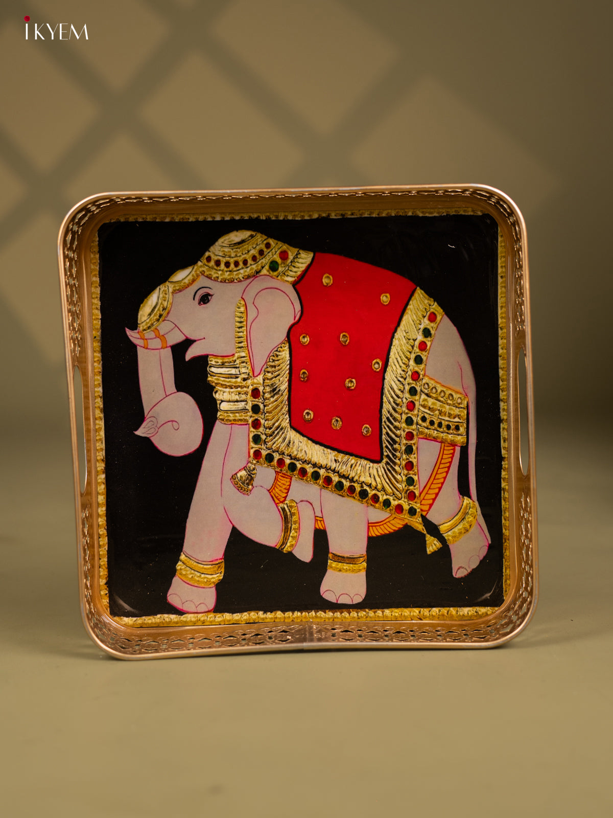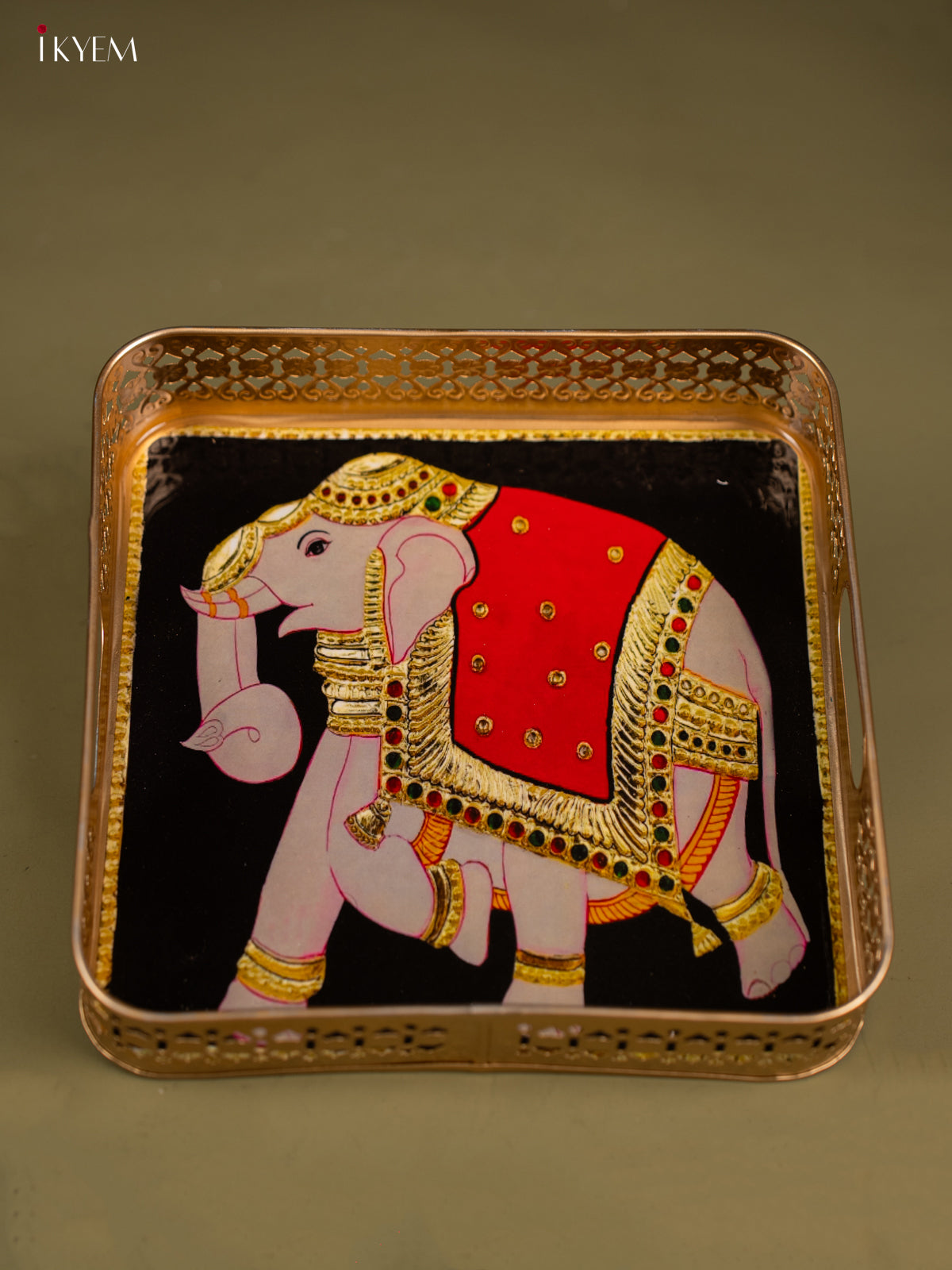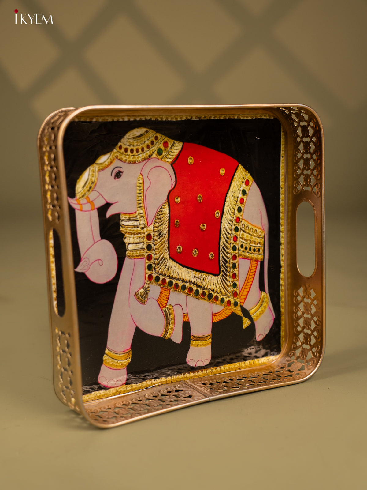 Elephant Printed Black colour Square Metal Tray - KF25125