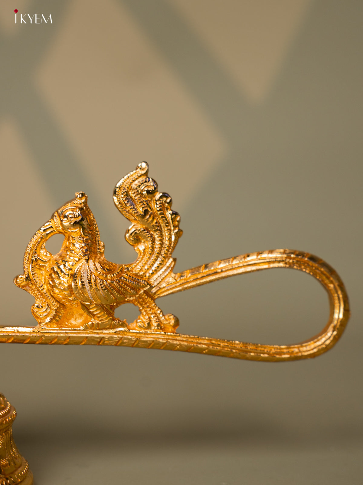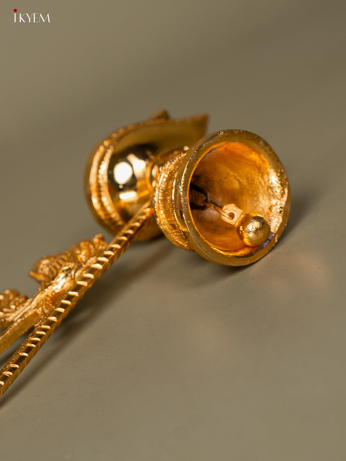 - This intricately designed pooja accessory includes a bell for auspicious blessings.